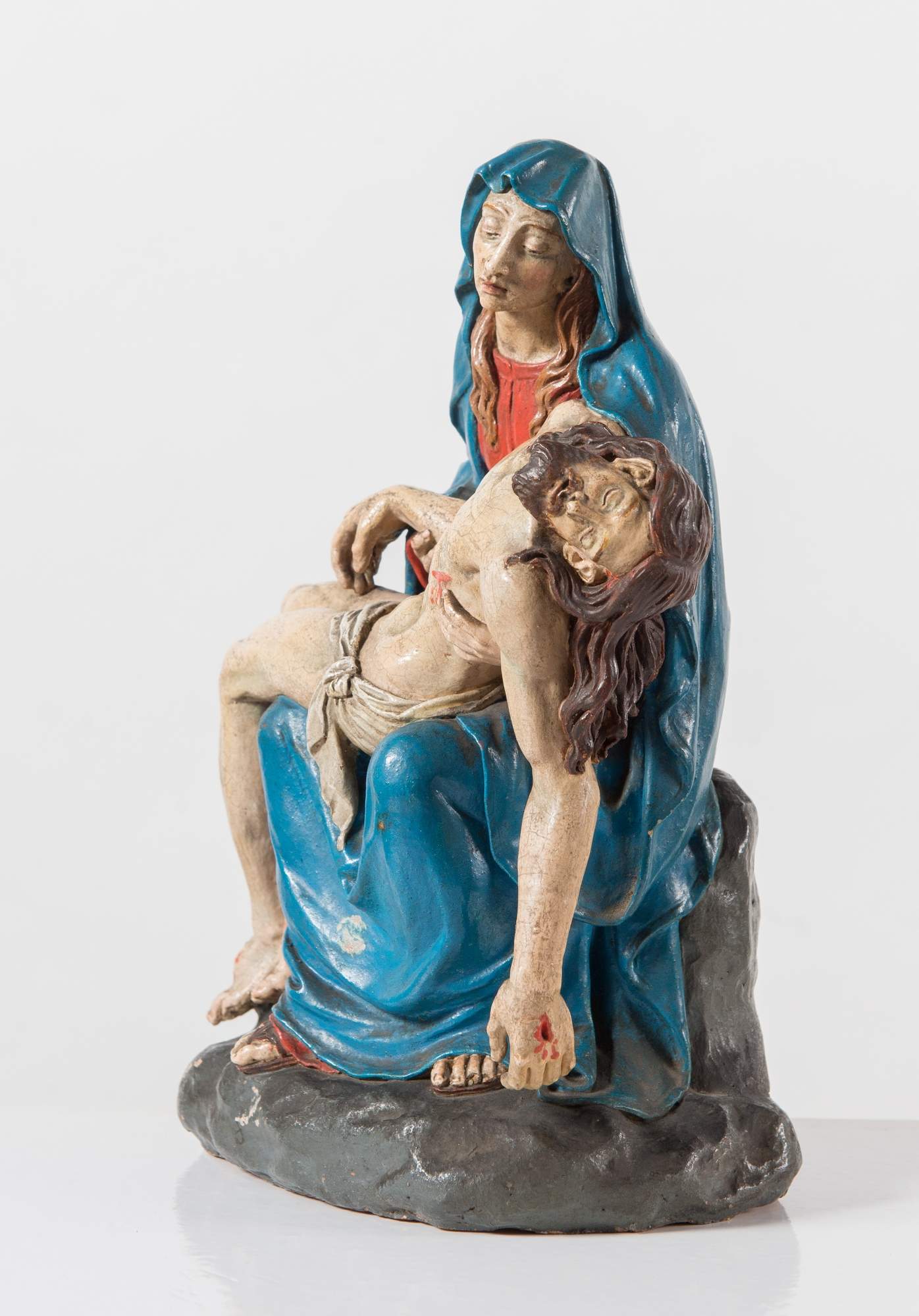 Pietà, scultura in terracotta policroma. Italia meridionale?, metà del XVIII secolo. Cm 28x18,7x14,5. (difetti)