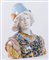 ANGELO MINGHETTI, Bologna, XX secolo. Busto di nobiluomo, realizzato in ceramica policroma. Cm 41x37x20. Opera siglata sul retro AM. (lievi difetti)