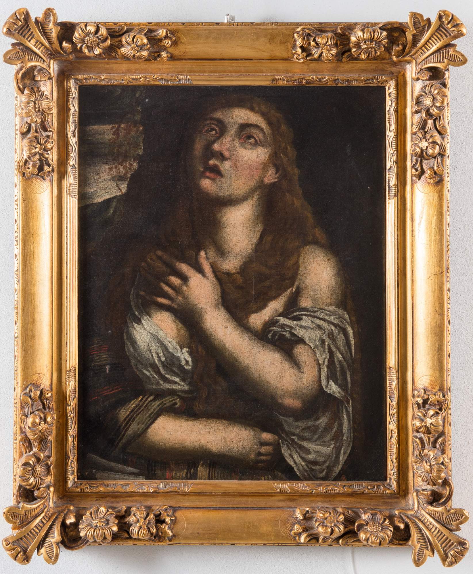 Maestro del XVII secolo. "Maddalena". Olio su tela reintelata. Cm 61,5x47,5.