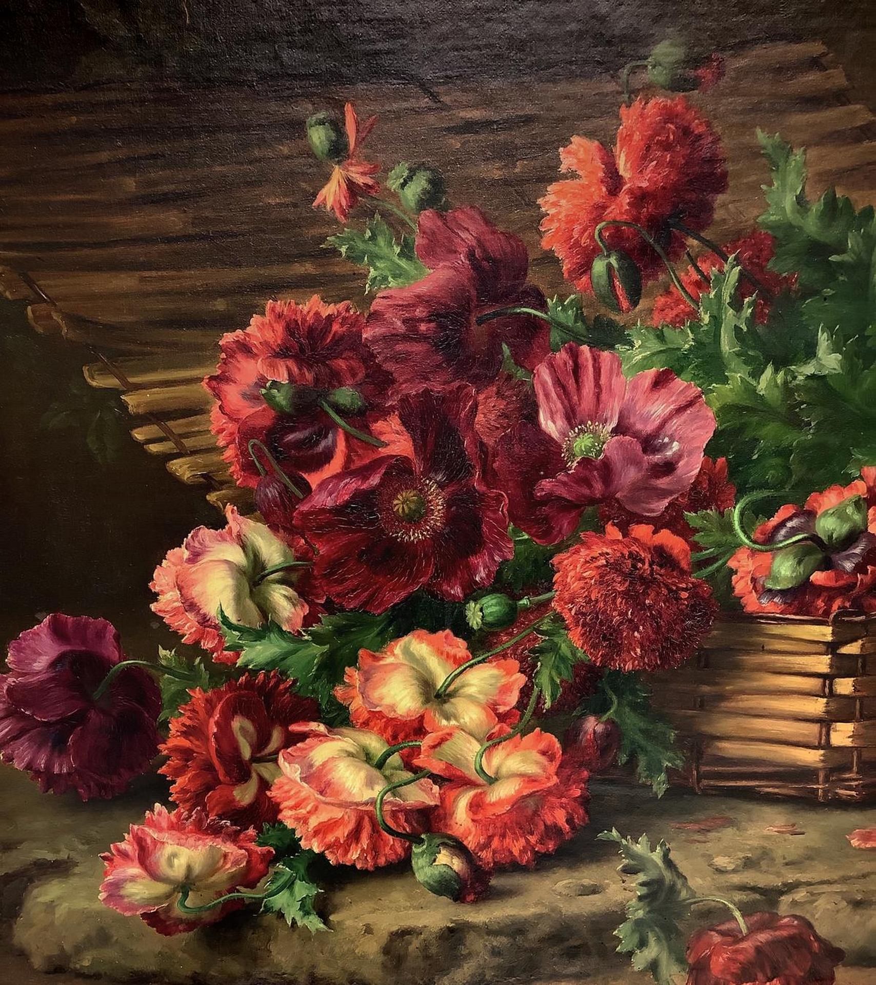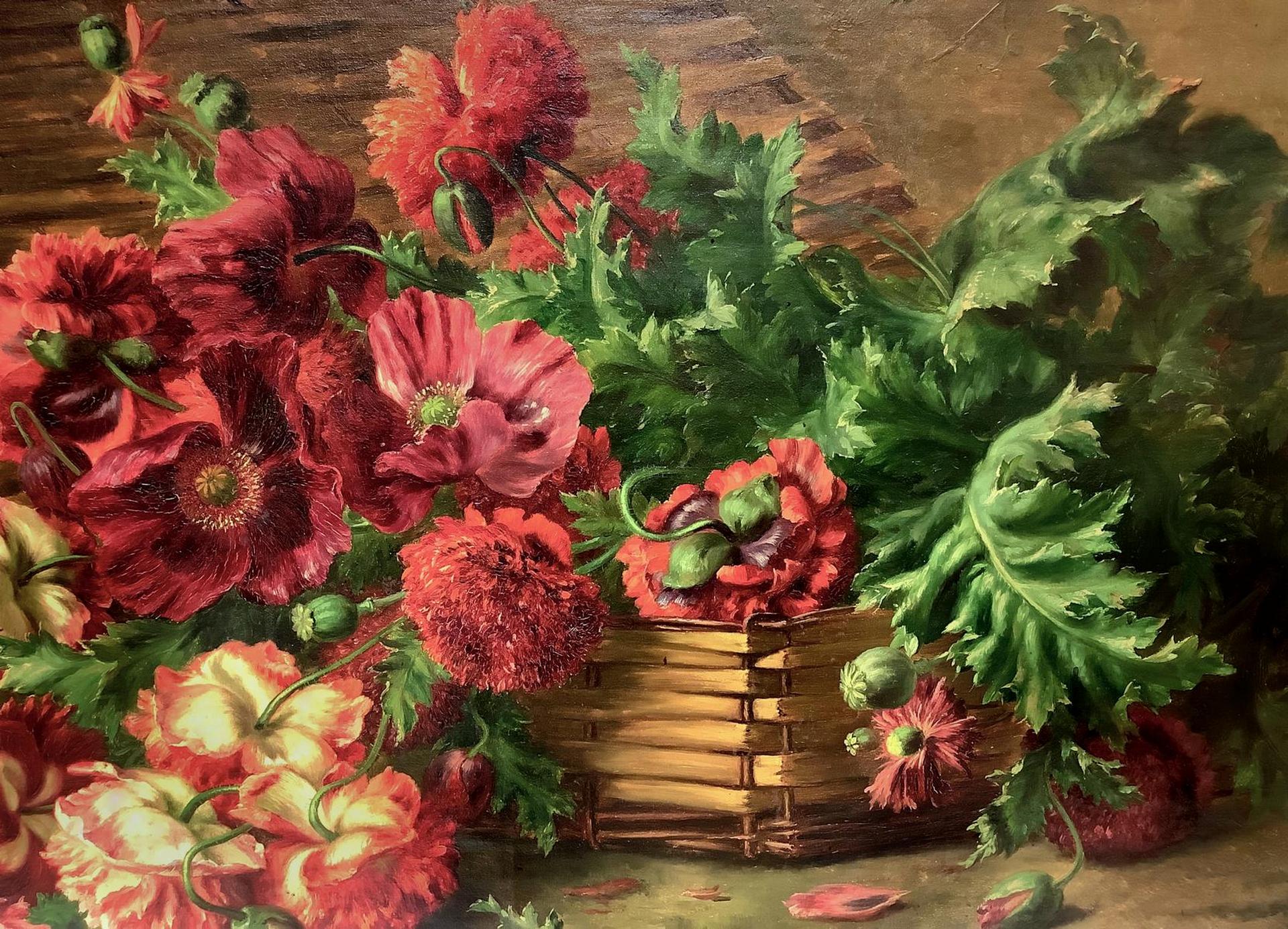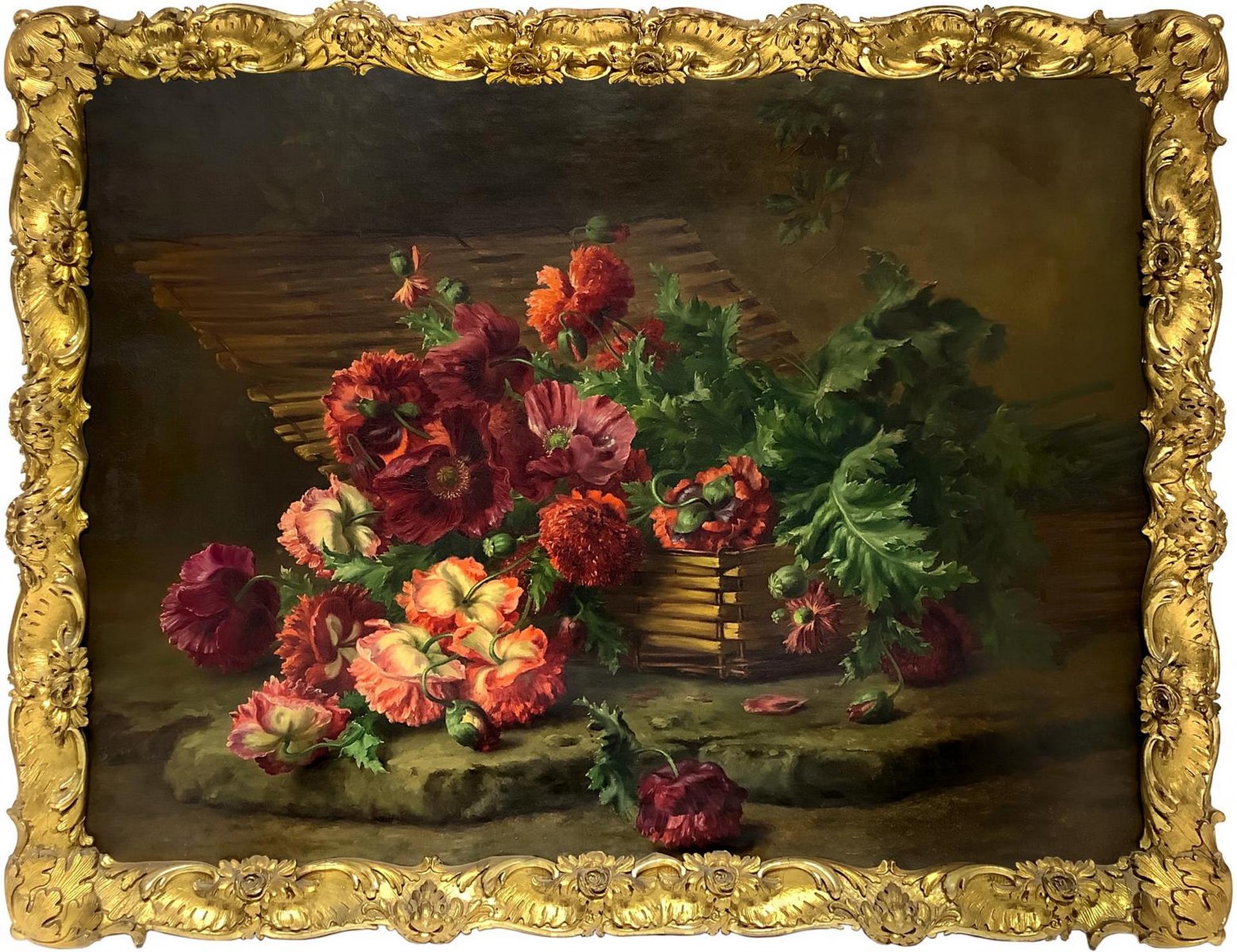 Dipinto ad olio su tela raffigurante natura morta di fiori. Cm 85x119. Edward Van Ryswyck (Antwerp, 1871-1936, Antwerp). Firmato in basso a destra Ed. van Ryswyck.