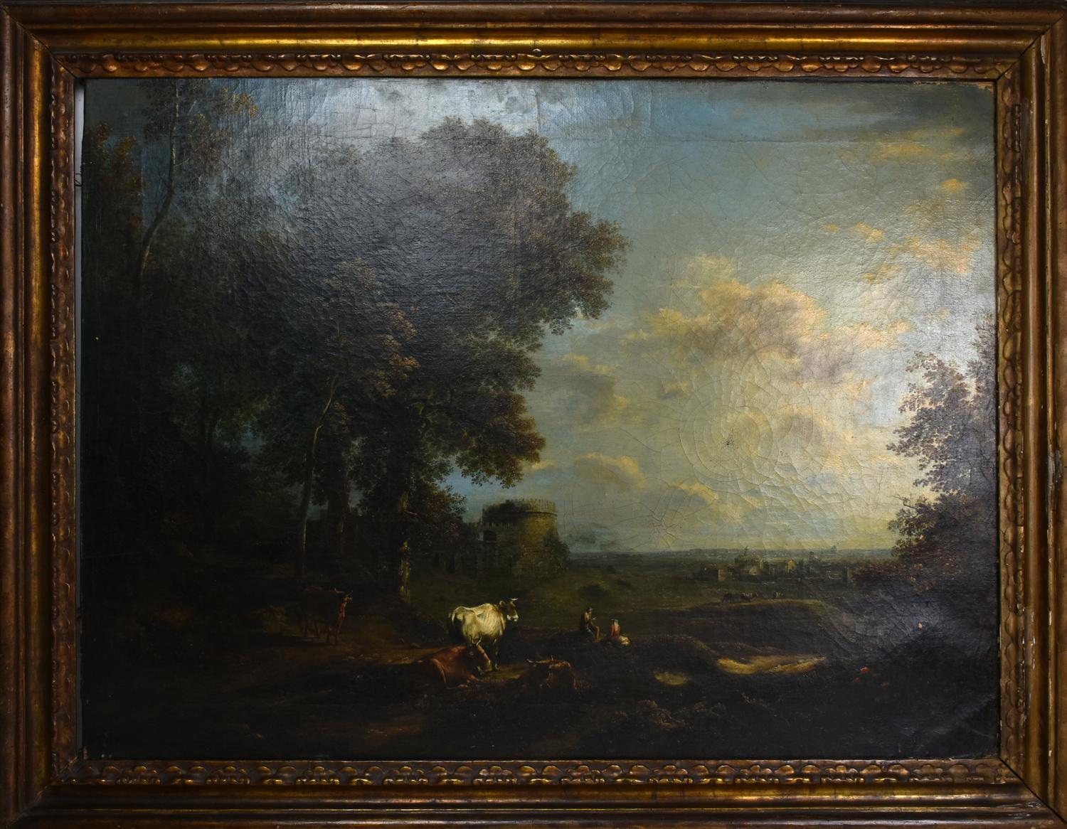 Scuola del XIX secolo VEDUTA CAMPESTRE olio su tela, cm 83x110 entro cornice...