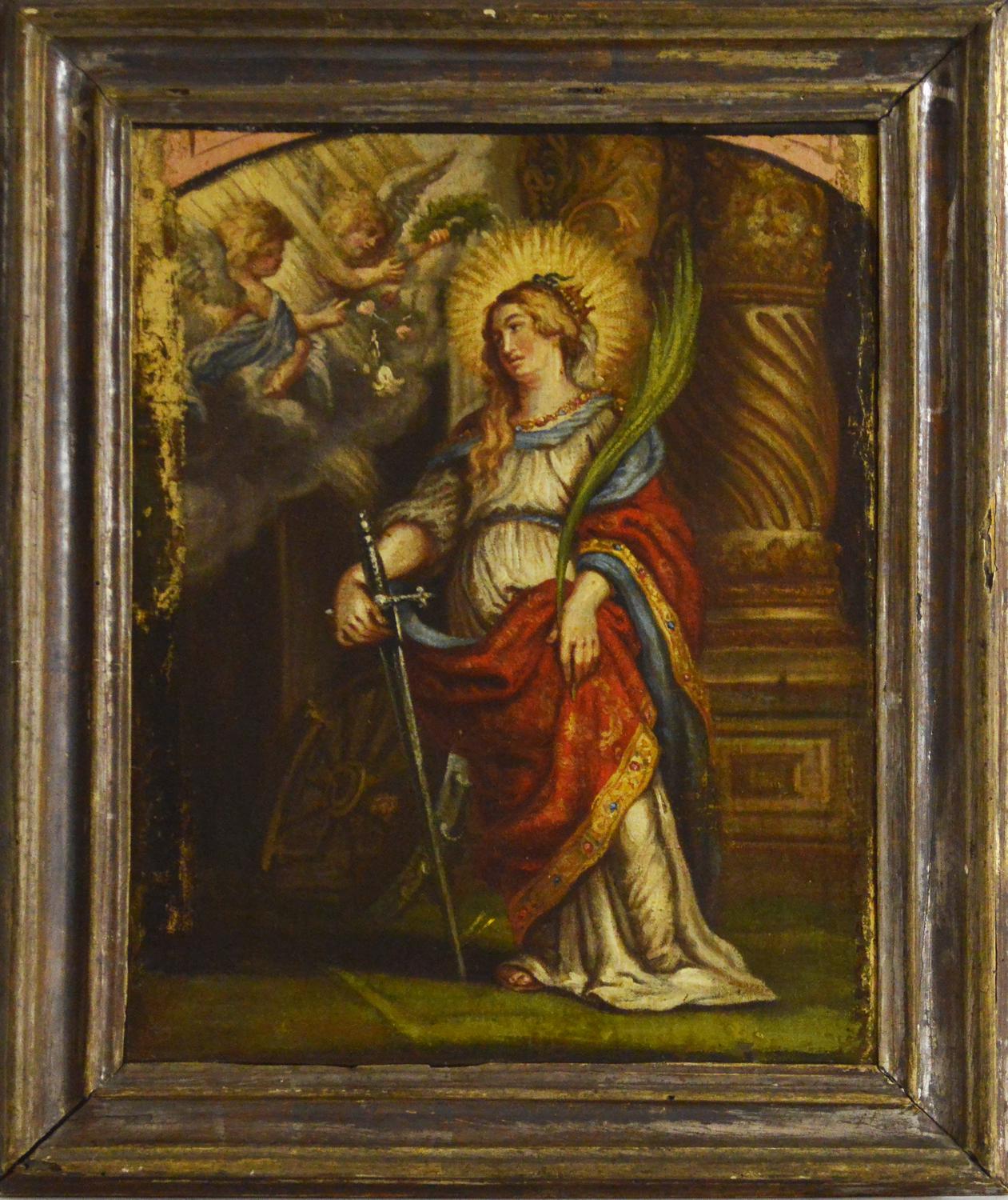 Scuola fiamminga del XVII secolo SANTA CATERINA D'ALESSANDRIA olio su tela,...
