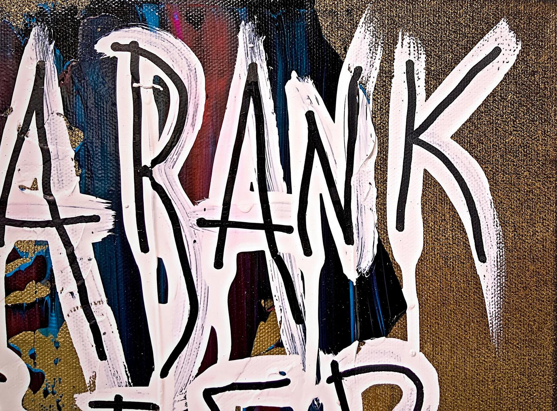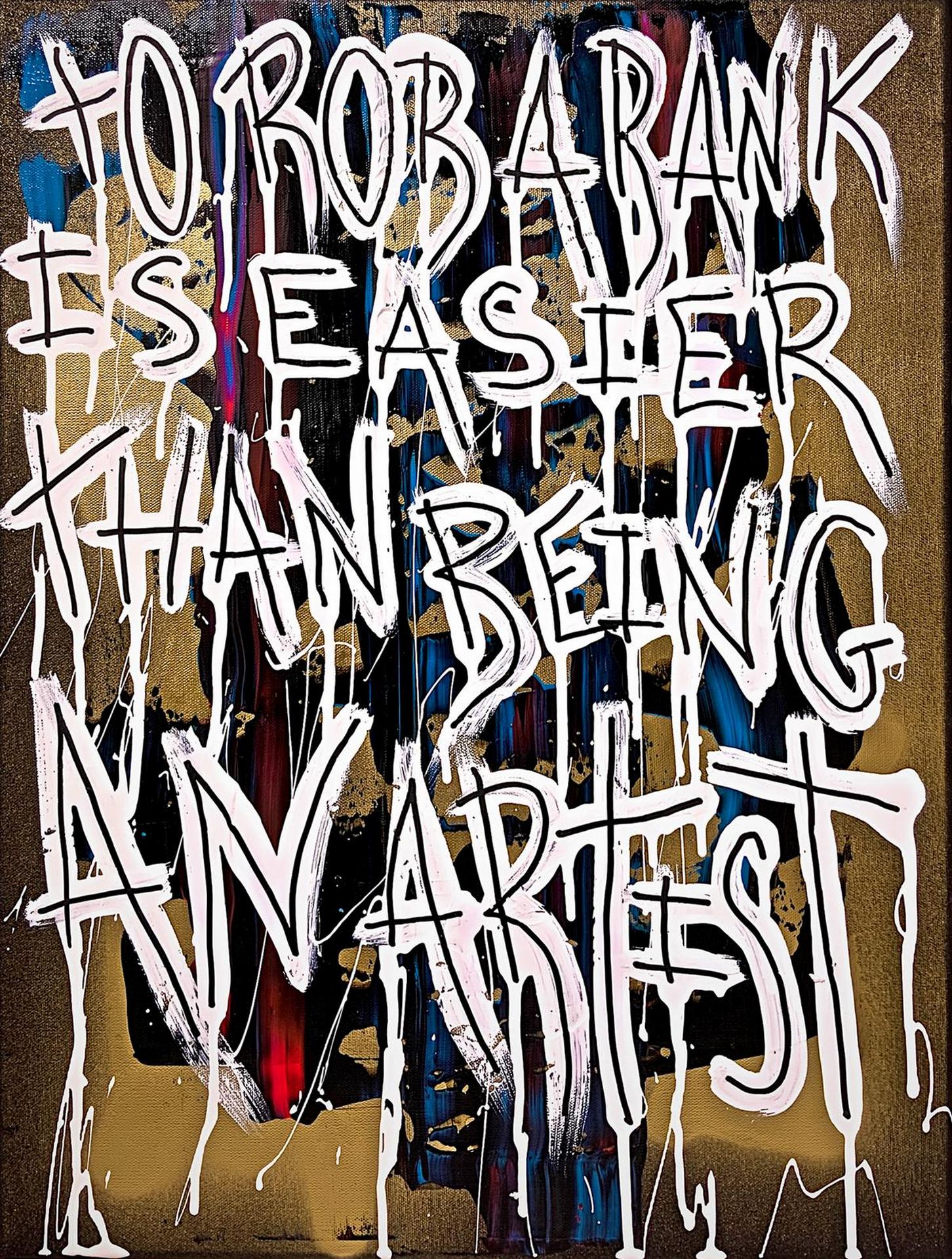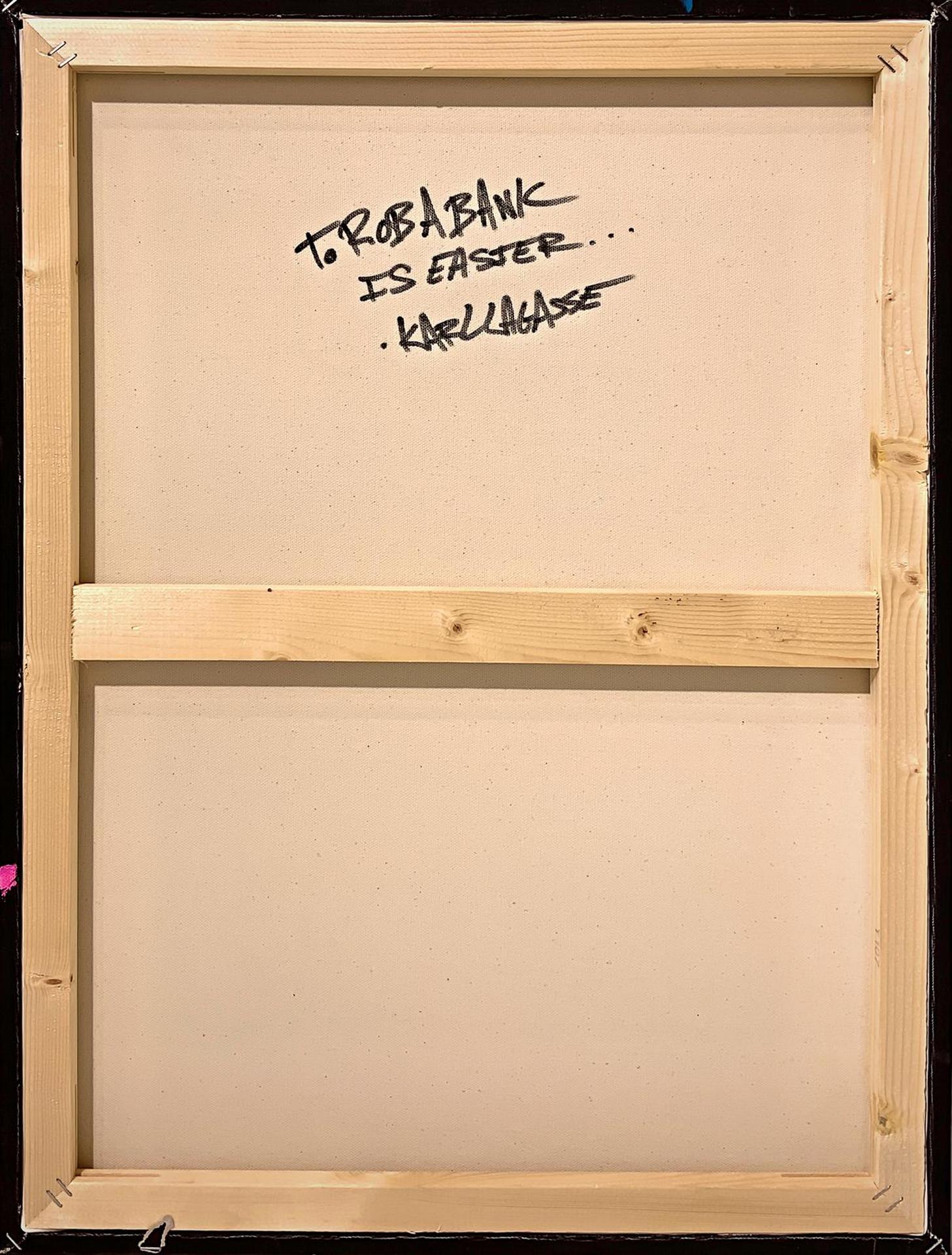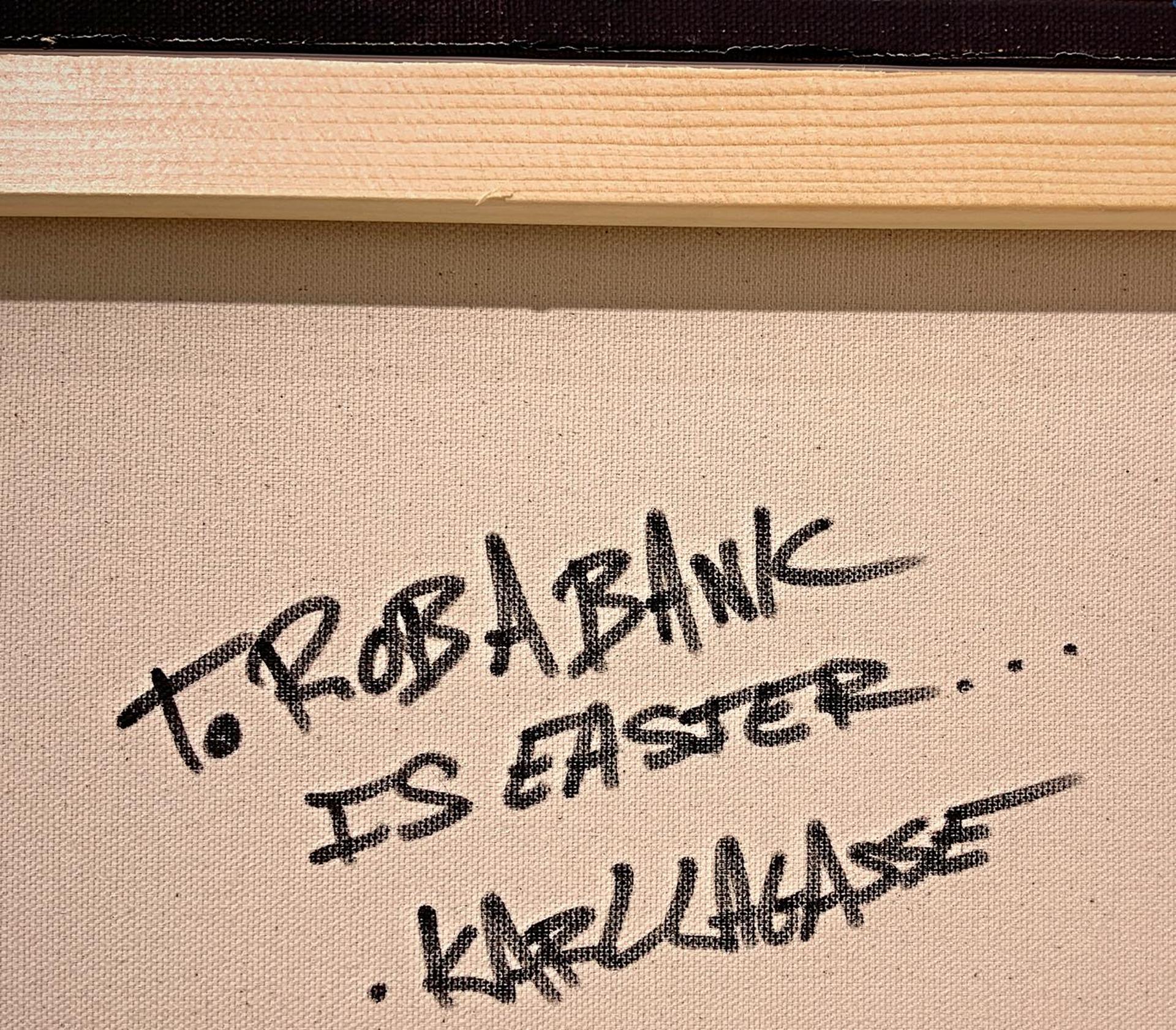 Karl Lagasse, Pezzo unico a tecnica mista “Rob a bankâ€_x009d_, Usa n°25, firmato Karl Lagasse. Cm 61x46. Certificazione d'eutenticità .