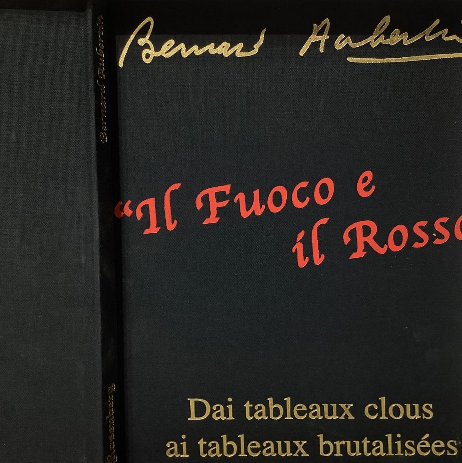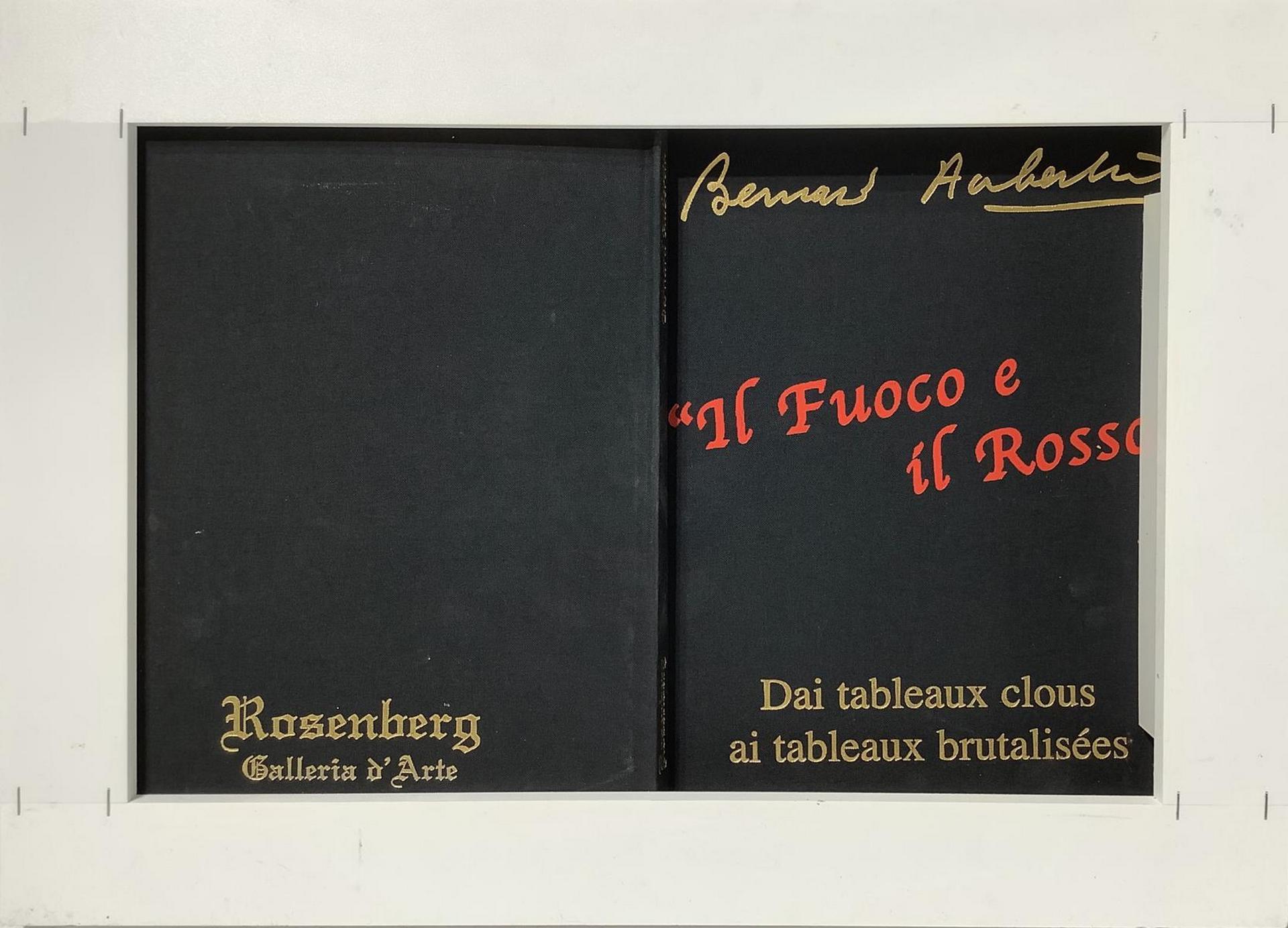 Bernard Aubertin, Applicazioni di fiammiferi e combustioni su libro “Bernard Aubertin, il fuoco e il rossoâ€_x009d_, edizioni Galleria Rosenberg. Cm 31x45. Firmato in basso a destra. Certificato di Garanzia e Autenticità da Meeting Art. Fotografia allegata ritraente L’artista mentre firma l’opera, entro teca in plexiglass.