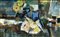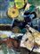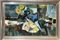 Dipinto ad olio su masonite raffigurante natura morta astratta. Firmato in...