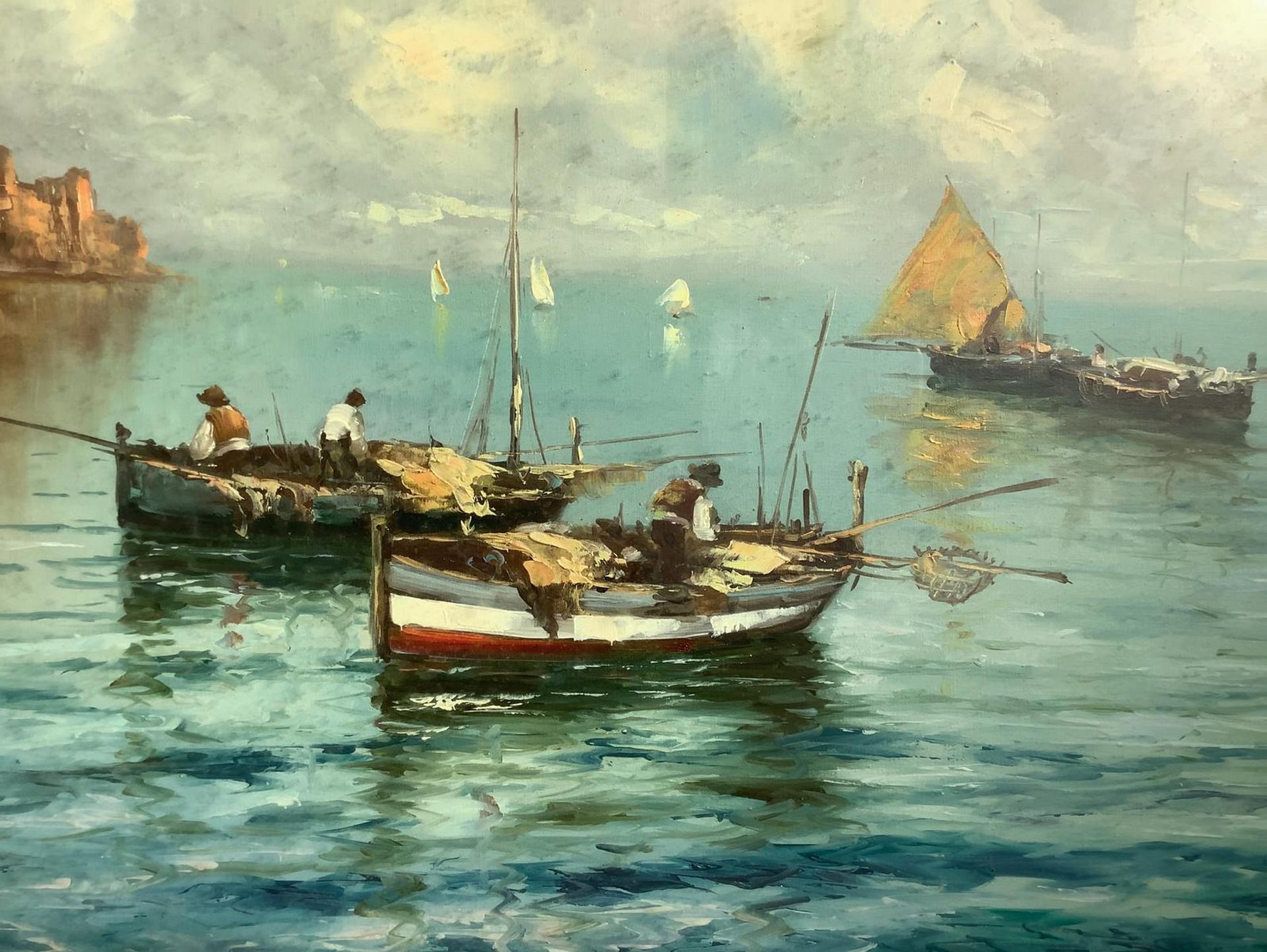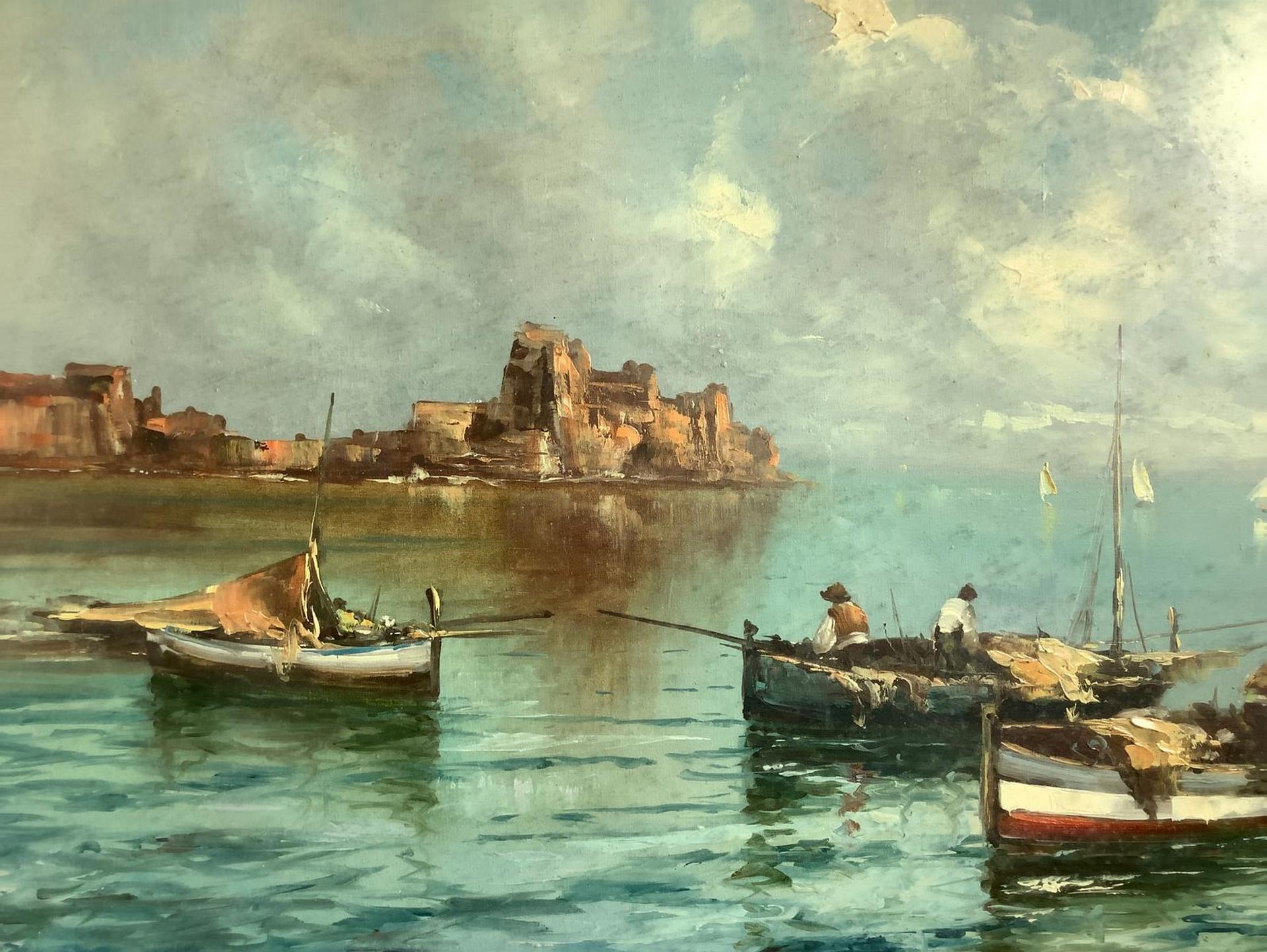 Dipinto ad olio su tela raffigurante Castel Dell’Ovo. Firmato in basso a...