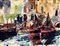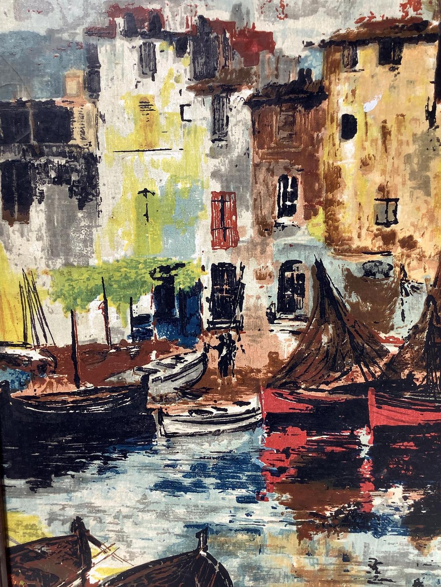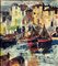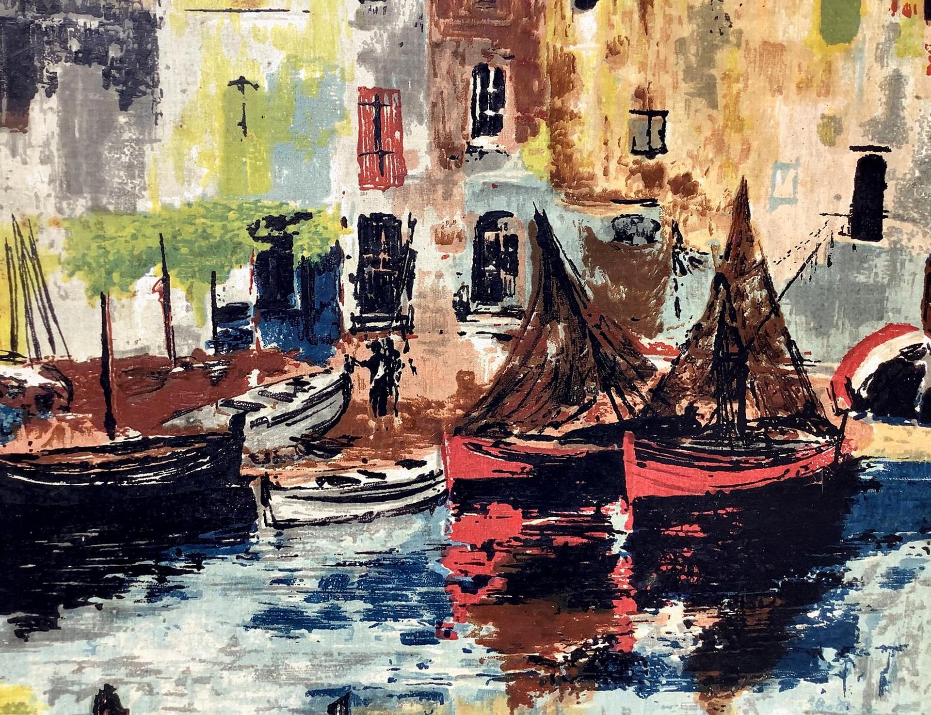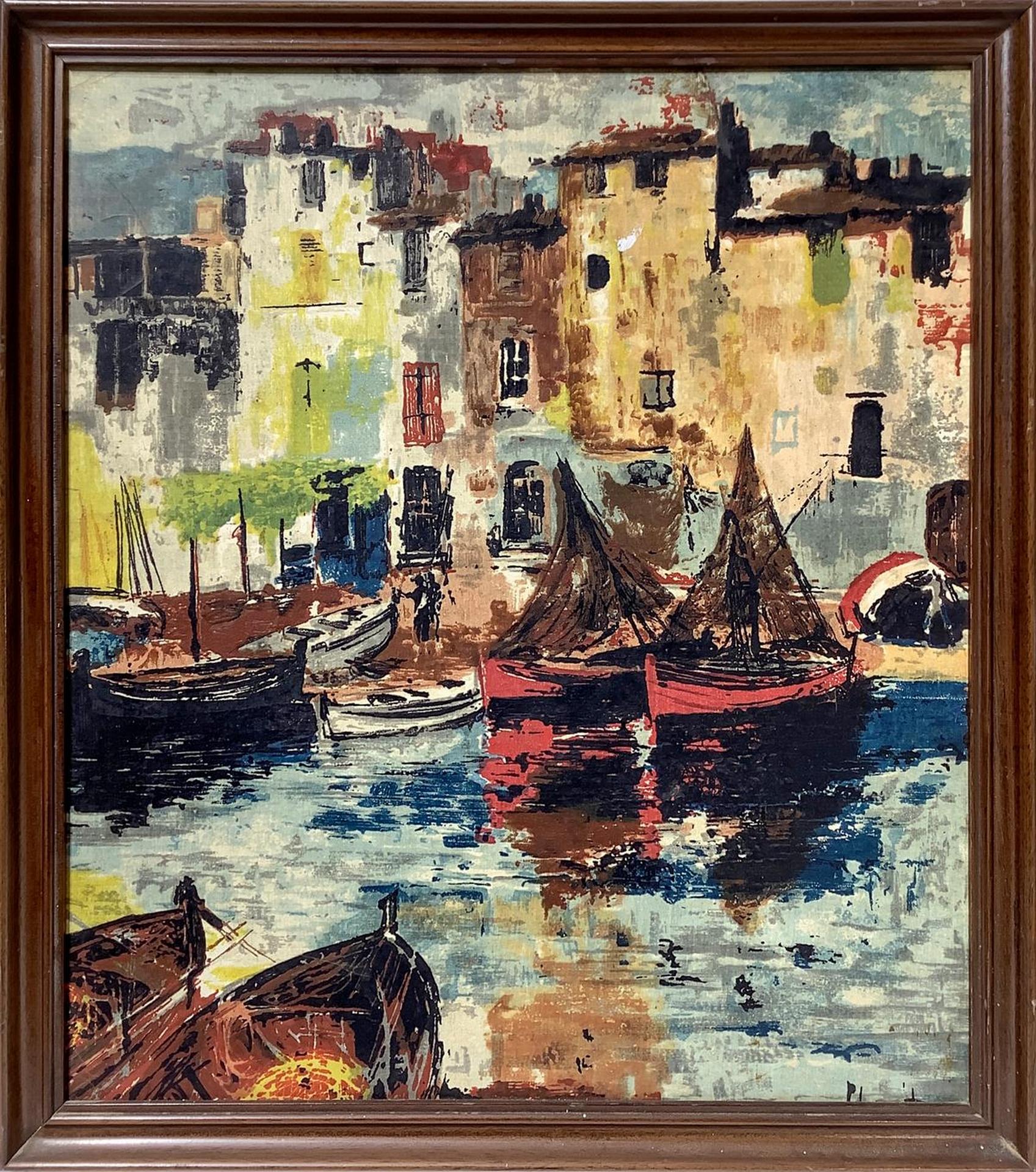 Dipinto ad olio su tavola di Josè Luis Florit Rodero (1909-2000), Barche da pesca in porto. Firmato in basso a destra Florit. Cm 53x46, in cornice cm 59x52