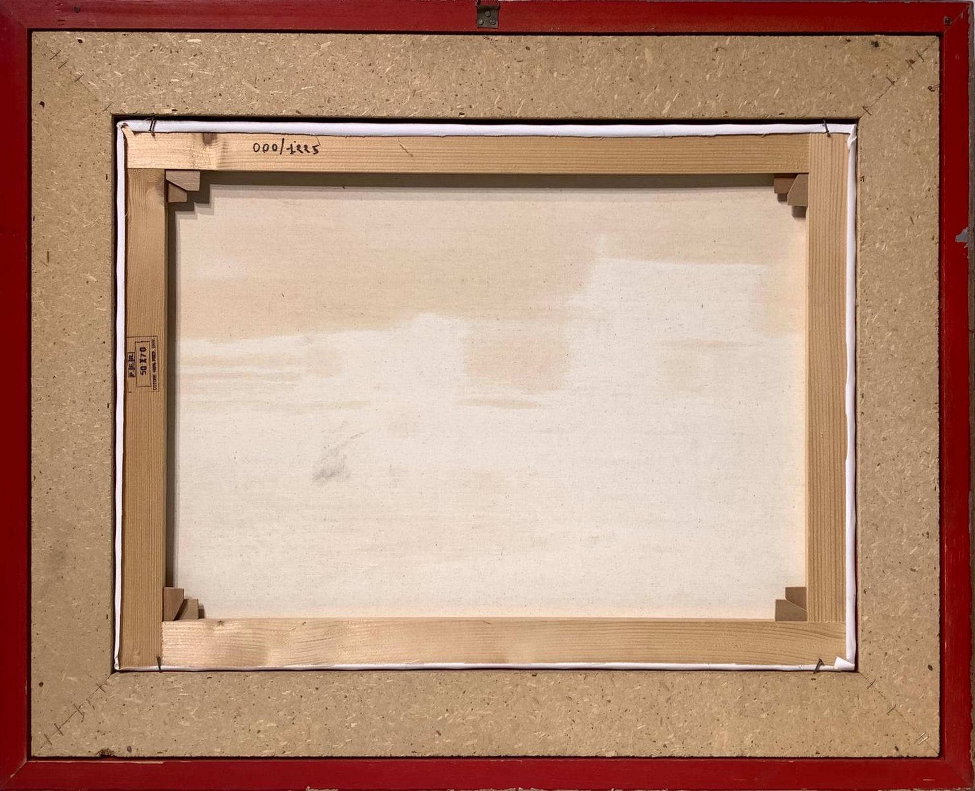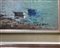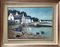 Dipinto ad olio su tela raffigurante paesaggio costiero con imbarcazioni e...