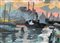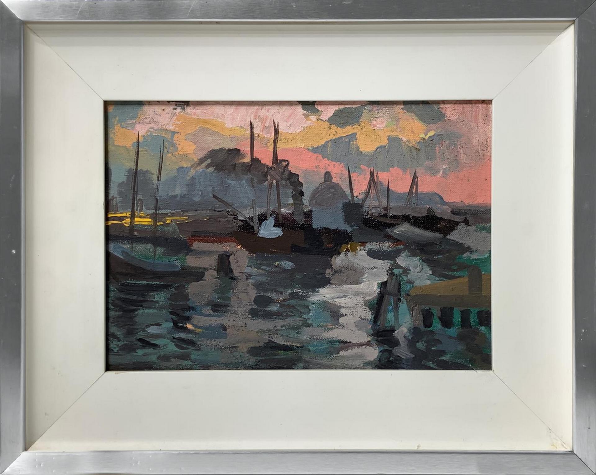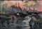 Olio su tela raffigurante paesaggio veneziano al tramonto. Cm 25x35, in...