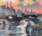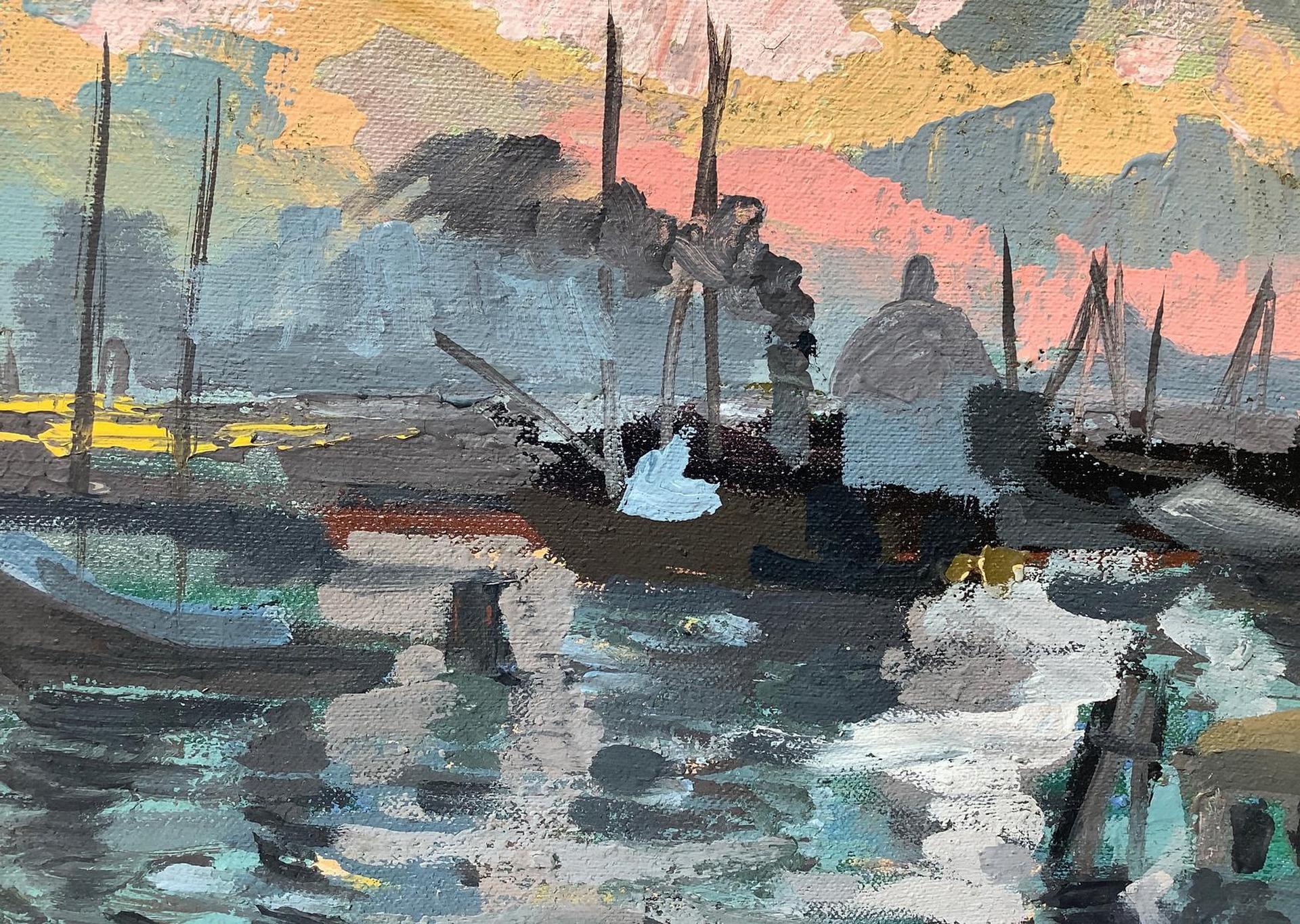 Olio su tela raffigurante paesaggio veneziano al tramonto. Cm 25x35, in cornice cm 41x51