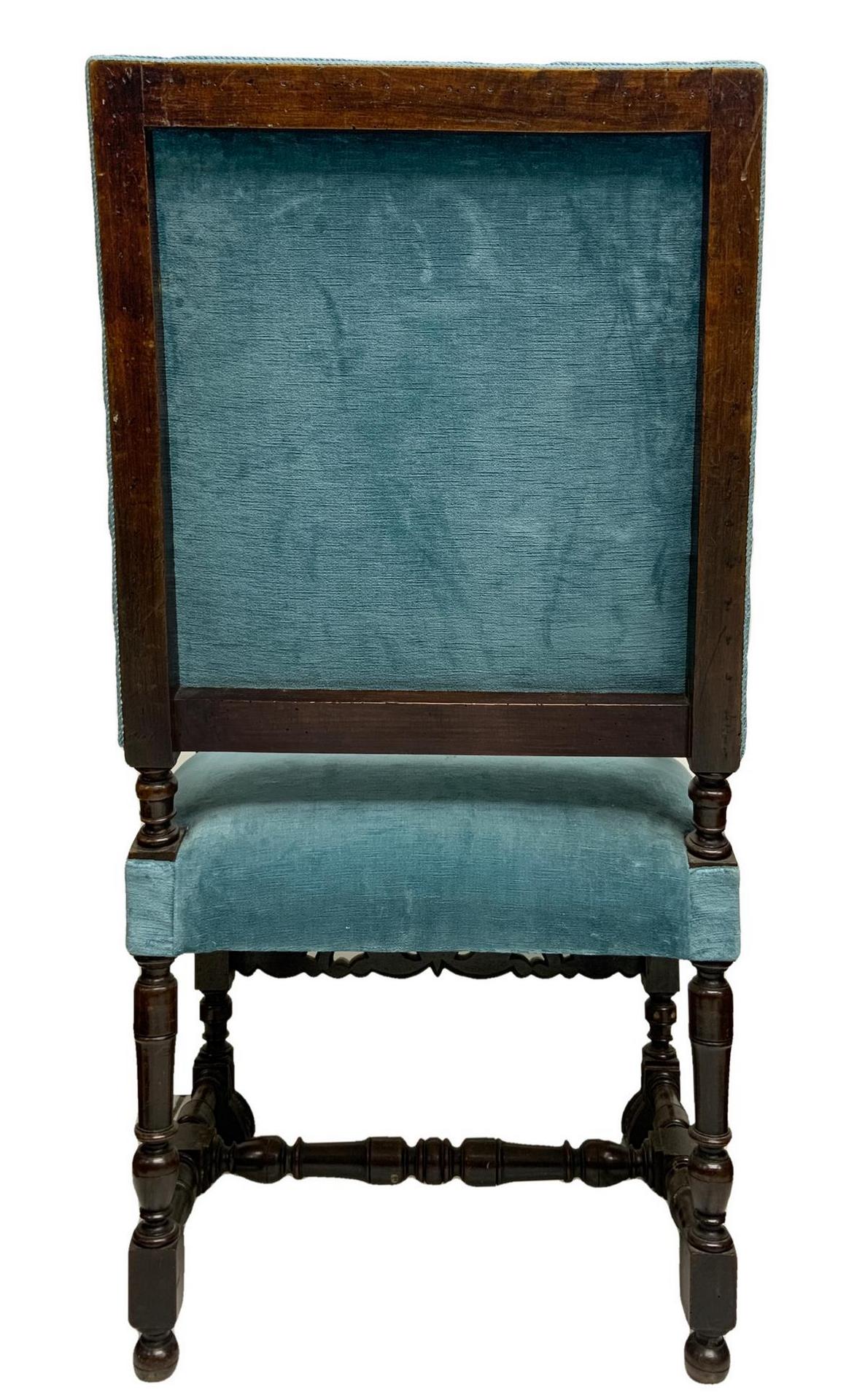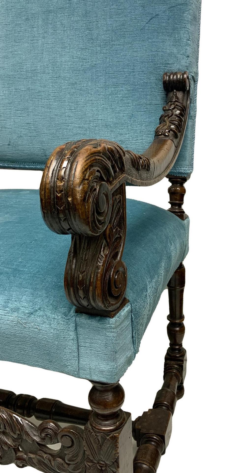 Poltrona in legno di noce scolpito, Lombardia, Italia, XVII secolo. Con...