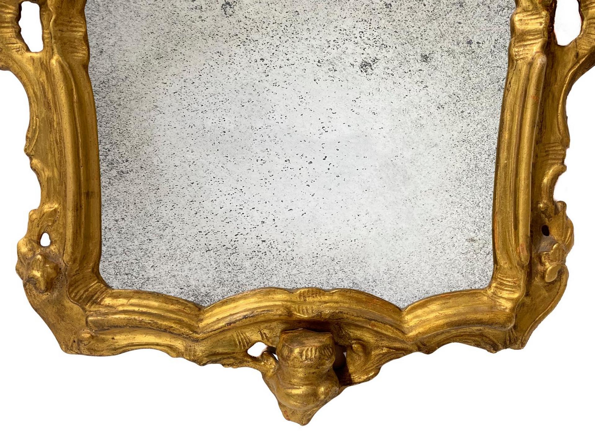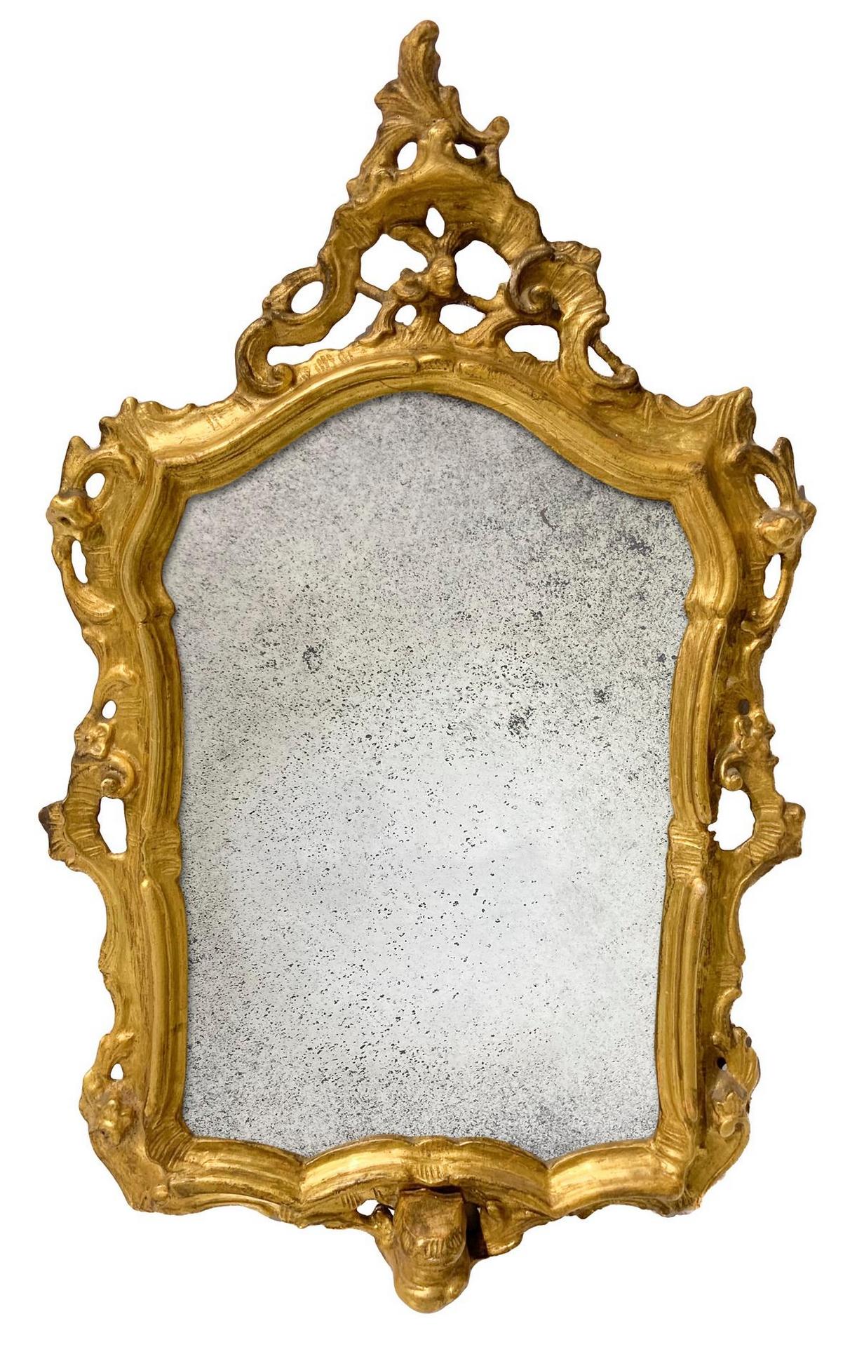 Piccola specchiera del XVII secolo,Luigi XV, in legno dorato epoca. Specchio al mercurio. Cm 69x42