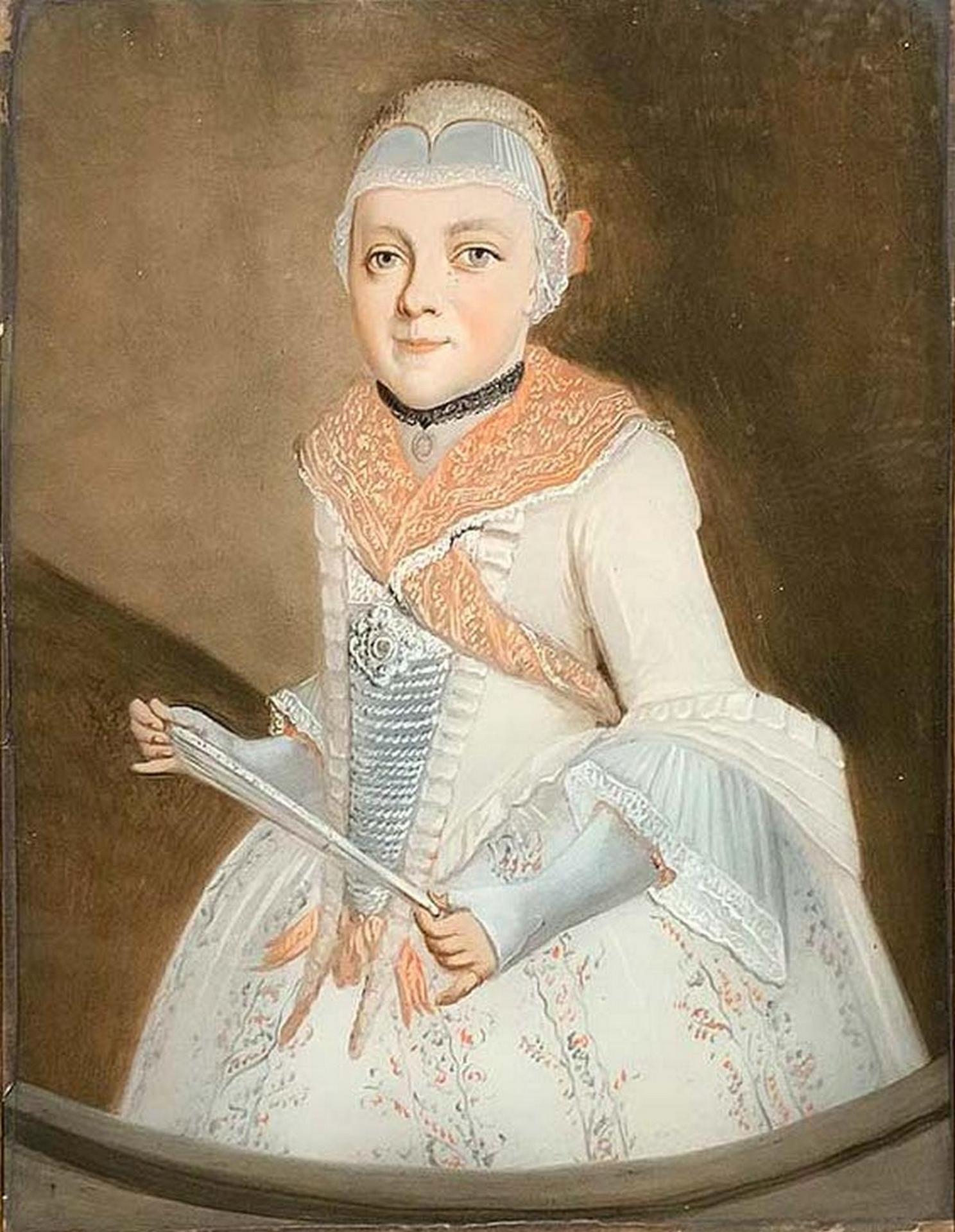 Pittura su vetro del XVIII secolo raffigurante Infanta reale. 25x20,tempera su vetro