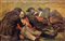 Dipinto ad olio su tela raffigurante soccorso a soldati feriti, XIX secolo. Cm 23,5x28,5. Senza cornice