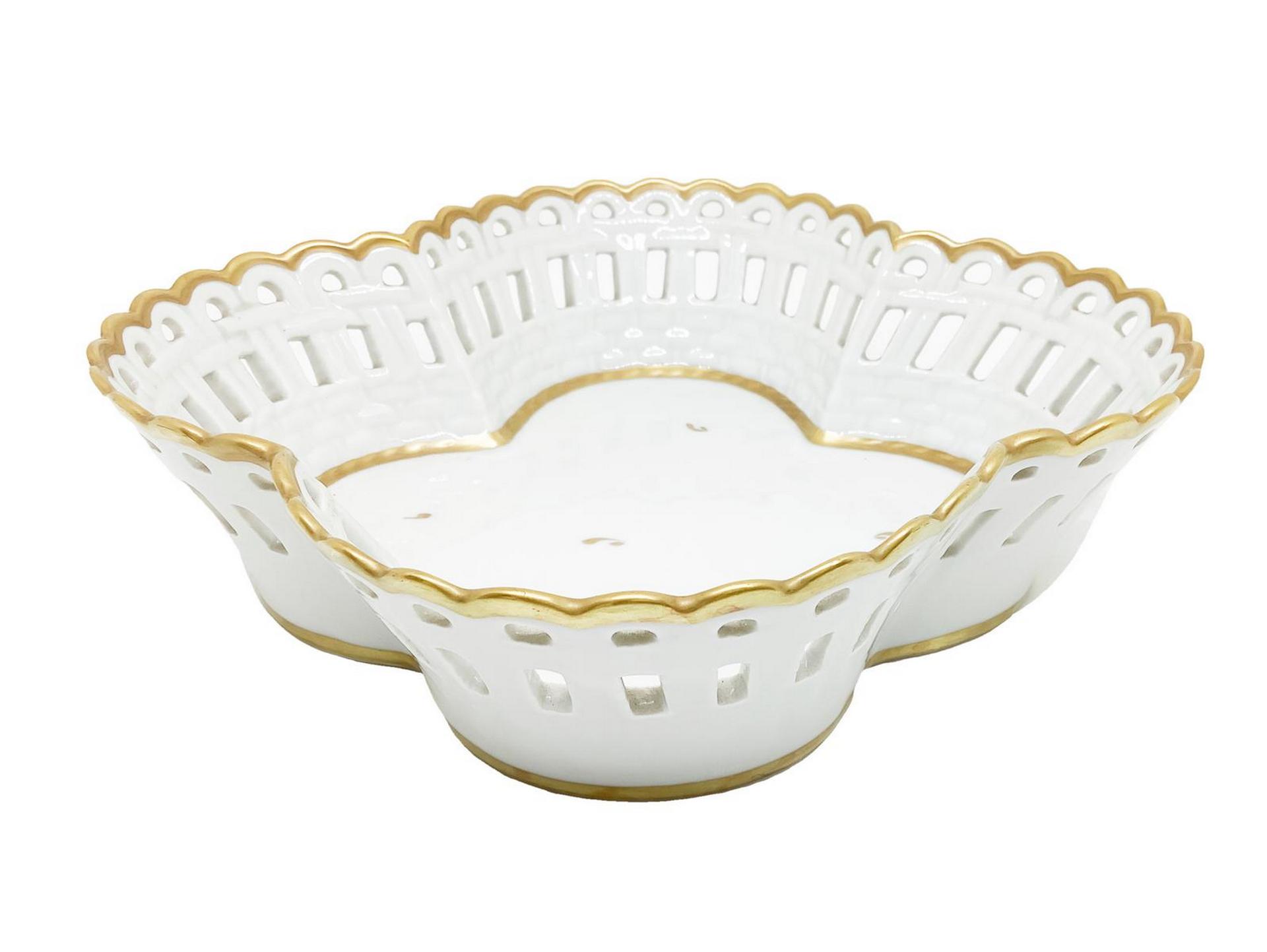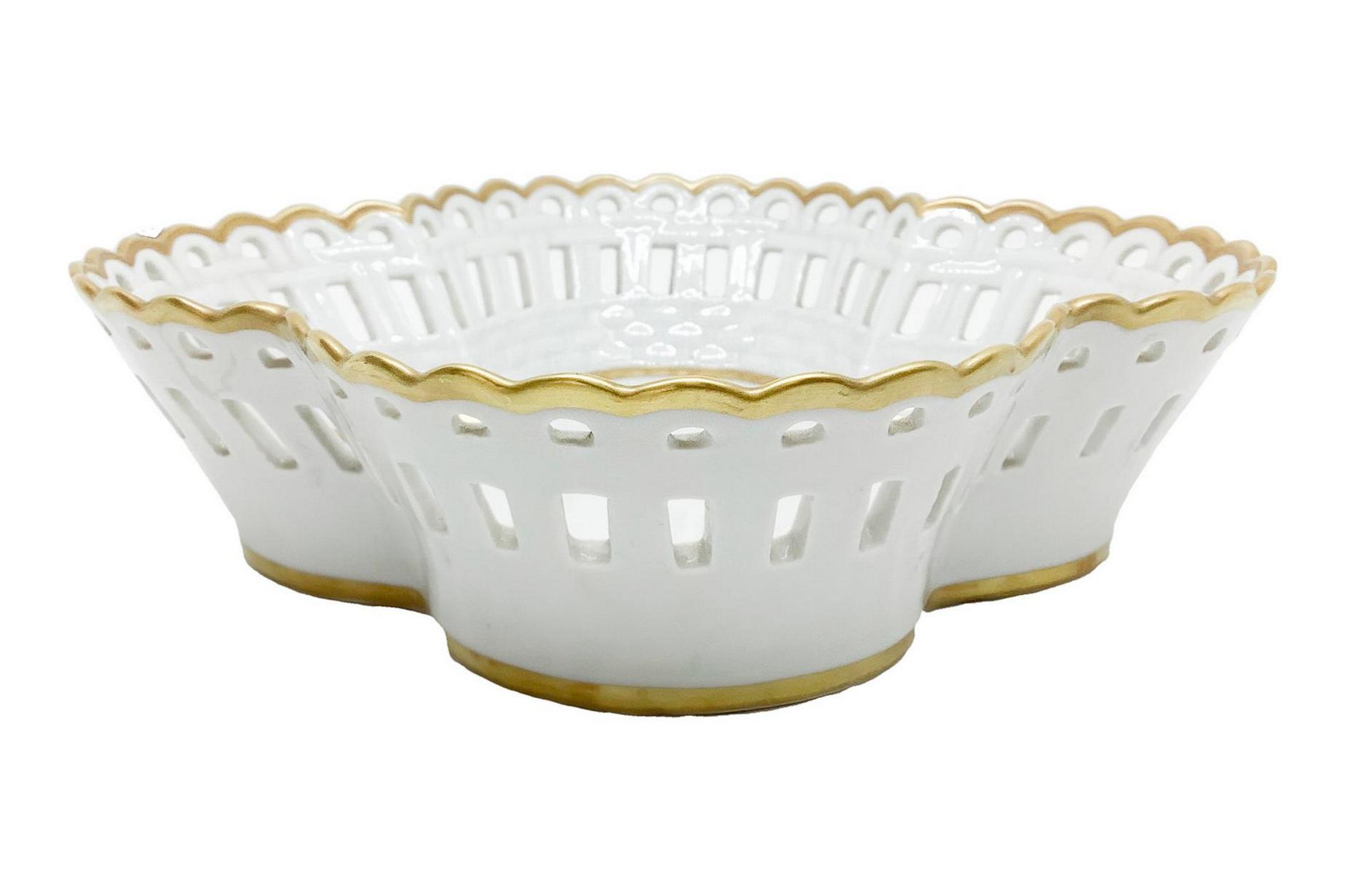 Porta dolci in porcellana bianca con perfilo dorato Capodimonte. H cm 5. Cm...