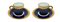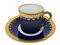 Servizio di tazzine tet-a-tet in porcellana, Limoges, Francia, XX secolo. Colore blu e decorazioni oro. Tazzina h cm 4,5