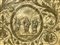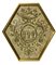Paramento liturgico raffigurante Sant’Alfio, Sant’Cirino e Sant’Filadelfo con decoro floreale a larghe foglie in cornice esagonale. Cm 55x50