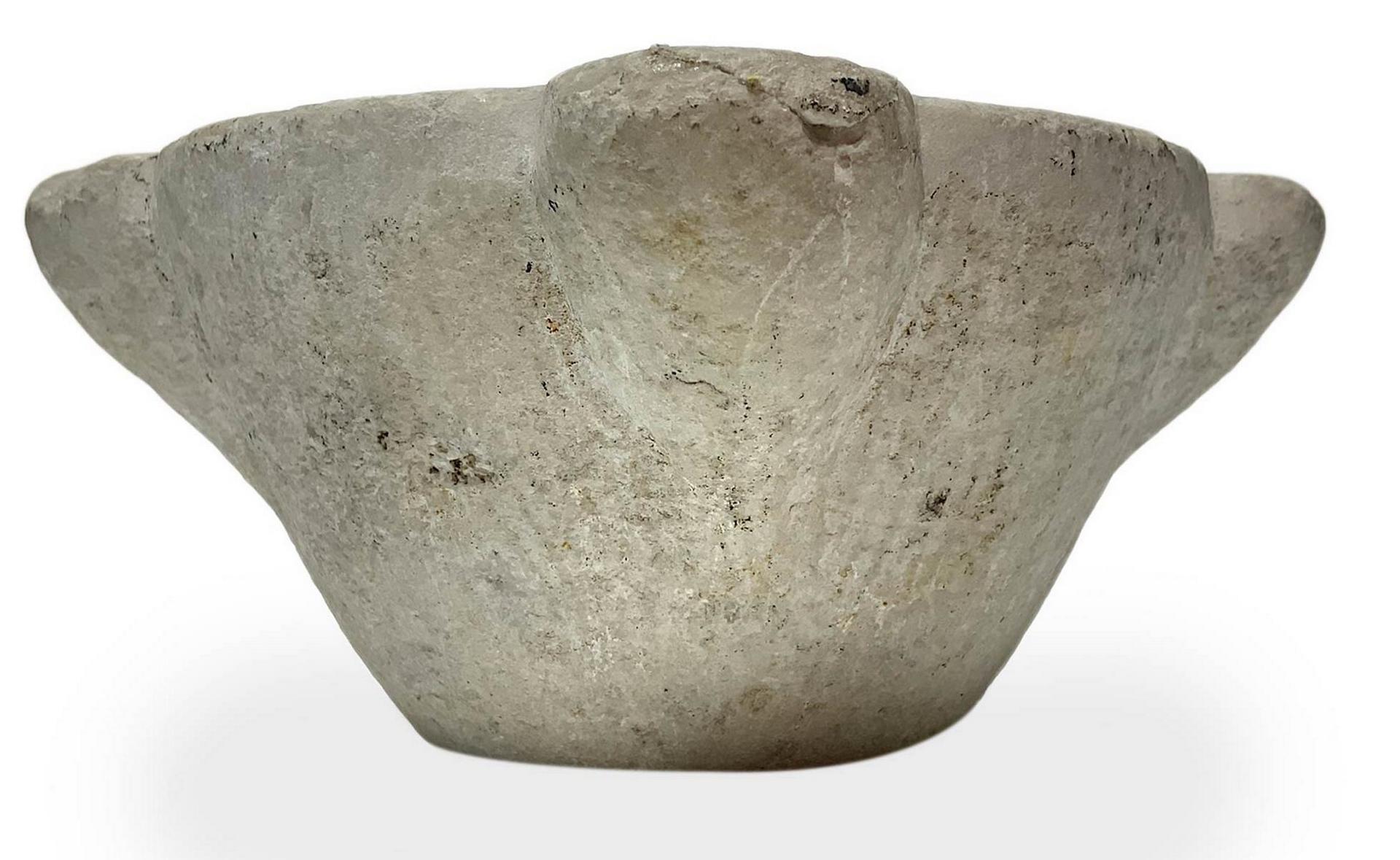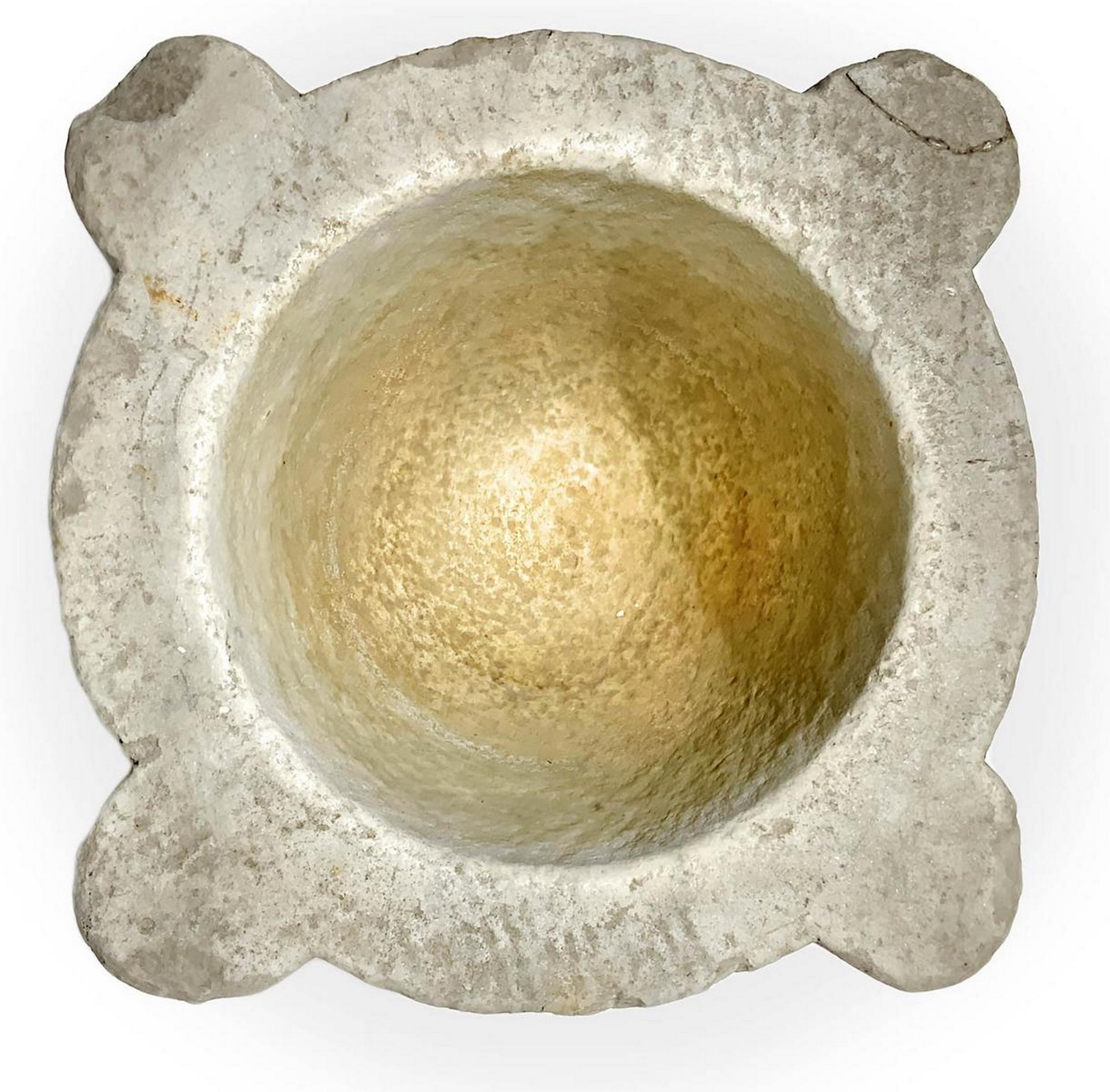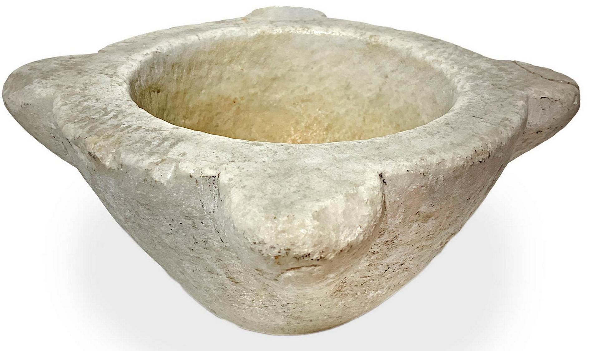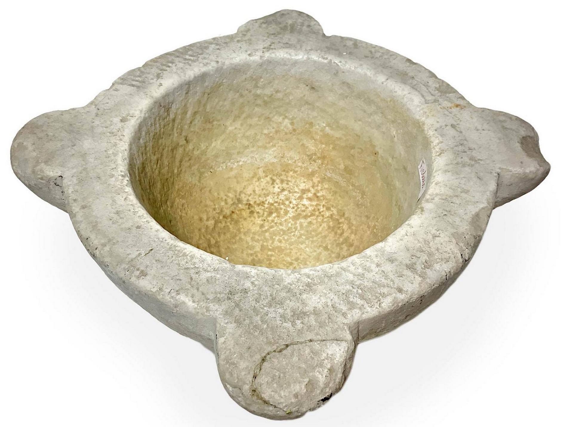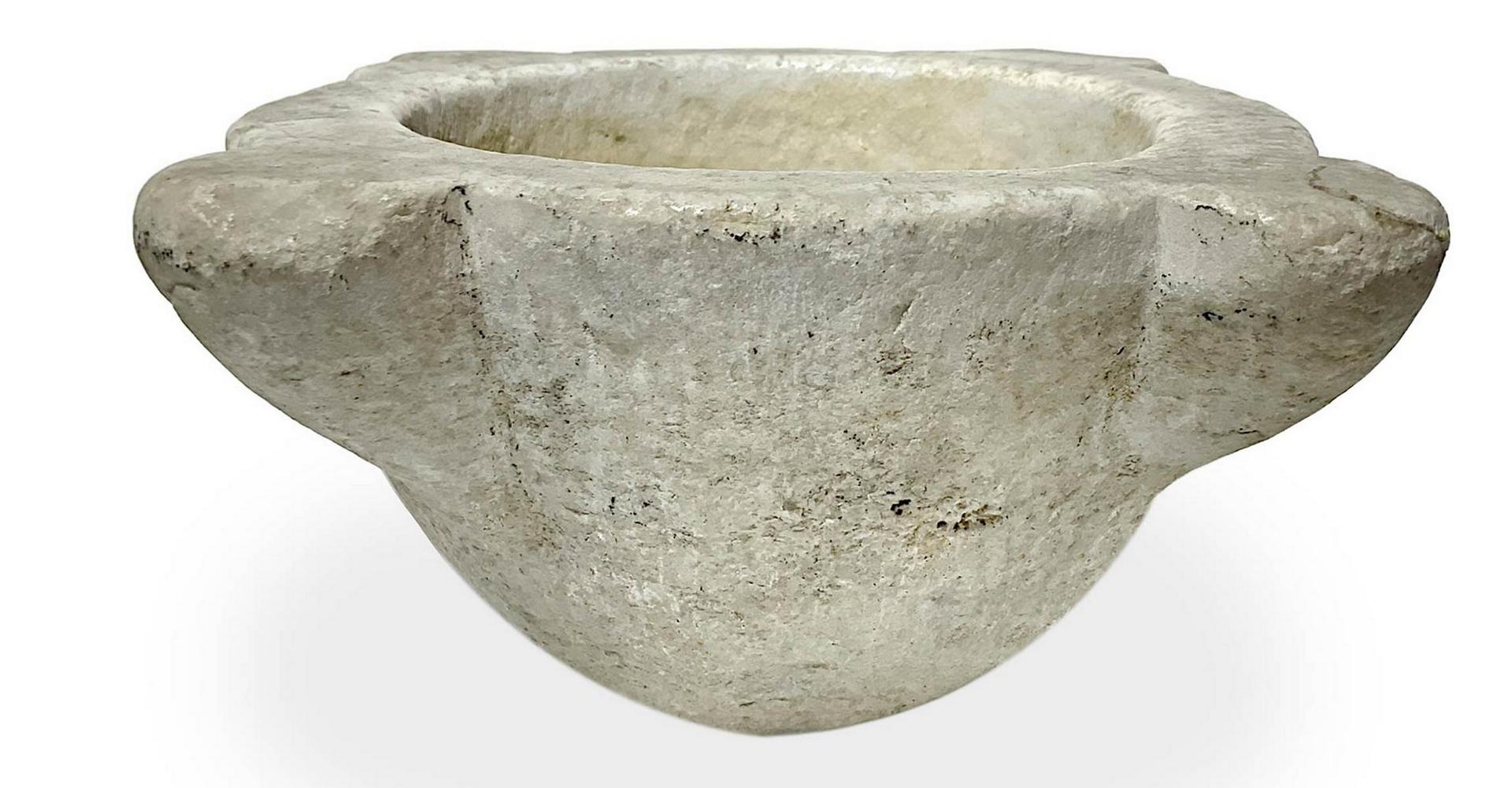 Mortaio in marmo, XIX secolo. H cm 12, diametro cm 27.