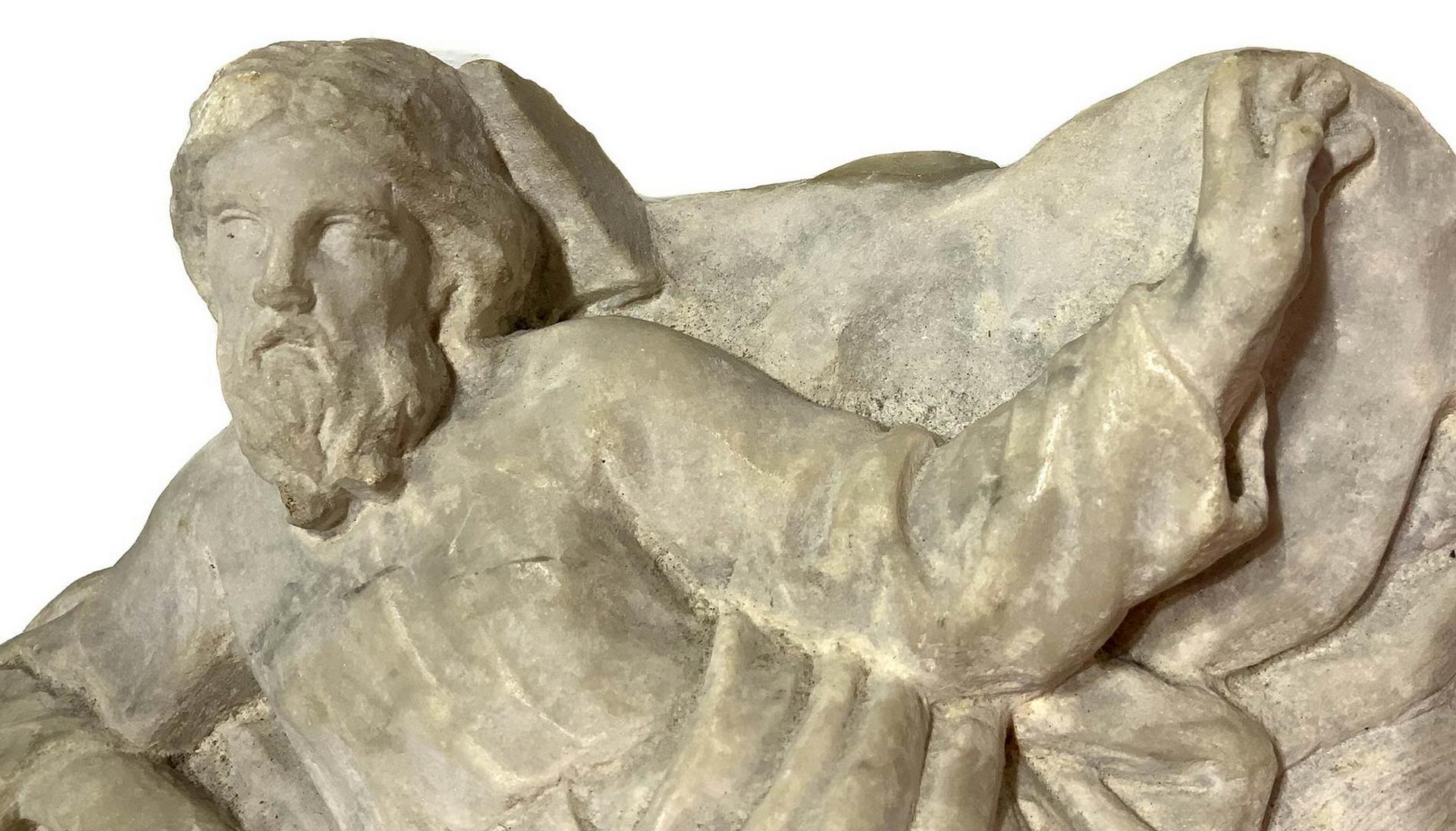Scultura in marmo raffigurante Dio, XVII secolo. H cm 18 , base 26x8