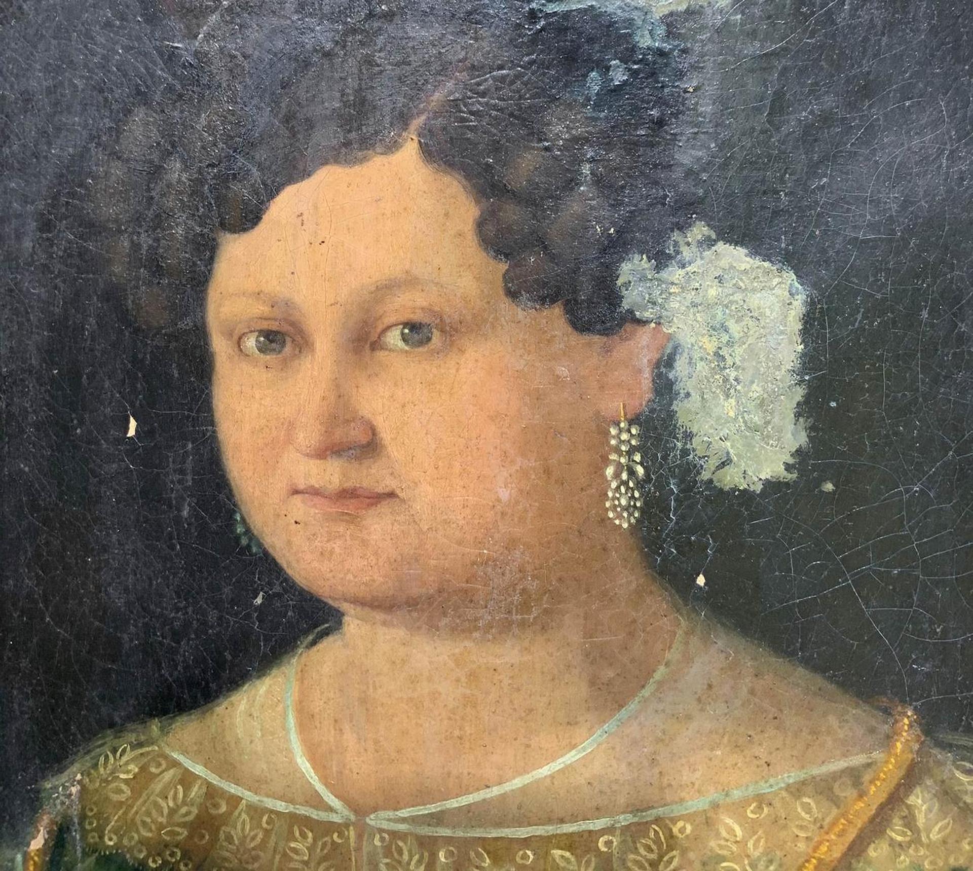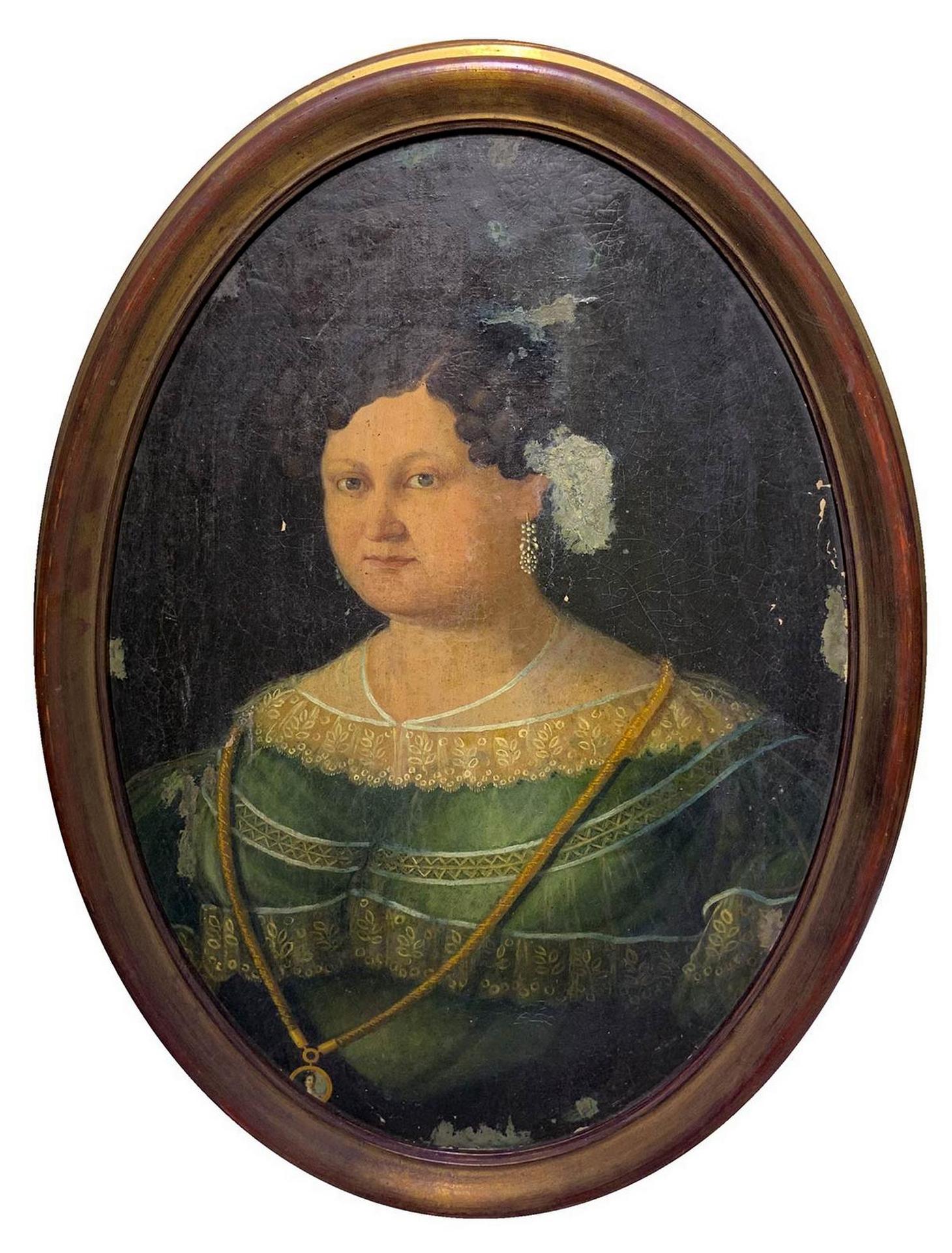 Dipinto ovale ad olio su tela raffigurante ritratto femminile, XIX sec,...