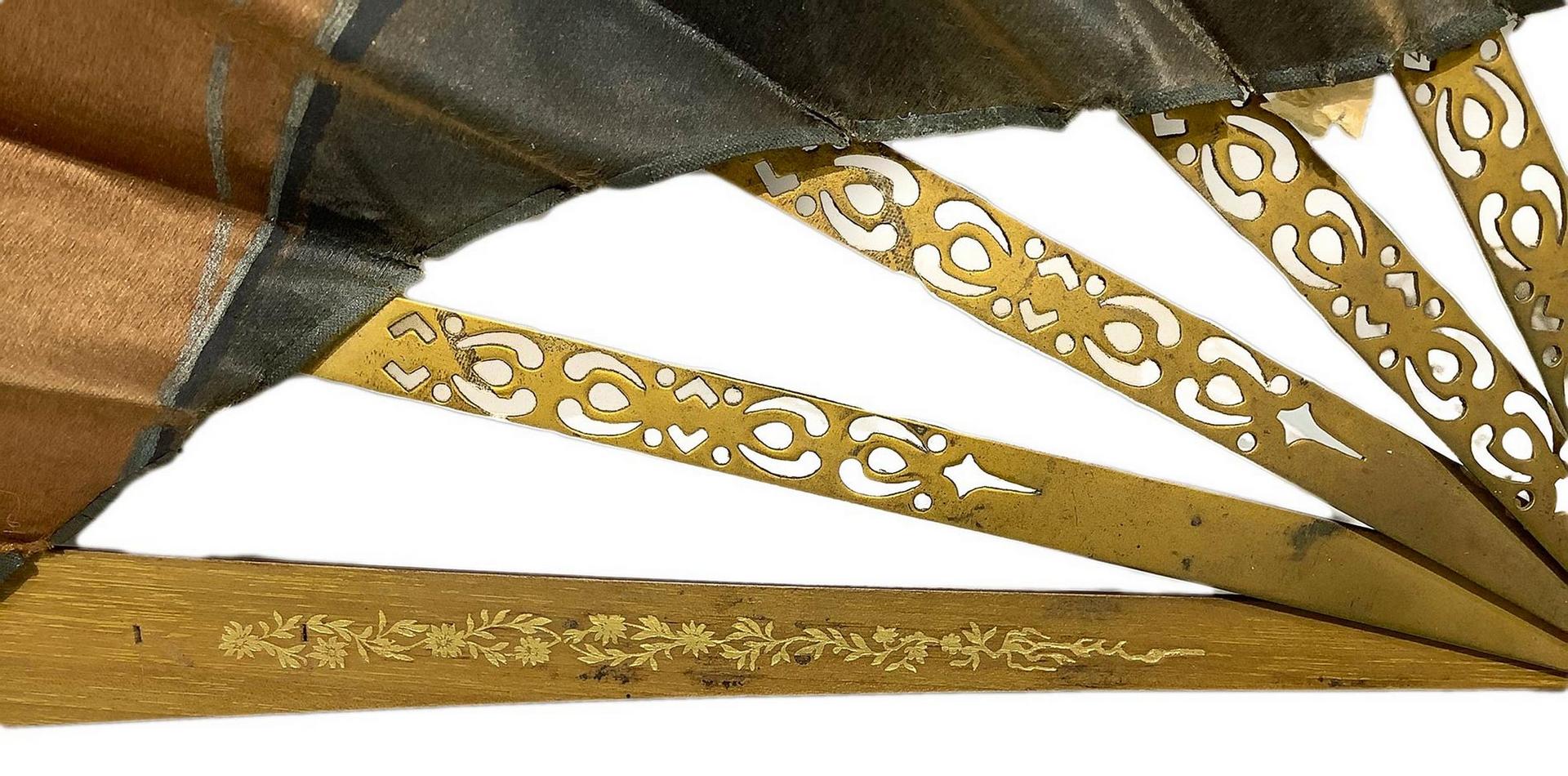 Ventaglio in seta dipinto a mano, Fratelli Battiati Catania. Decorato con foglie e farfalle. XIX secolo, anni ’30. Cm 63