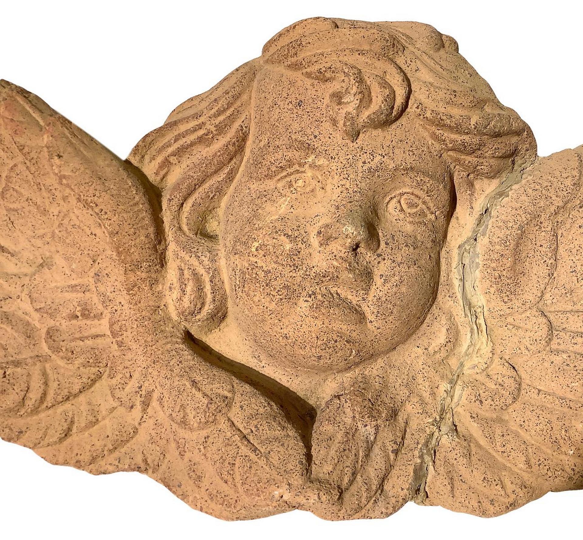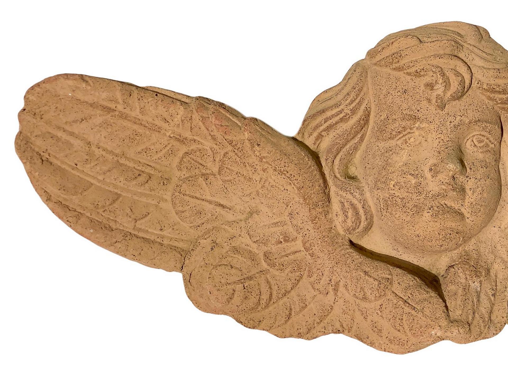 Angelo in terracotta con ali a volo alto, Caltagirone, XX secolo. Incollatura ad un ala. Cm 23x57