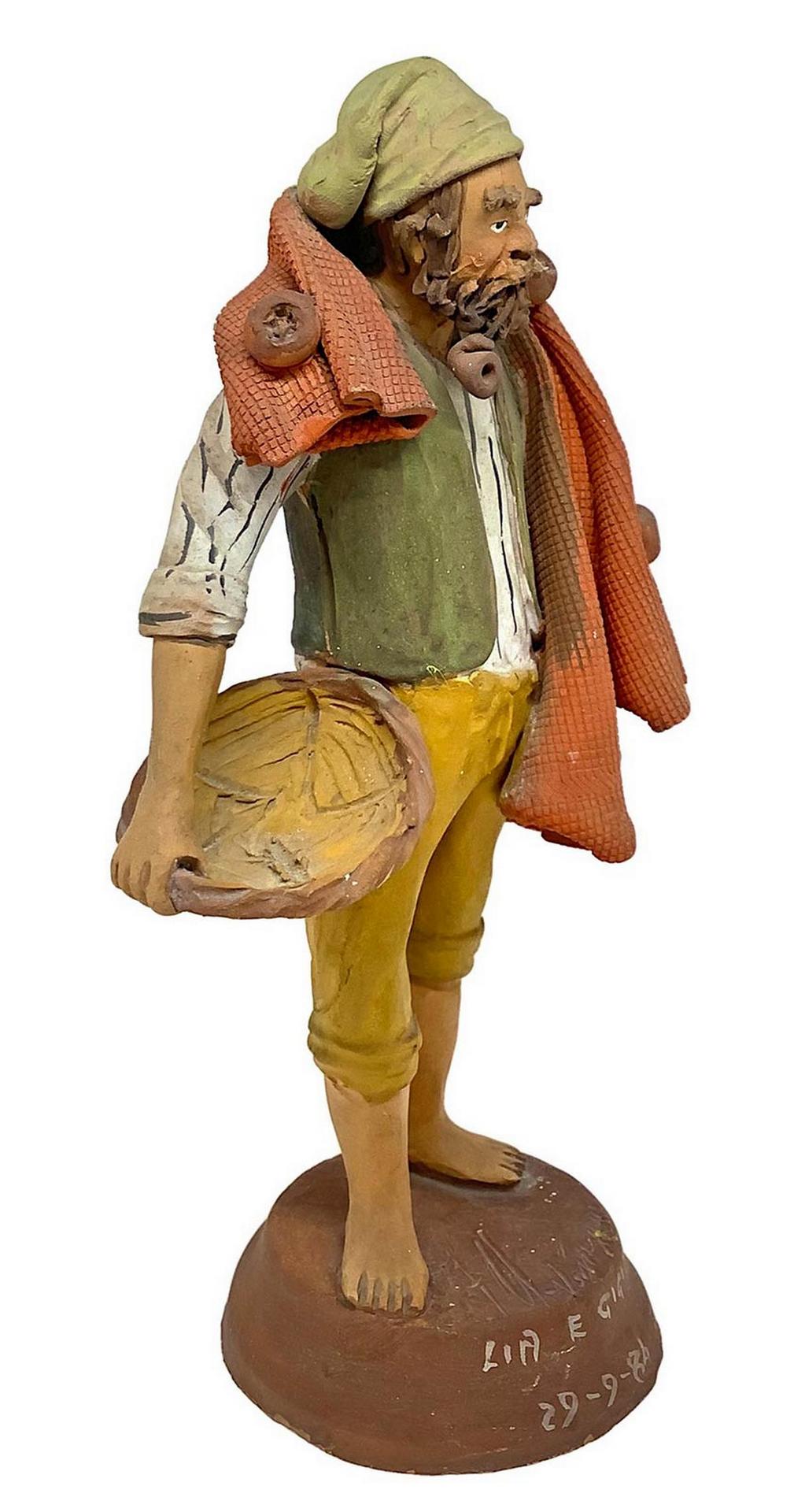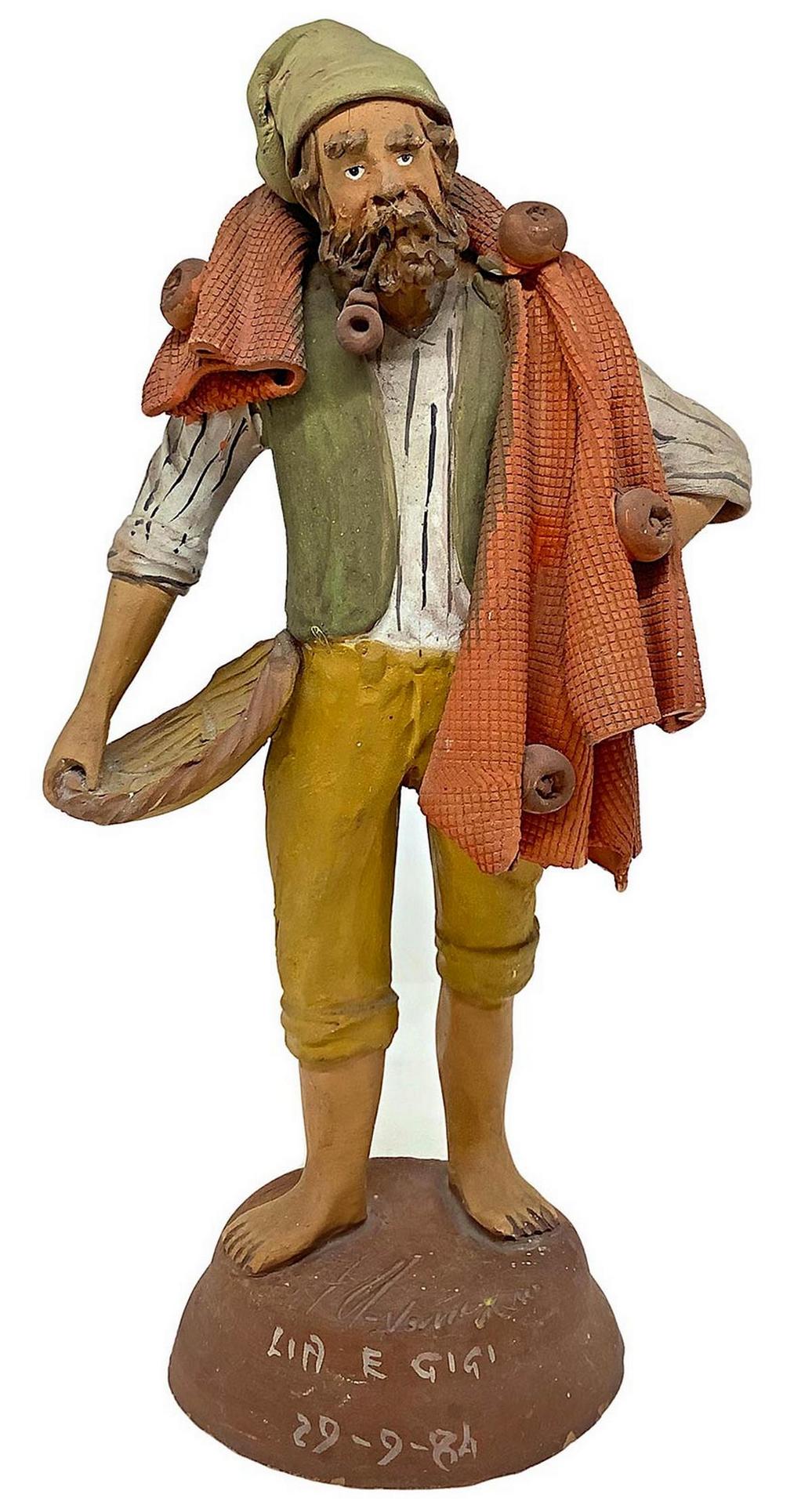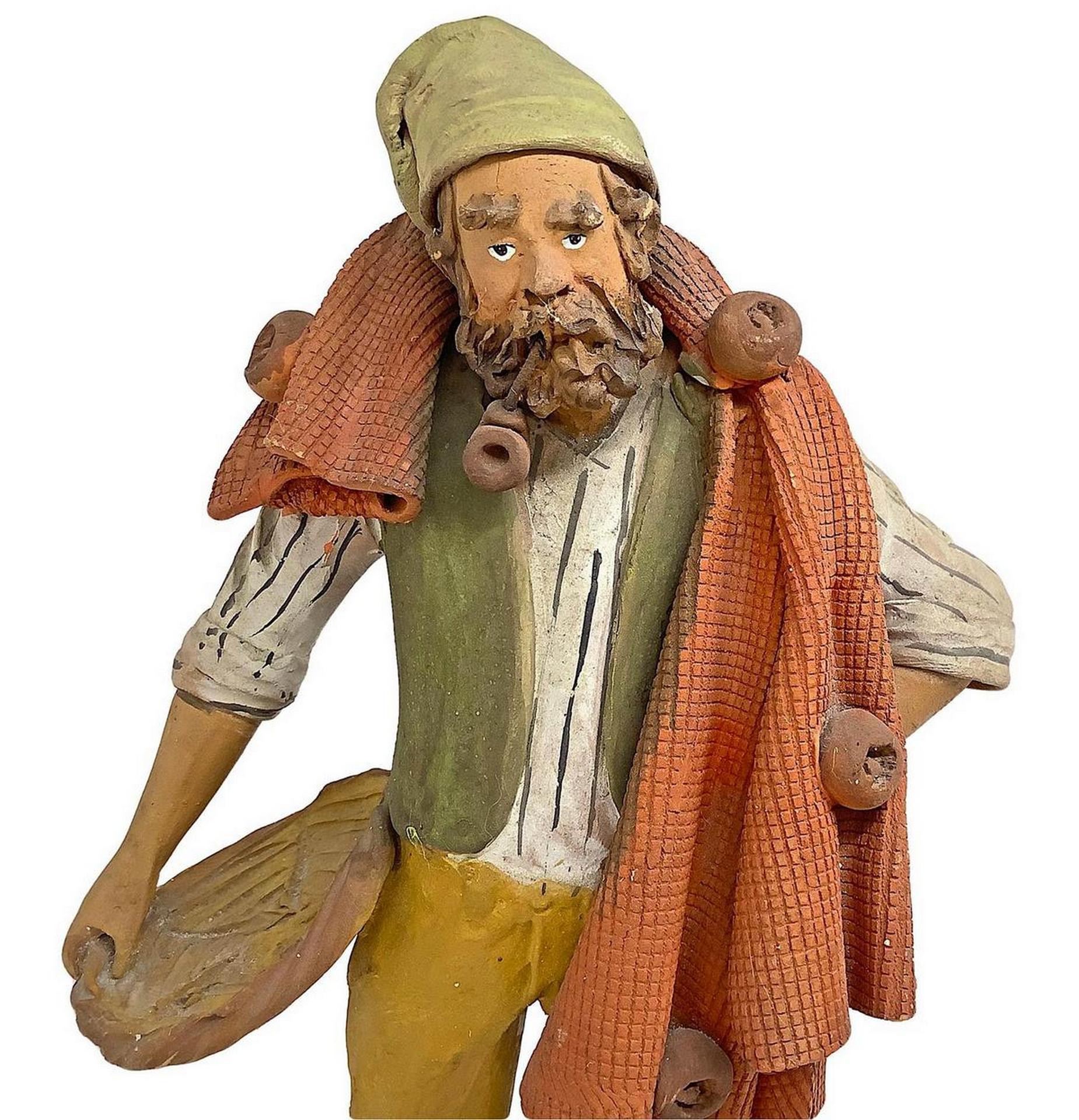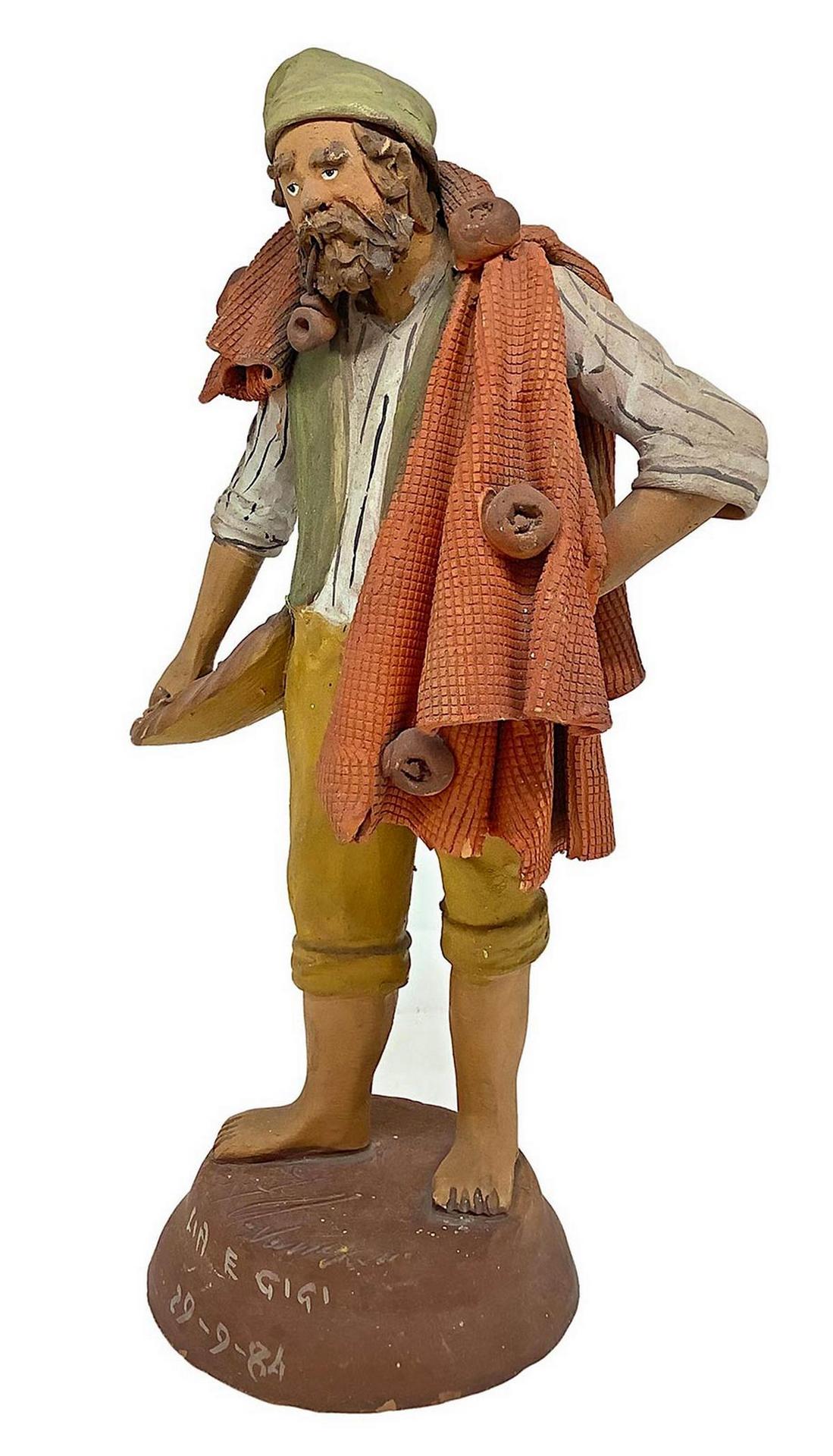 Scultura in terracotta policroma raffigurante pescatore, Caltagirone. Datato sulla base 1984. H cm 24.