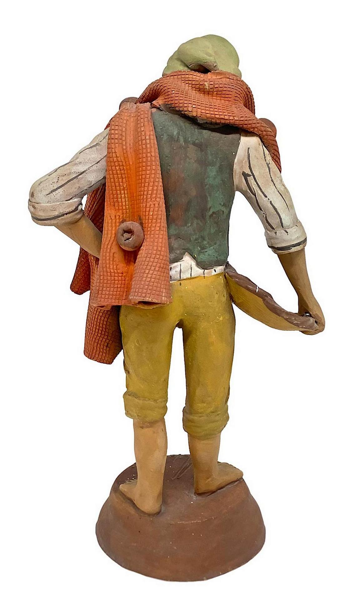 Scultura in terracotta policroma raffigurante pescatore, Caltagirone. Datato...
