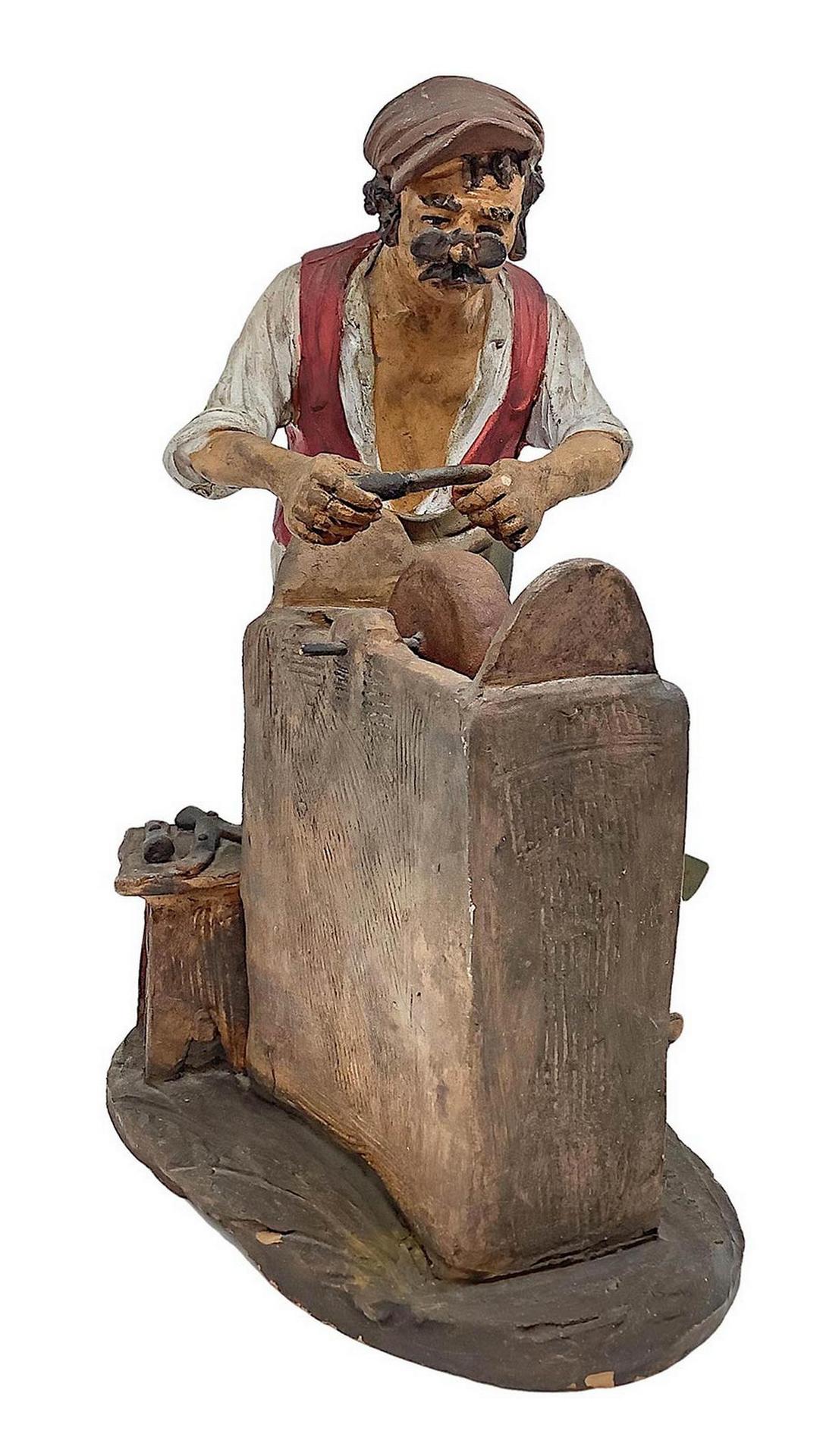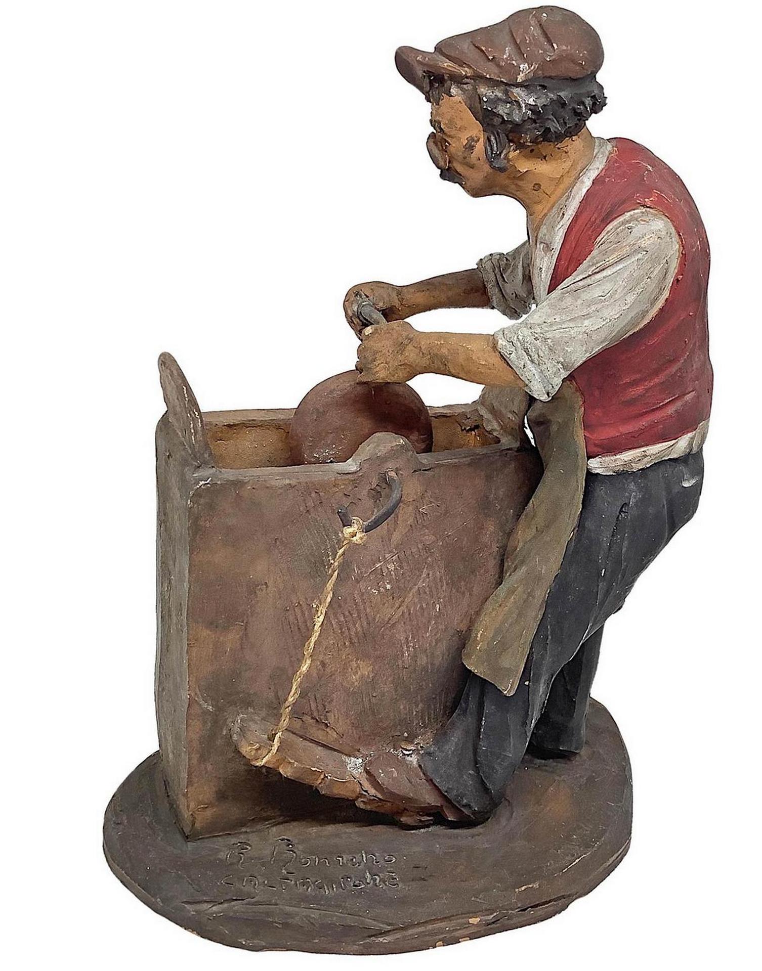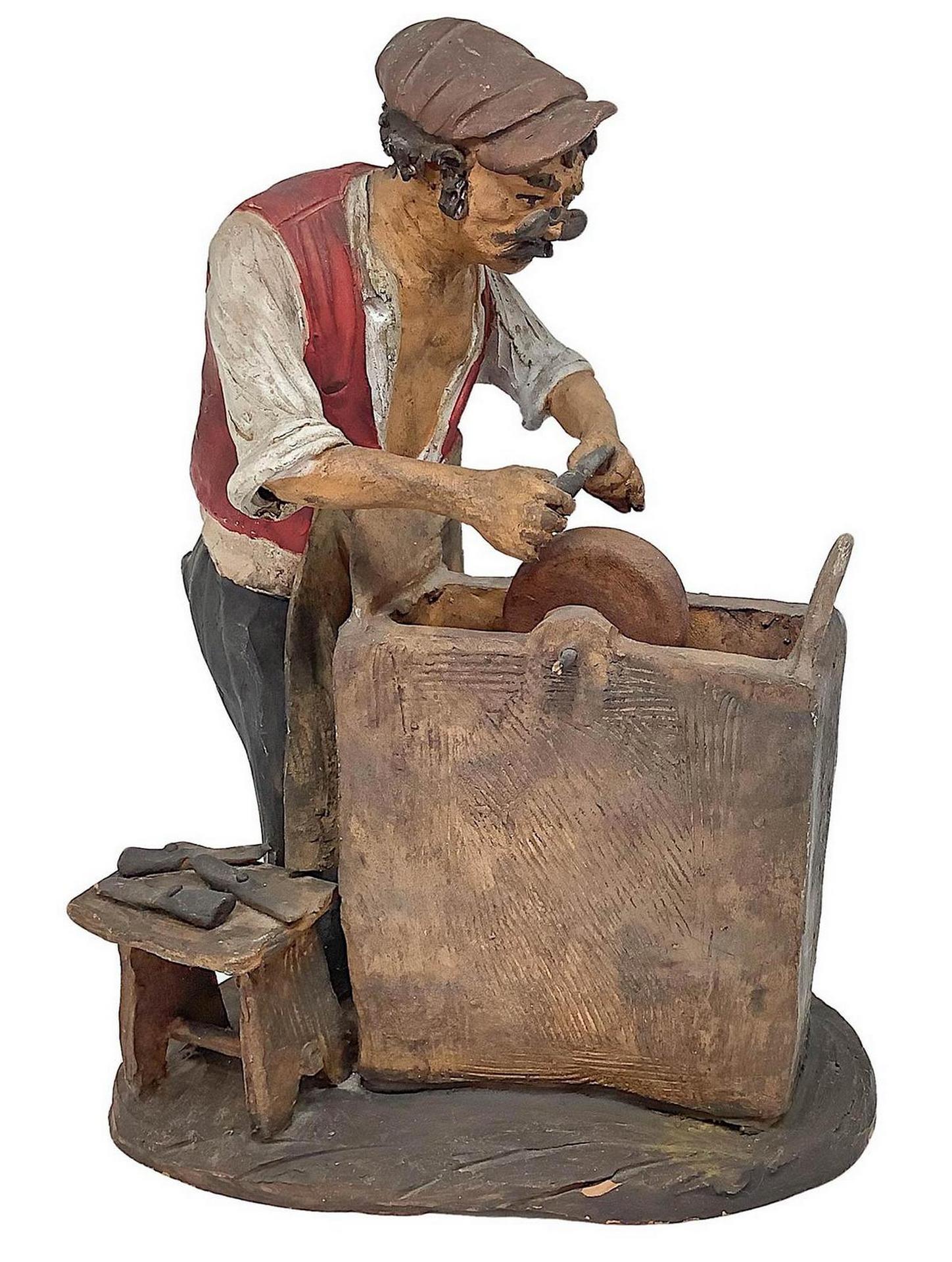 Lot 183 | Scultura in terracotta policroma raffigurante arrotino. Firmato Romano,...