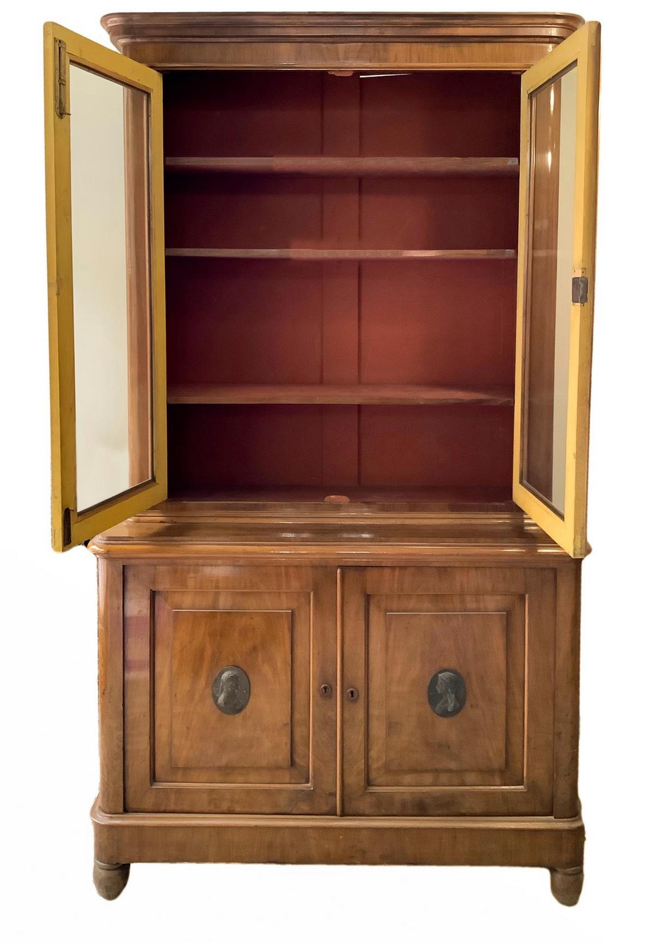 Credenza in legno di noce con sportelli alla base e vetri sul corpo...