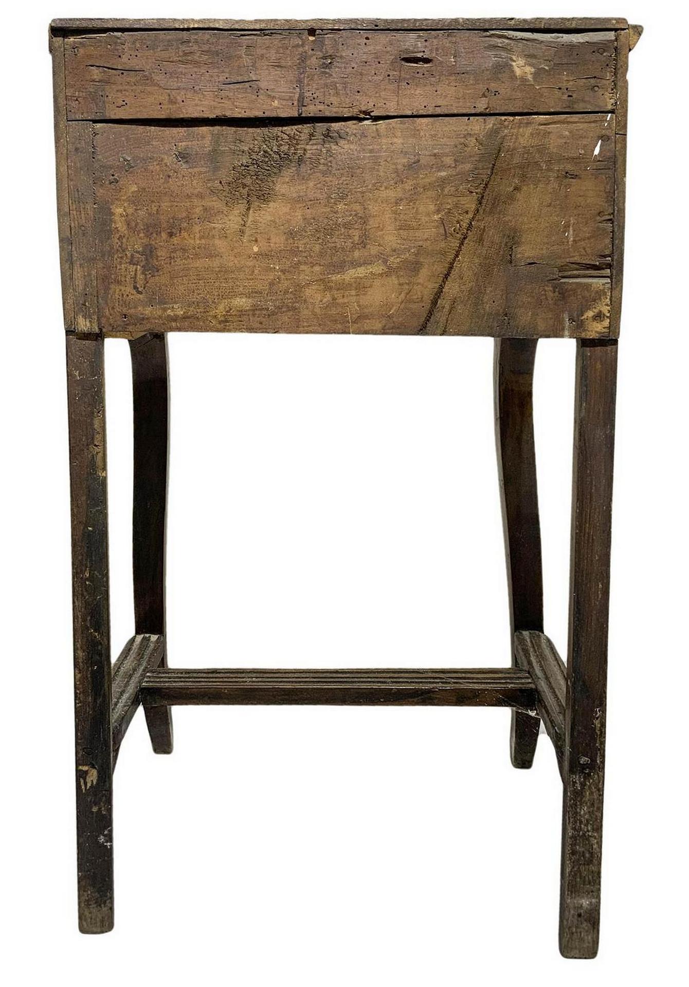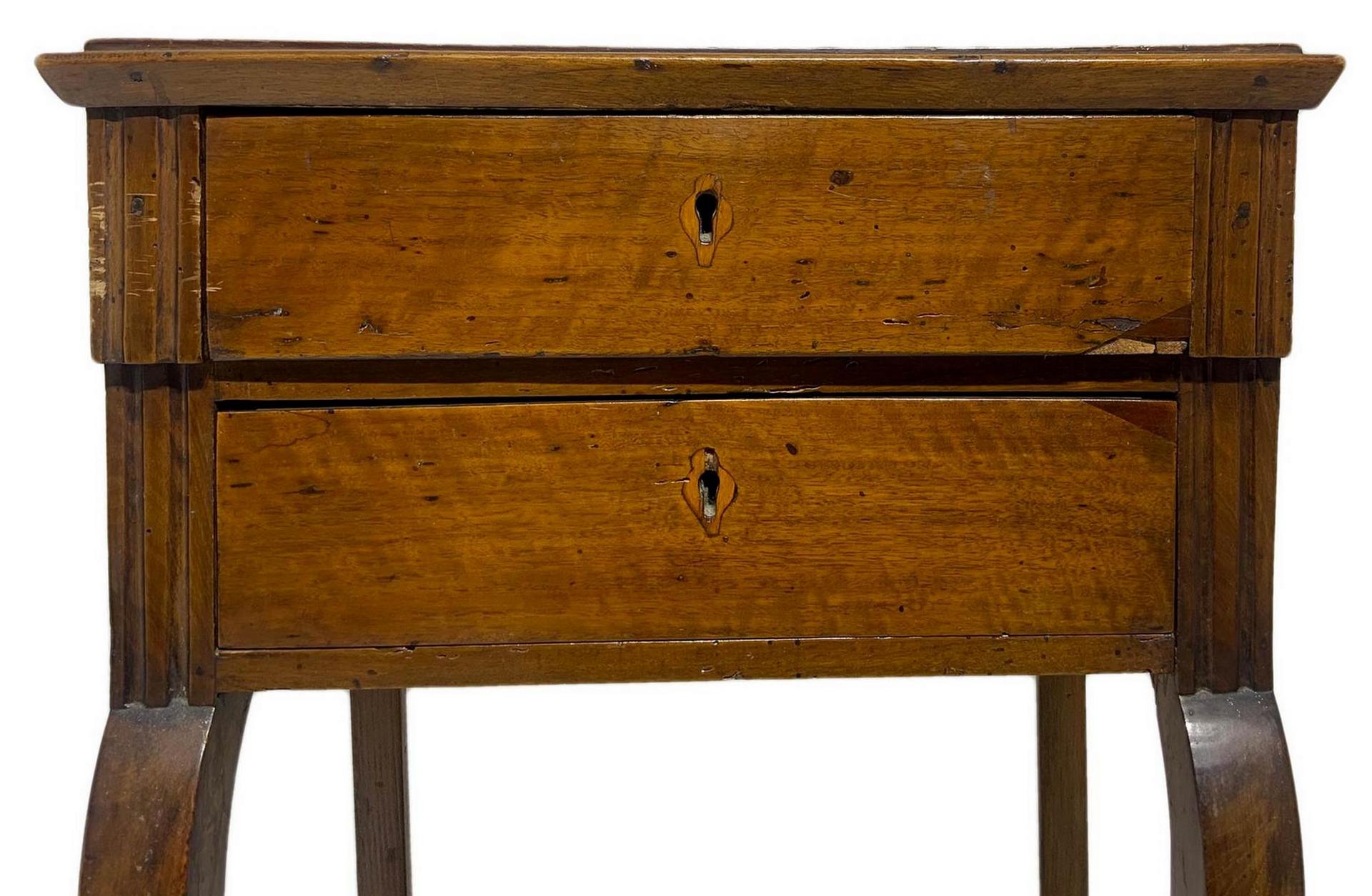Comodino a due cassetti, Sicilia, XIX secolo. In legno di noce con piedi a sciabola . H cm 90 x56x40