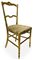 Coppia di sedie chiavarine in legno dorato, fine XIX secolo. Seduta in stoffa di seta. Mancanza di una barretta laterale in una sedia.