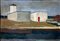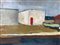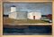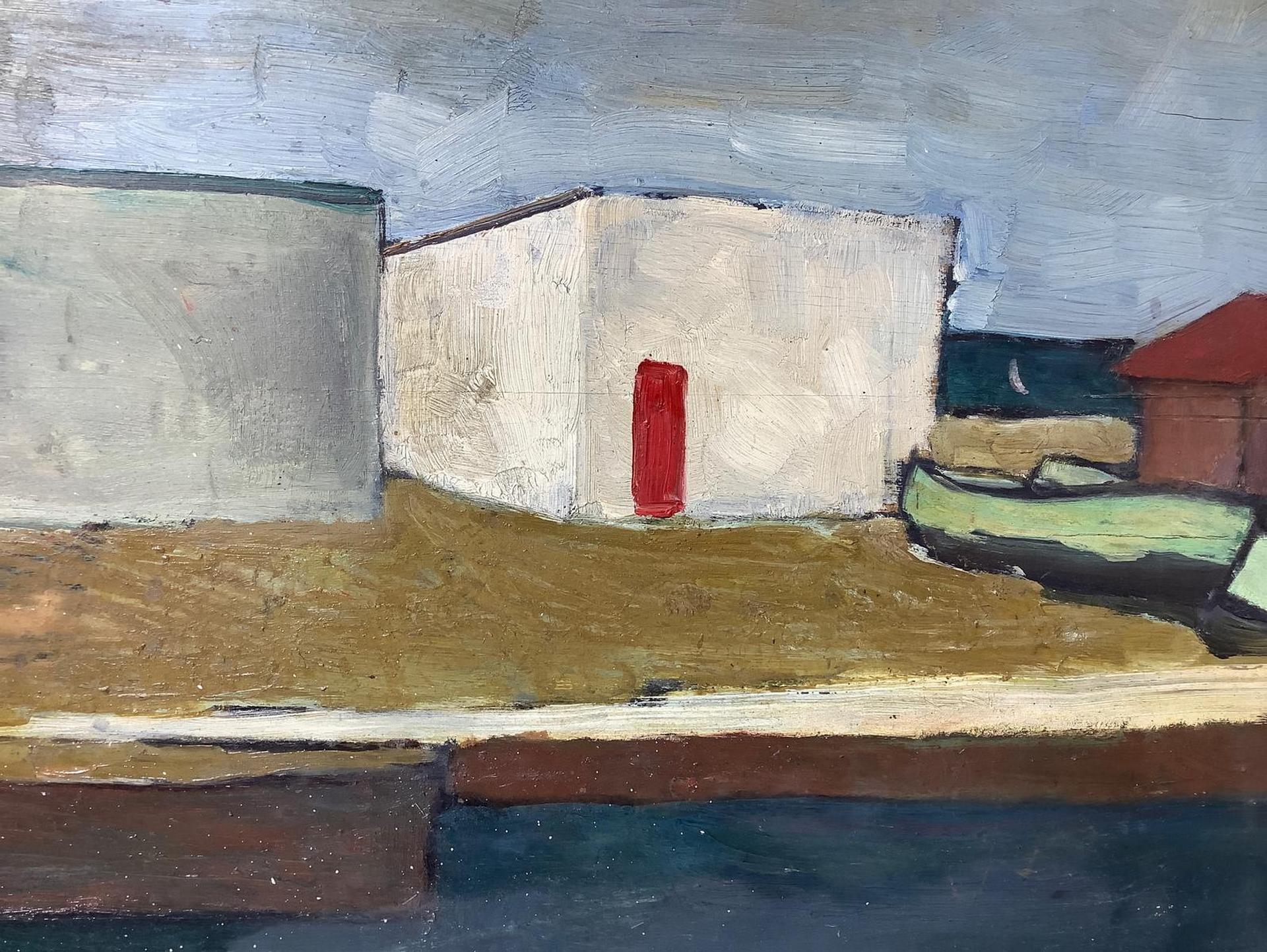 Dipinto ad olio su tavola, raffigurante marina con case, firmato in basso a...