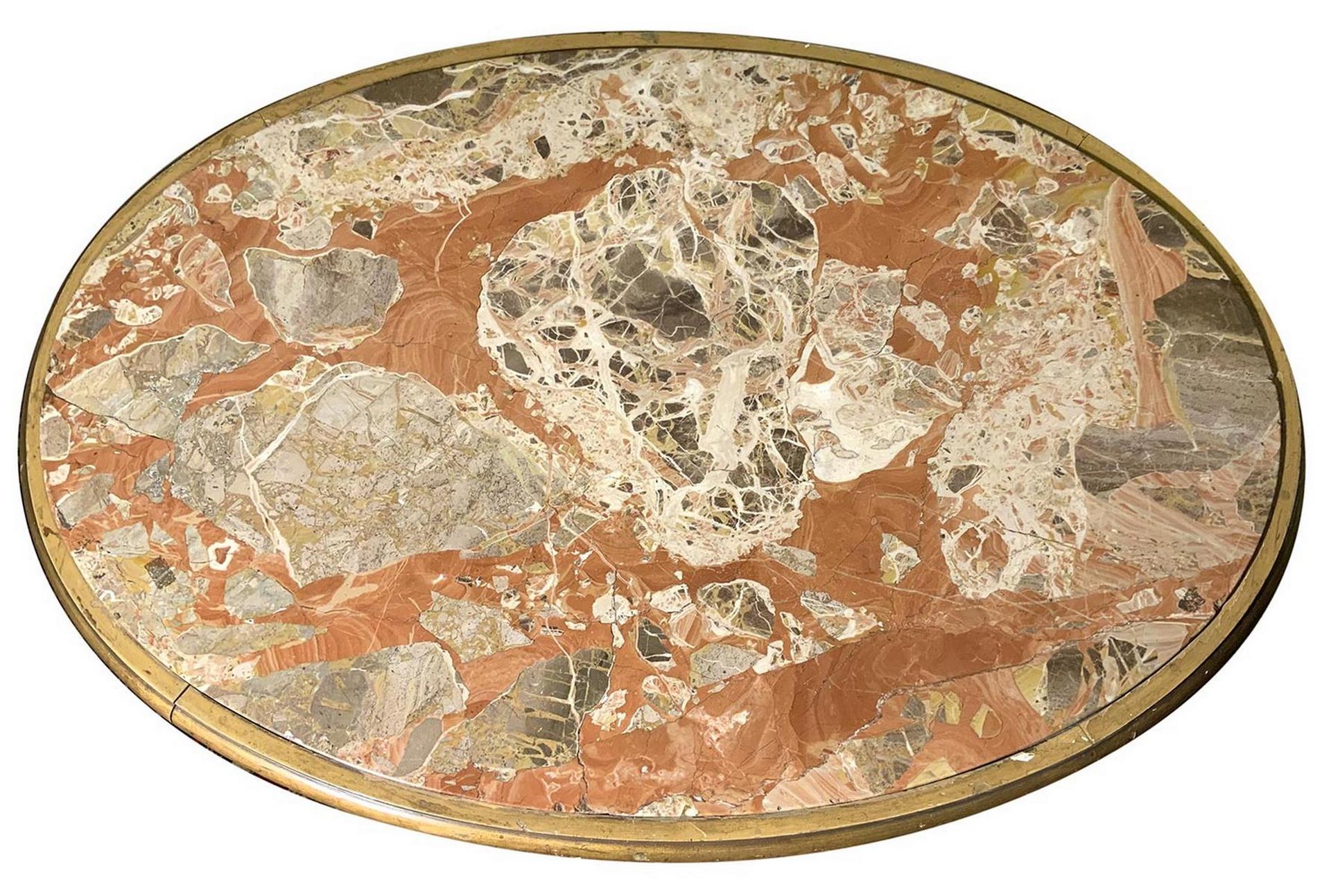 Tavolo laccato policromo, fine XIX secolo. Marmo incassato al piano rosso...