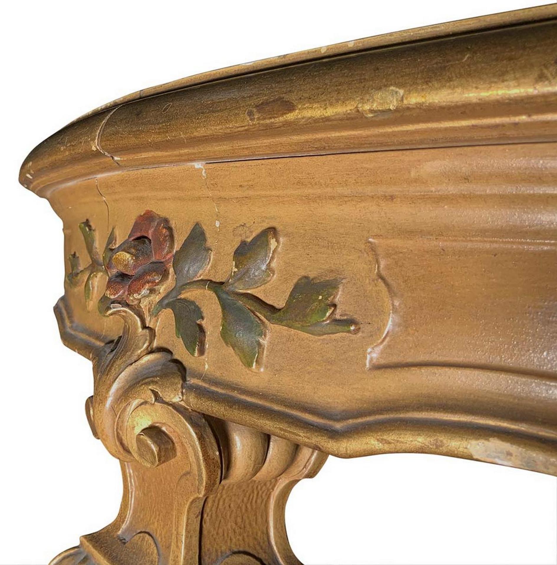 Tavolo laccato policromo, fine XIX secolo. Marmo incassato al piano rosso Francia. H cm 70x108x78.