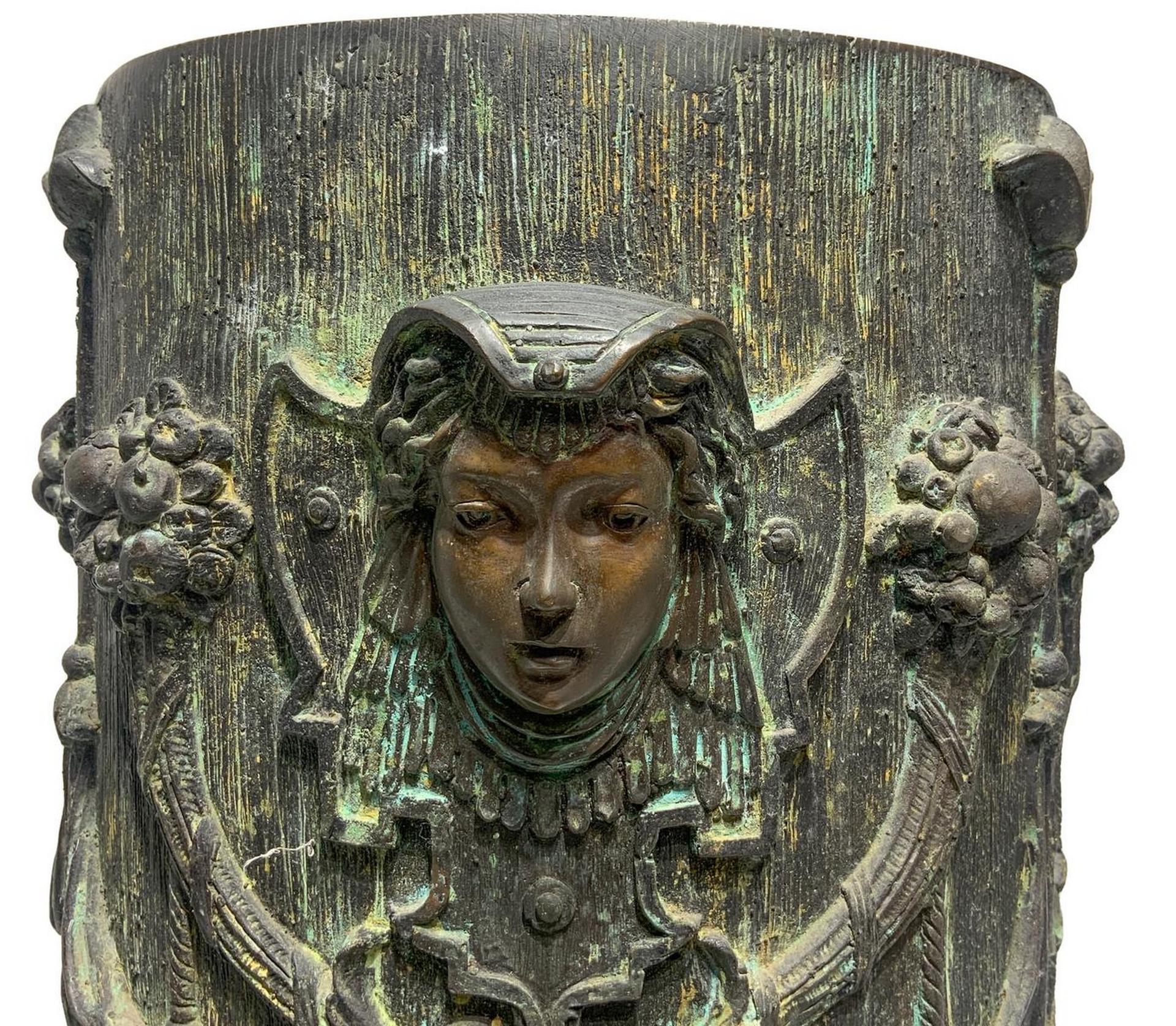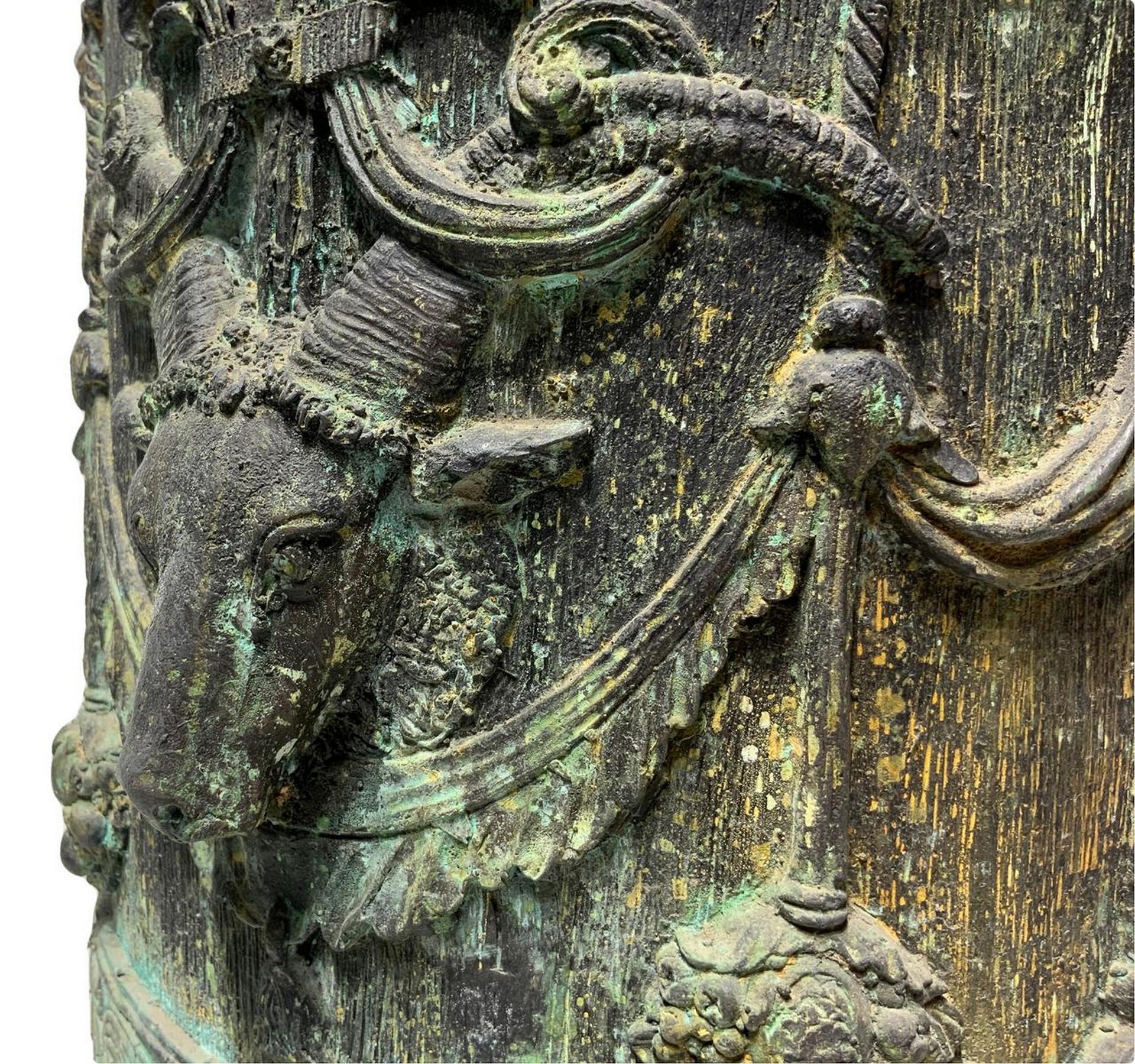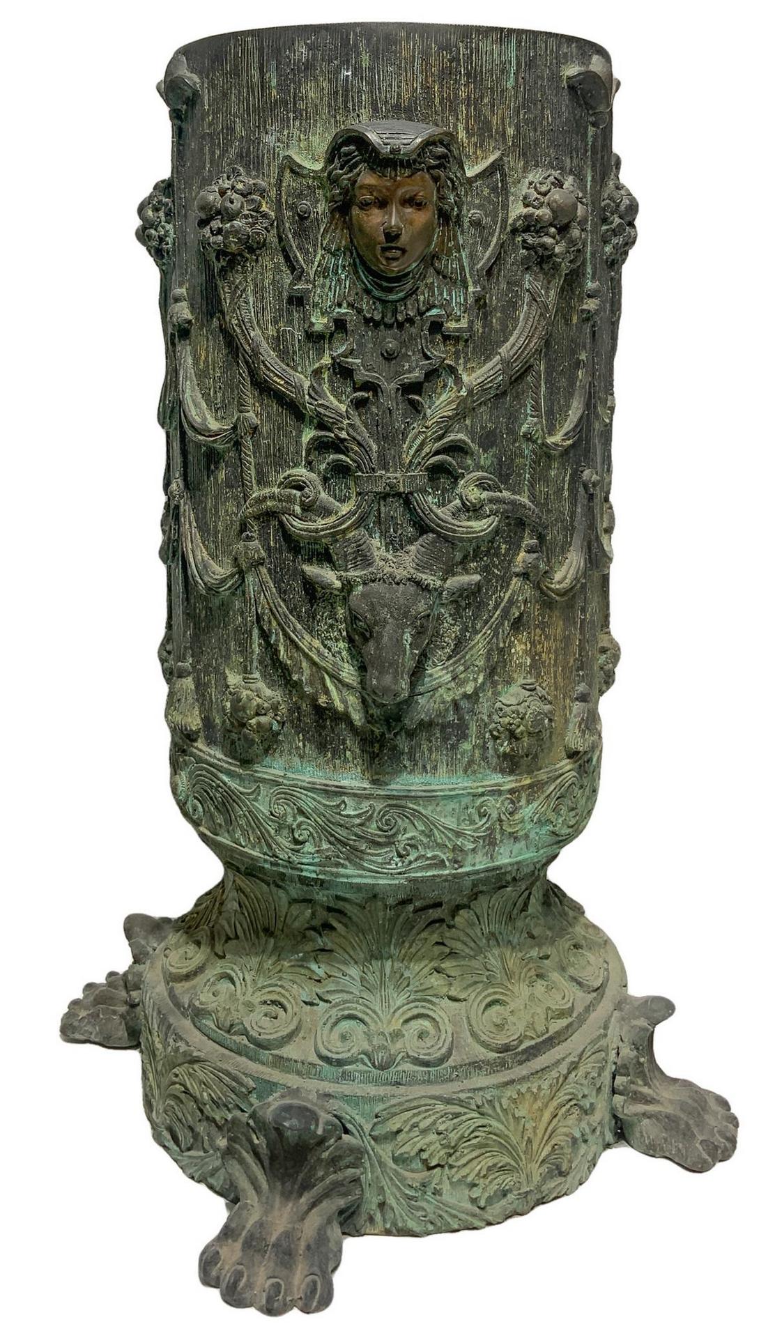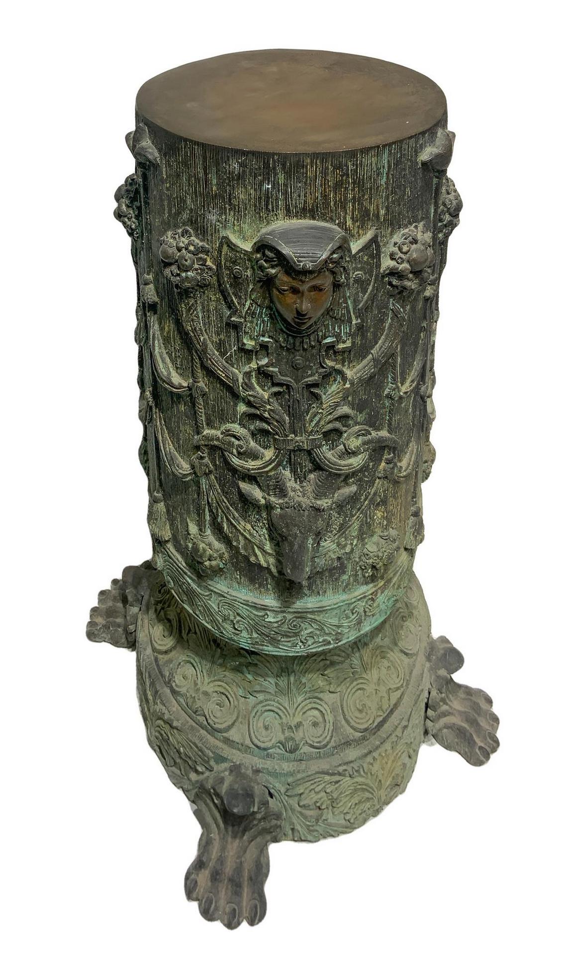 Guéridon in bronzo sbalzato. H cm 72. Base con piedi leonini cm 50. Firma...