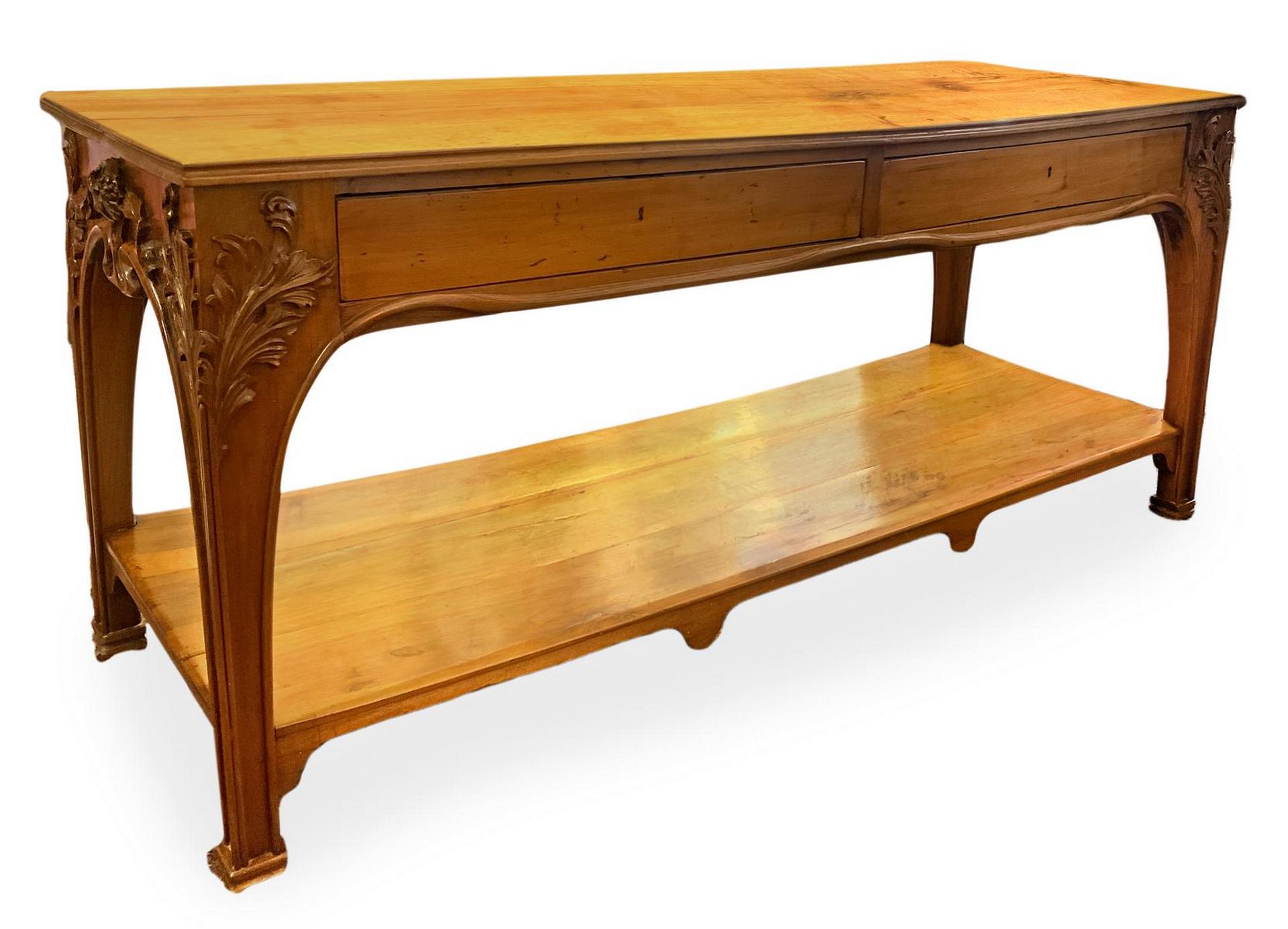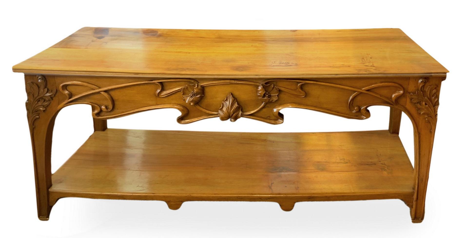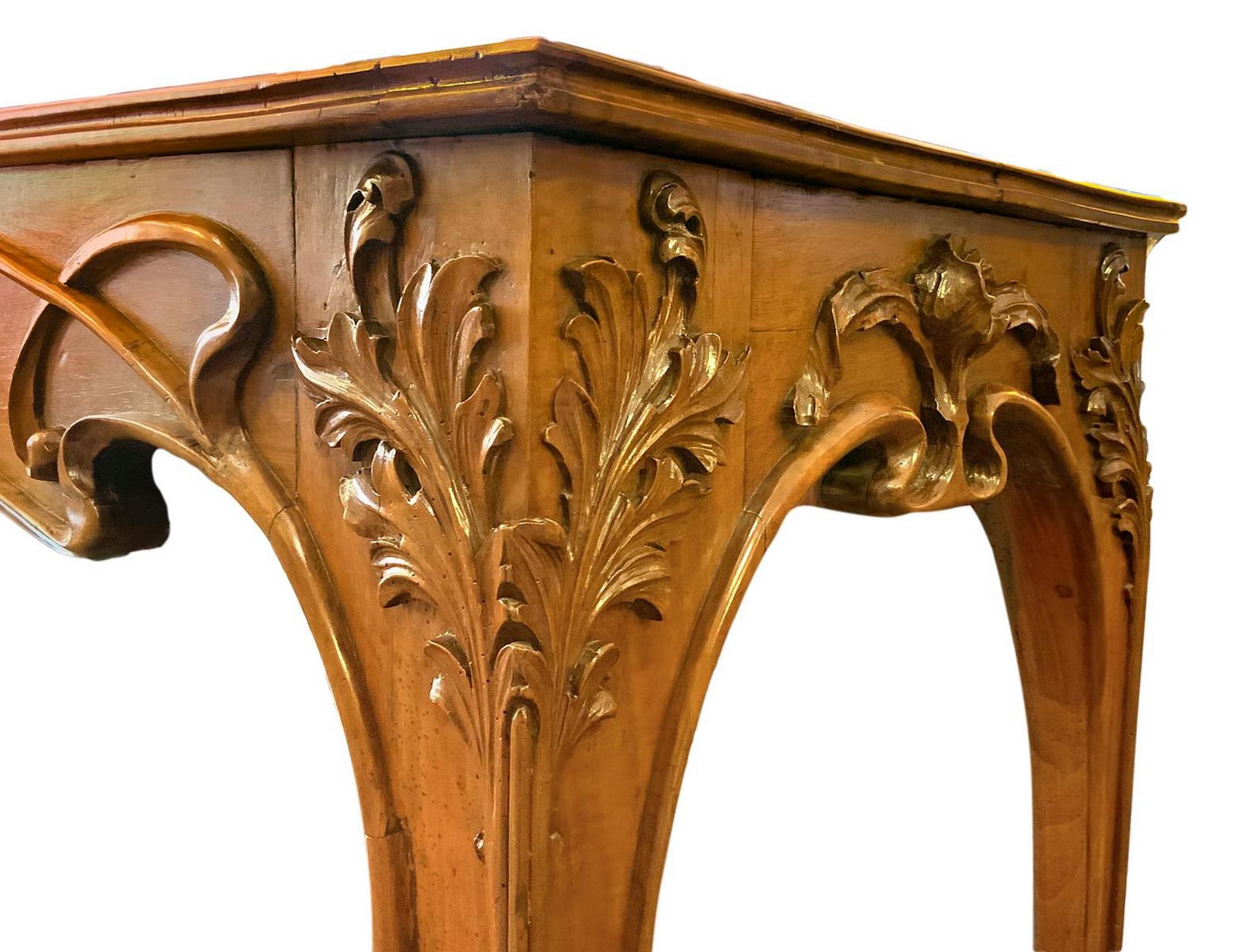 Pregiato tavolo da sartoria Liberty, attrib. Arch. Ernesto Basile. Con intagli floreali a rilievo. Primi ‘900.