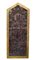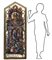 Antica vetrata rilegata a piombo con immagini a infusione nel vetro raffigurante San Chad di Mercia, abate e vescovo britannico. In telaio in legno, larga cm 6. H cm 169. Larghezza cm 67. Retroilluminata. Piccole rotture.