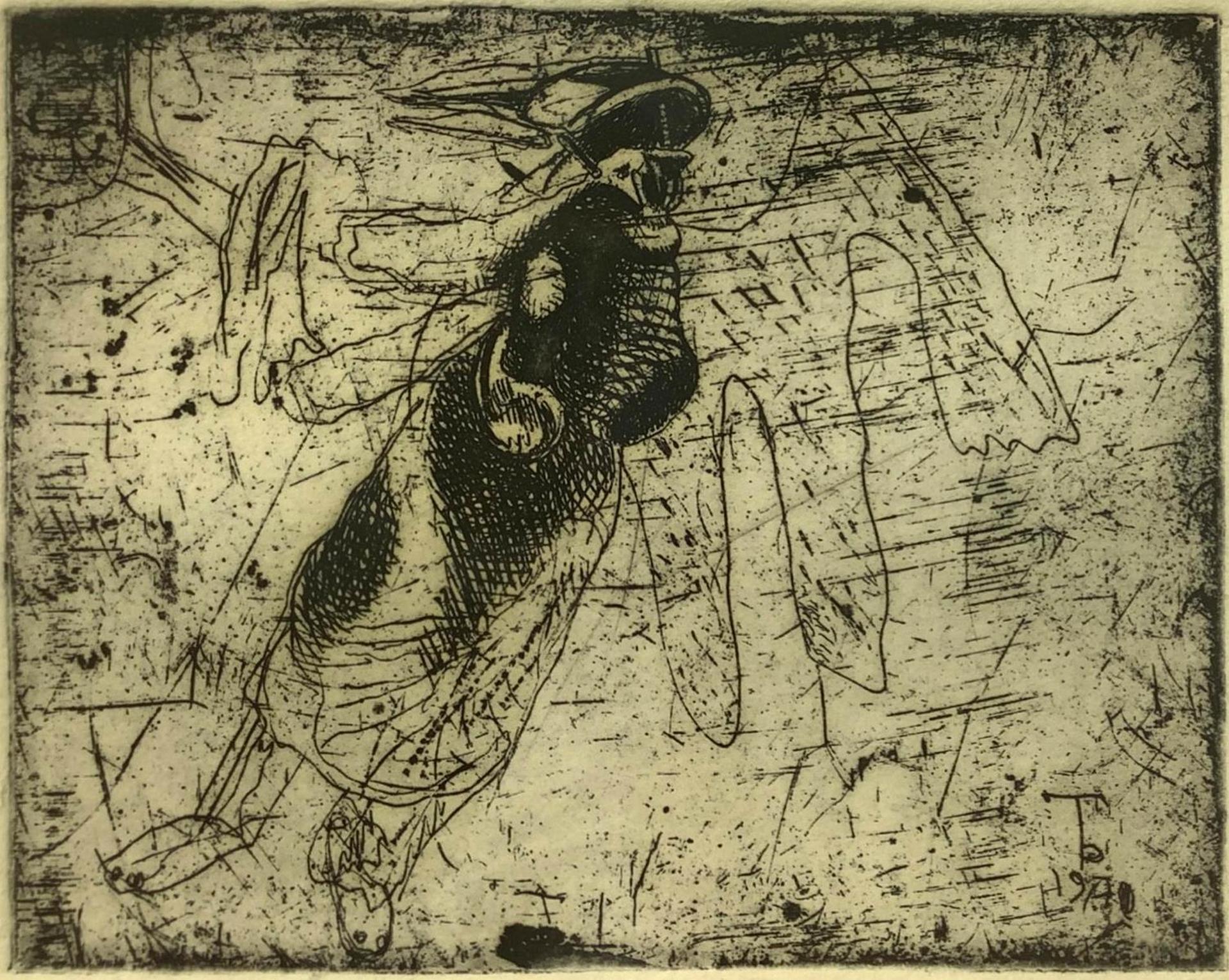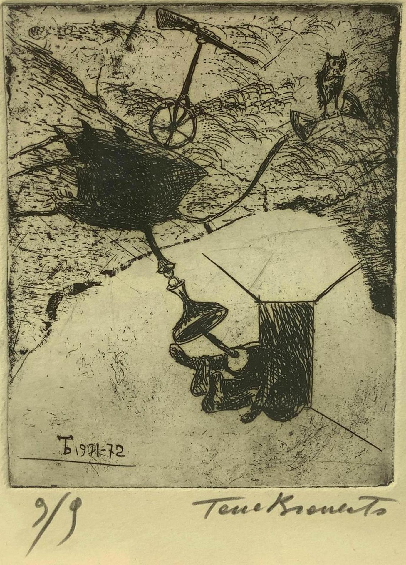 Incisione di Tano Brancato , n9/9, 1971-72, cm 28x16,6 in cornice cm 43x31. Tano Brancato (Floridia 1937) , grafico, incisore,scultore e pittore.