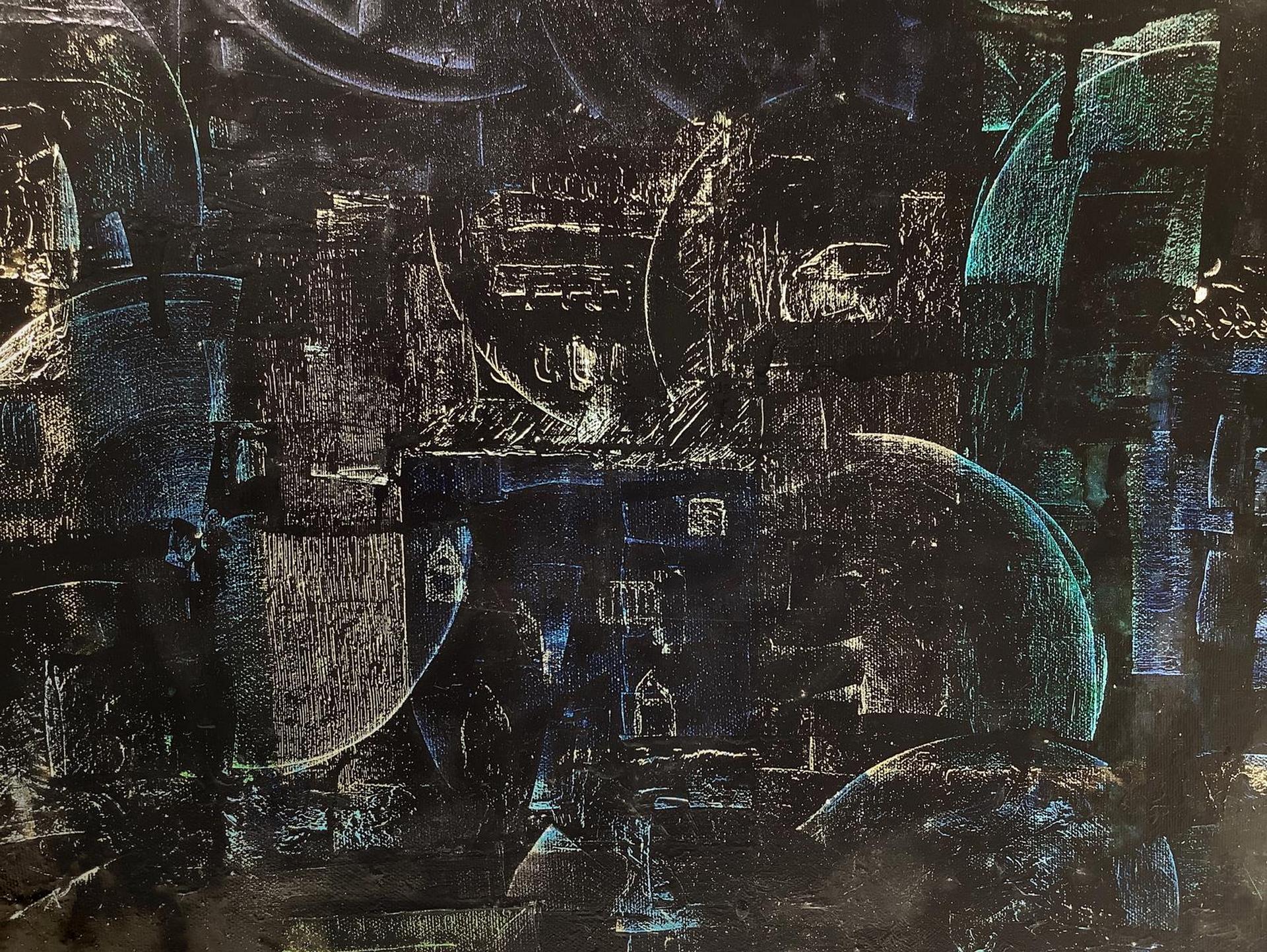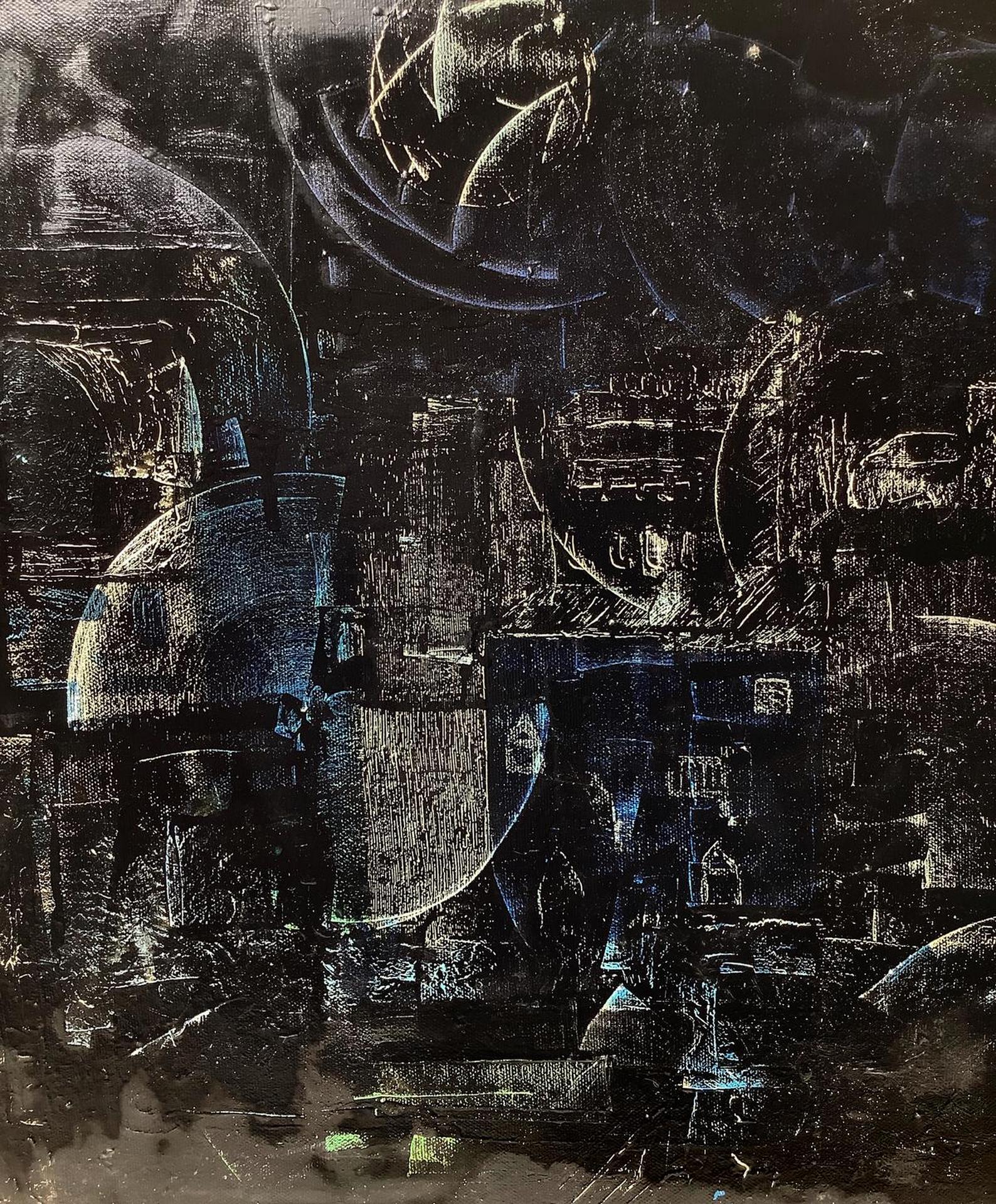 Dipinto ad olio su tela raffigurante paesaggio notturno, XIX/XX secolo. Cm 50x60