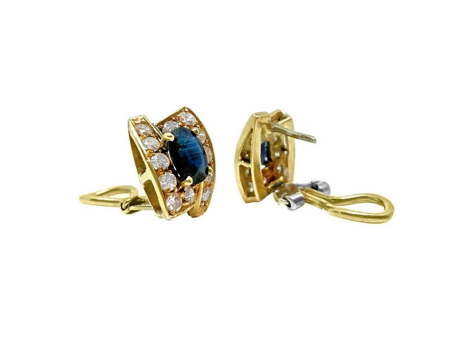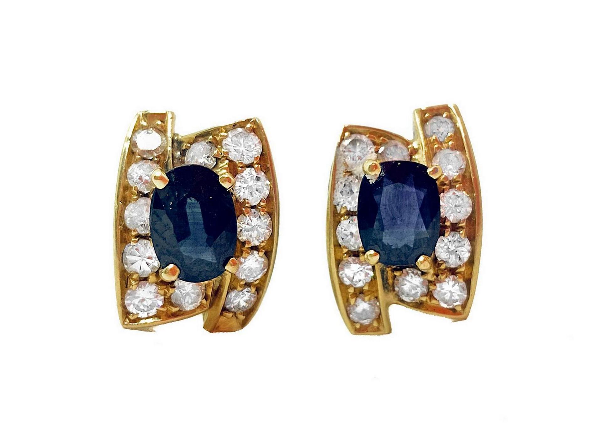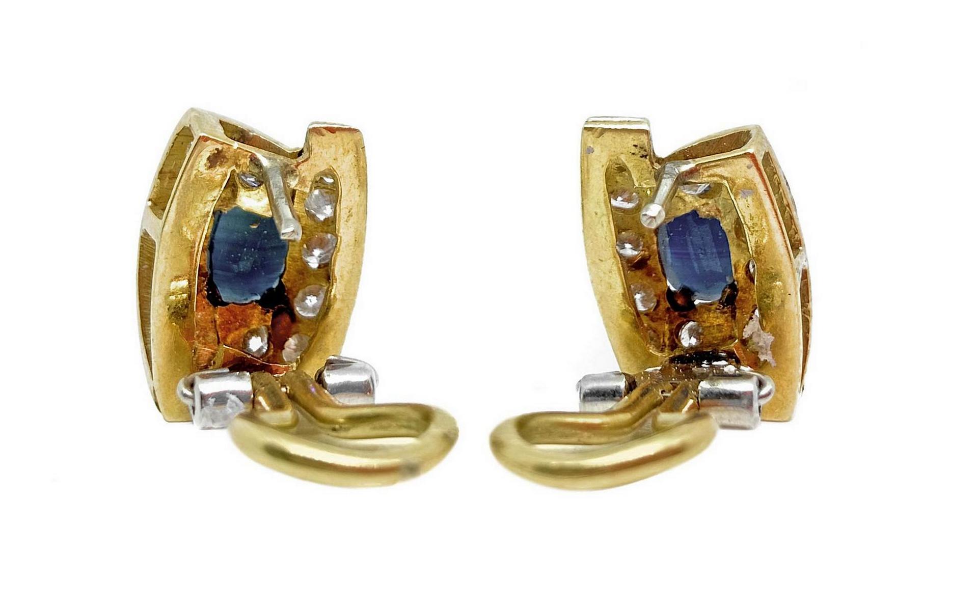 Lot 287 | Orecchini in oro giallo con zaffiri e brillanti. Gr 7.1.