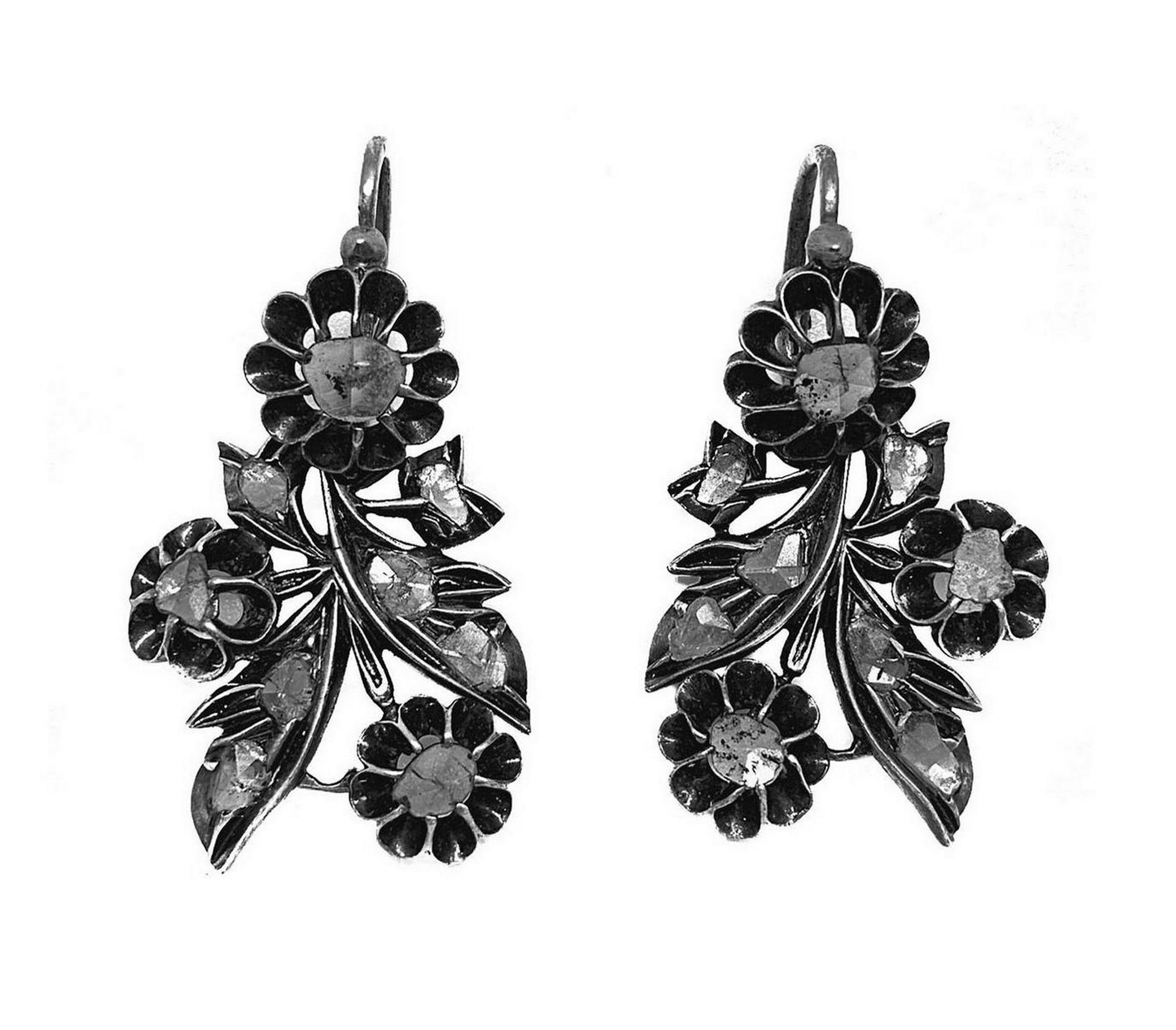 Orecchini in argento e diamanti taglio rosè. Gr11,8