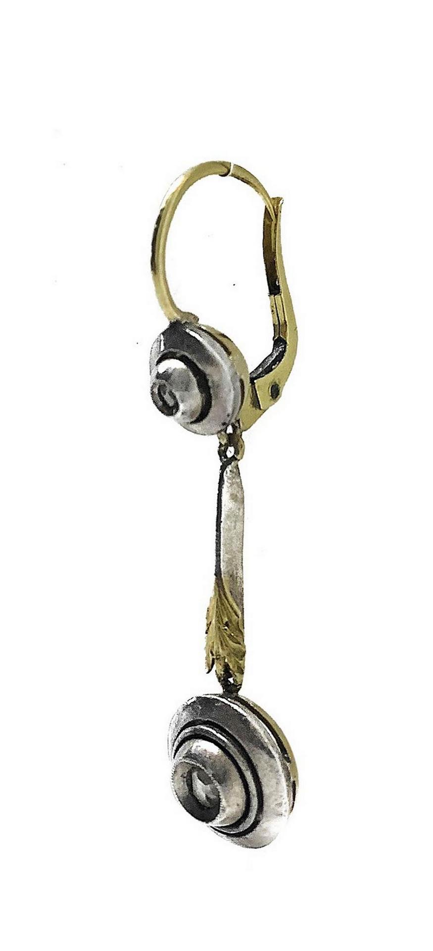 Orecchini in oro 12 K e argento a pendentif con diamanti taglio rosè. Gr 4,8