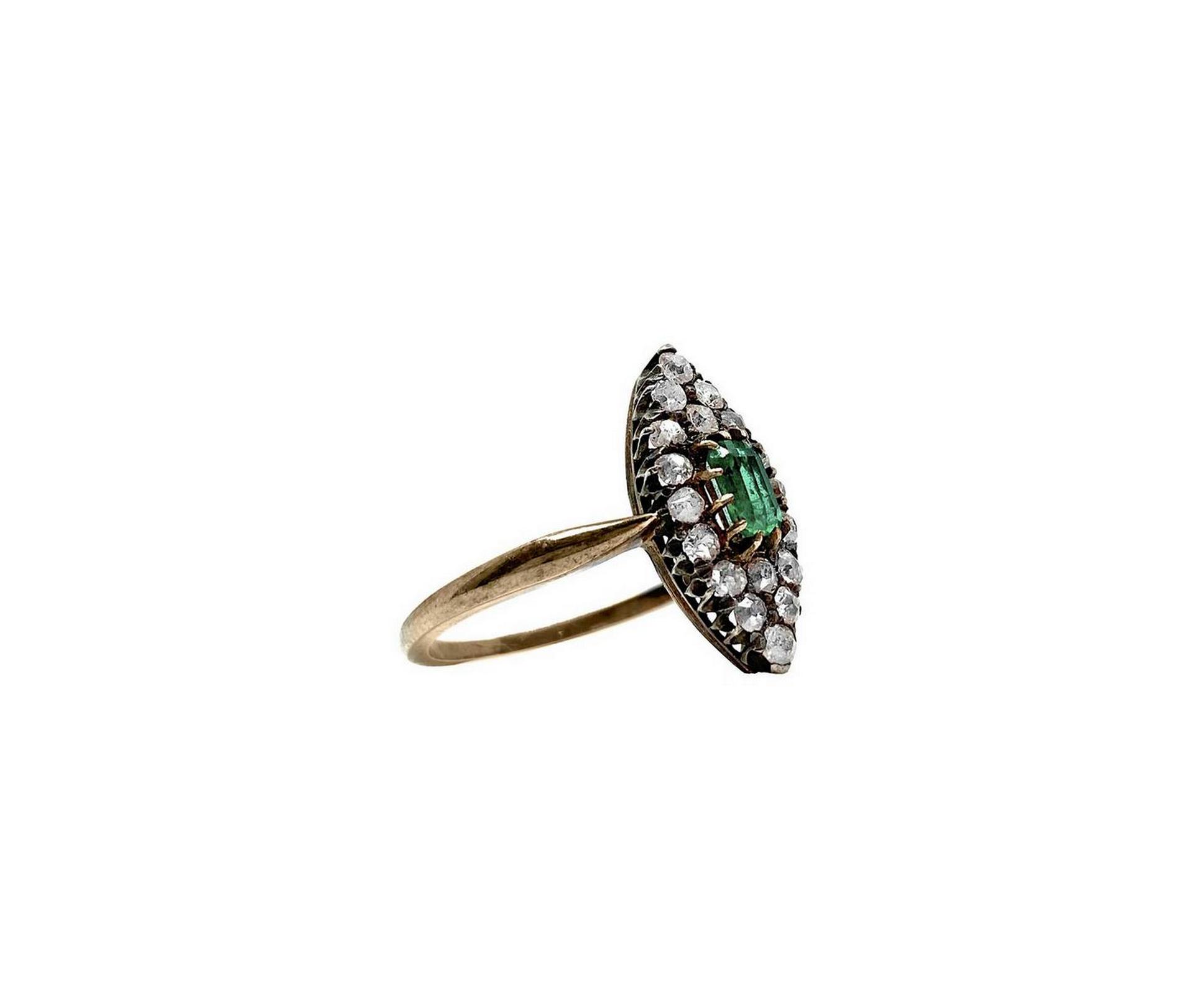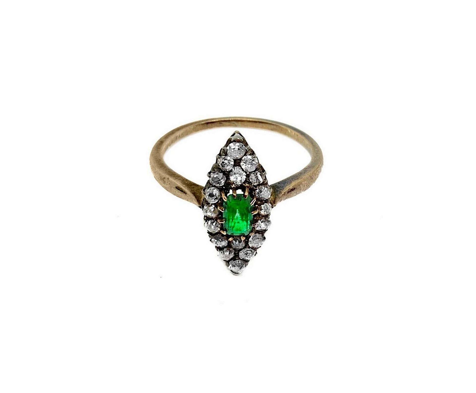 Lot 315 | Anello a spoletta in argento con smeraldo al centro e brillanti. Gr 2.0