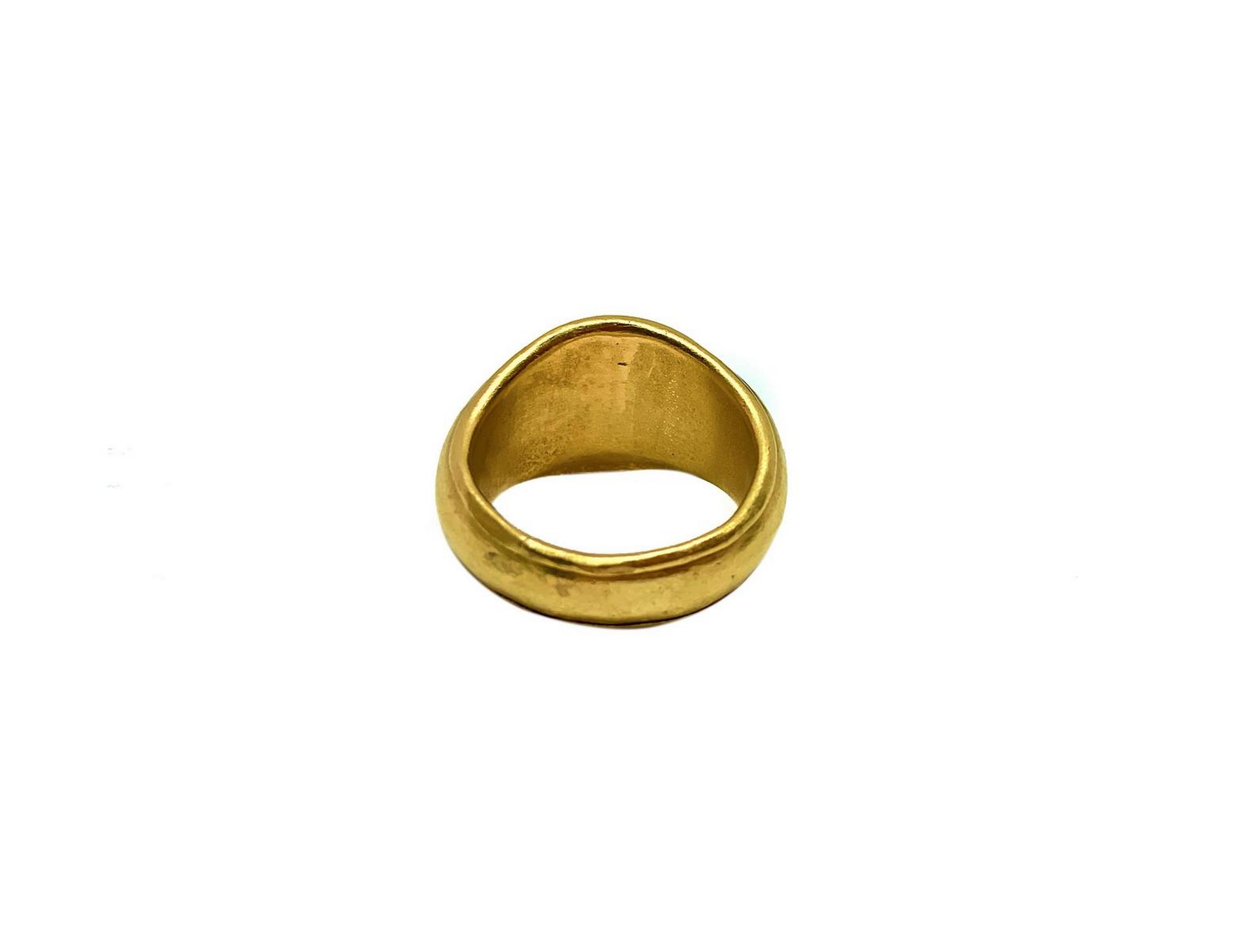 Anello sigillare per uomo con pietra dura di granato gr 9,2, XIX secolo.
