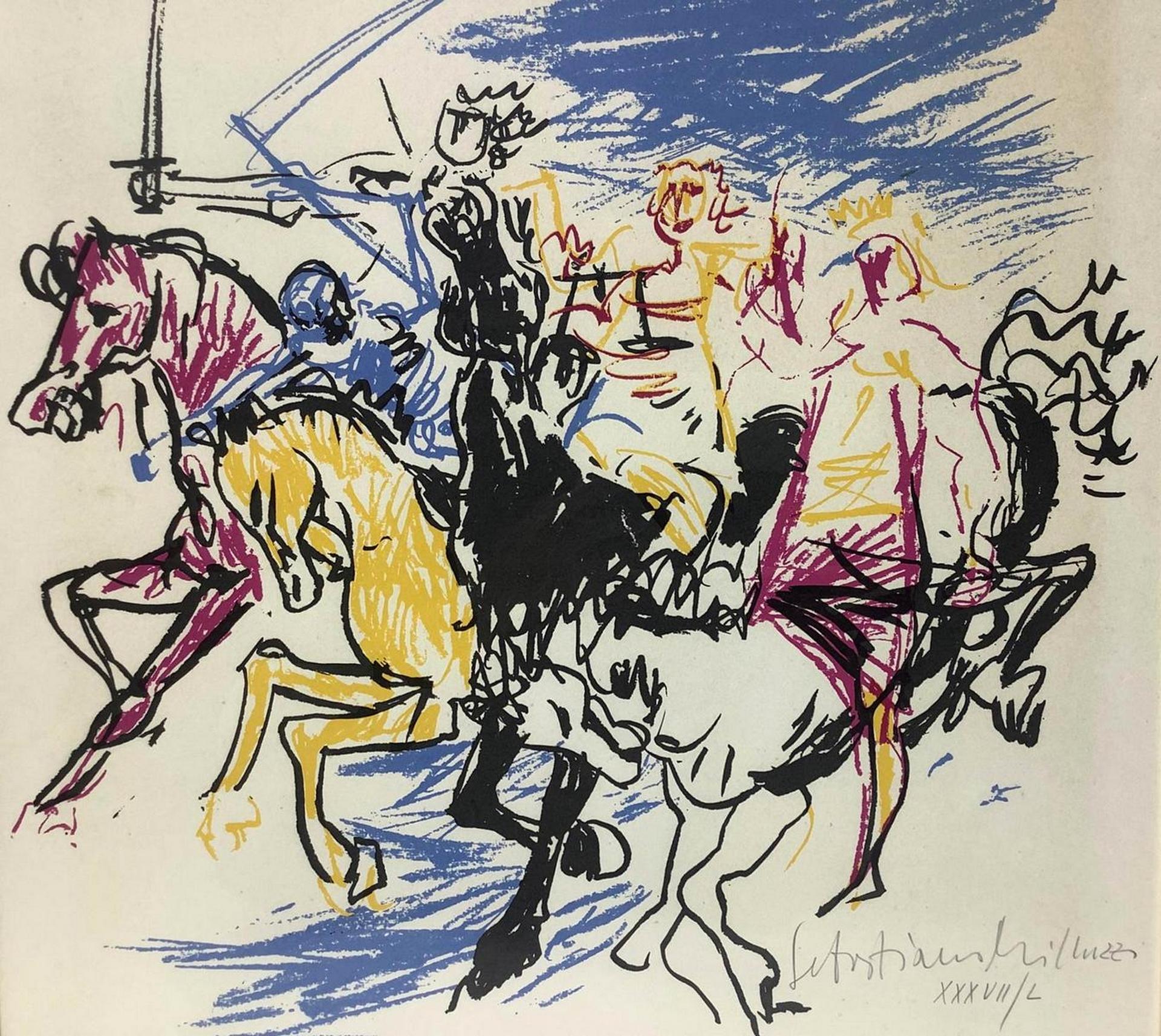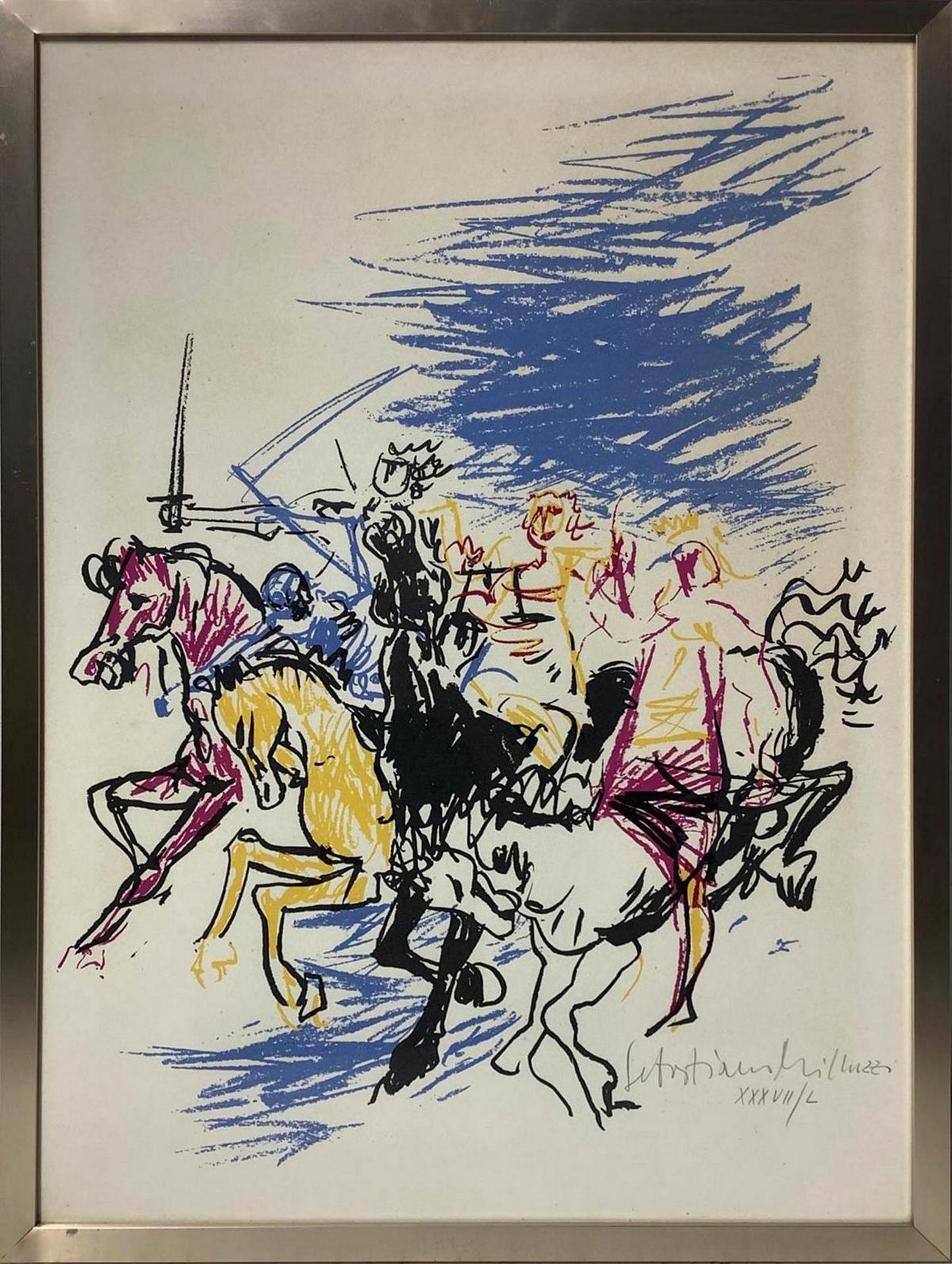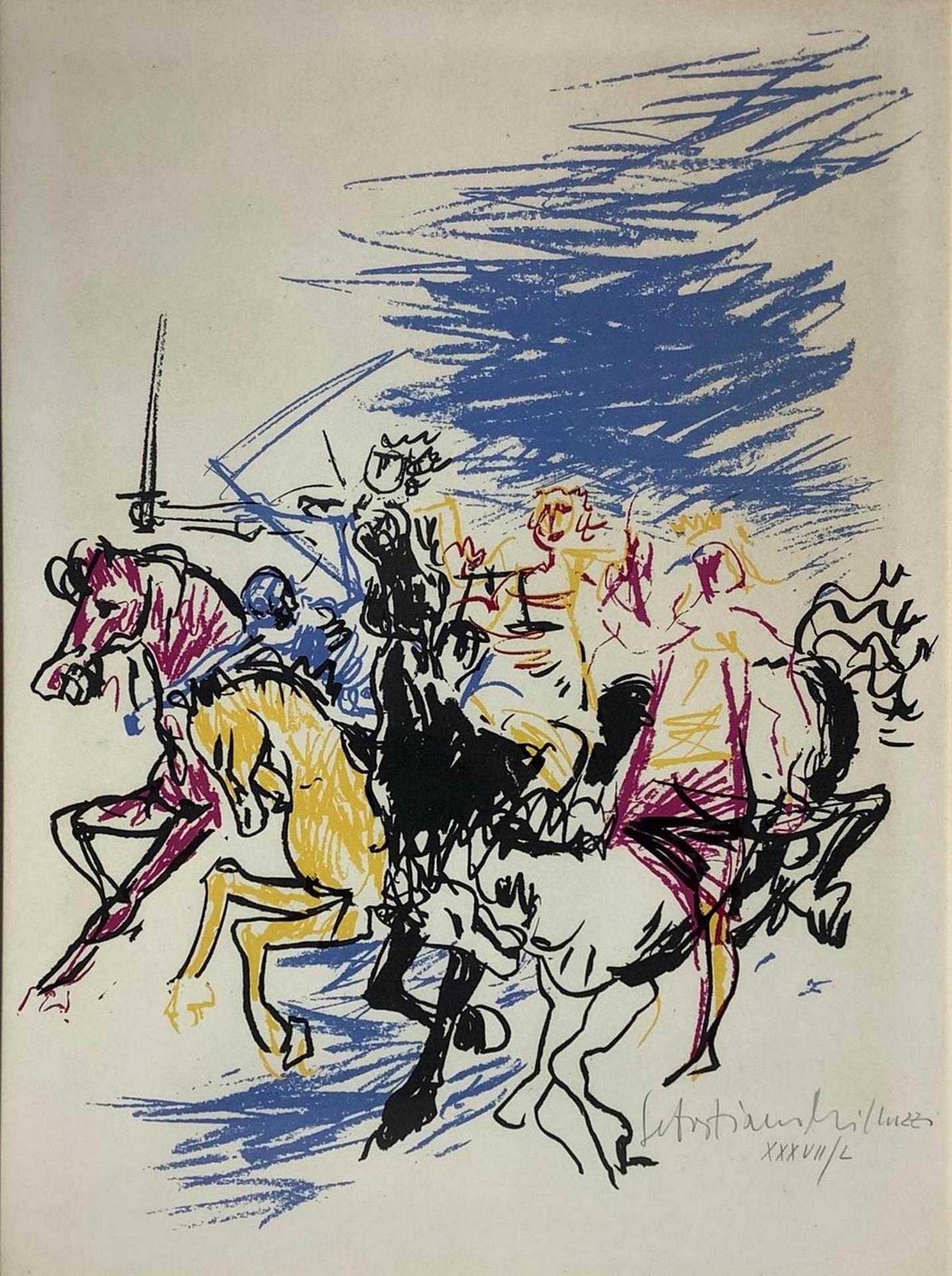 Litografia 37/50 raffigurante Cavalieri dell’Apocalisse, di Sebastiano Milluzzo, in cornice cm 73x54
