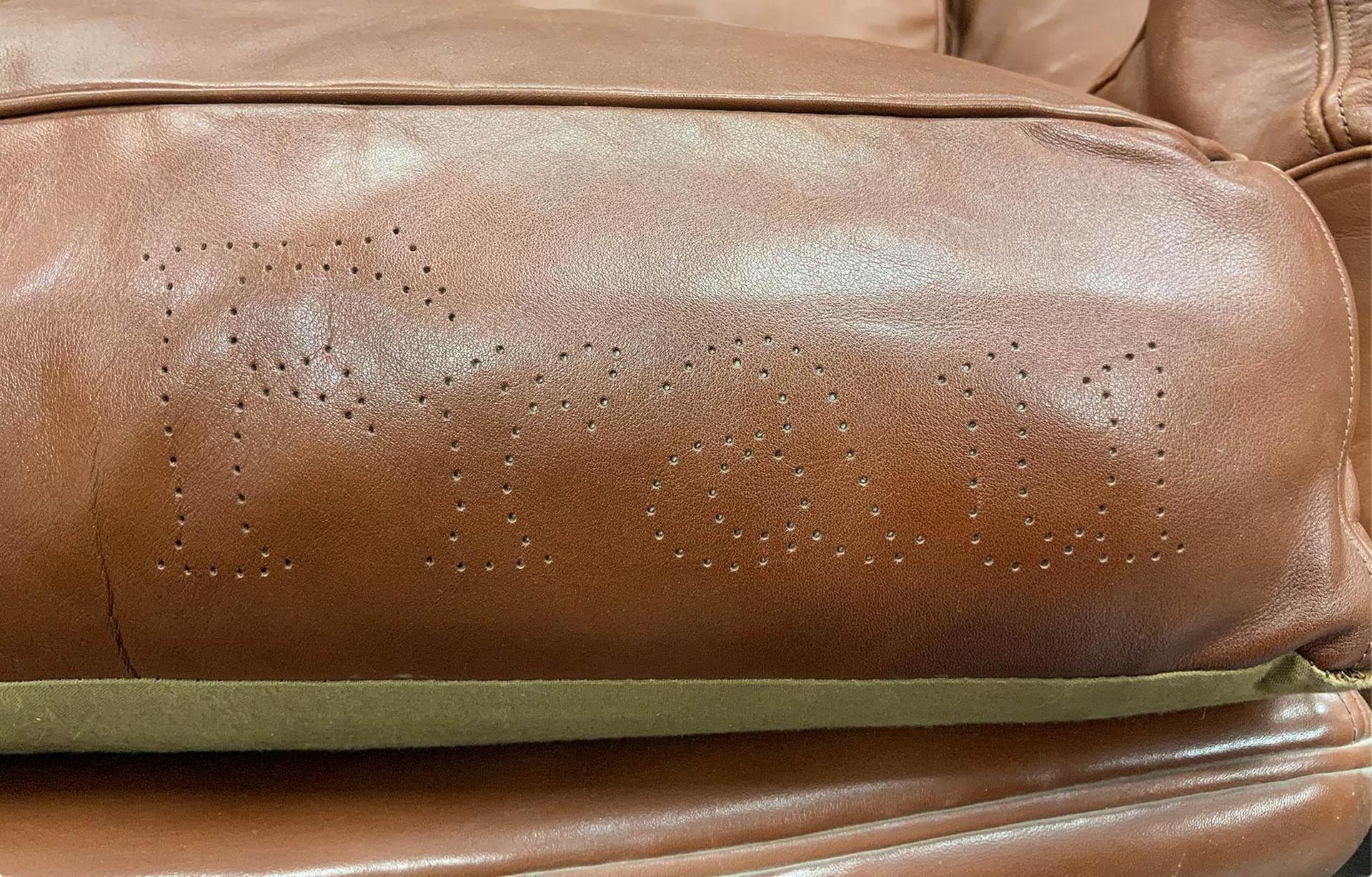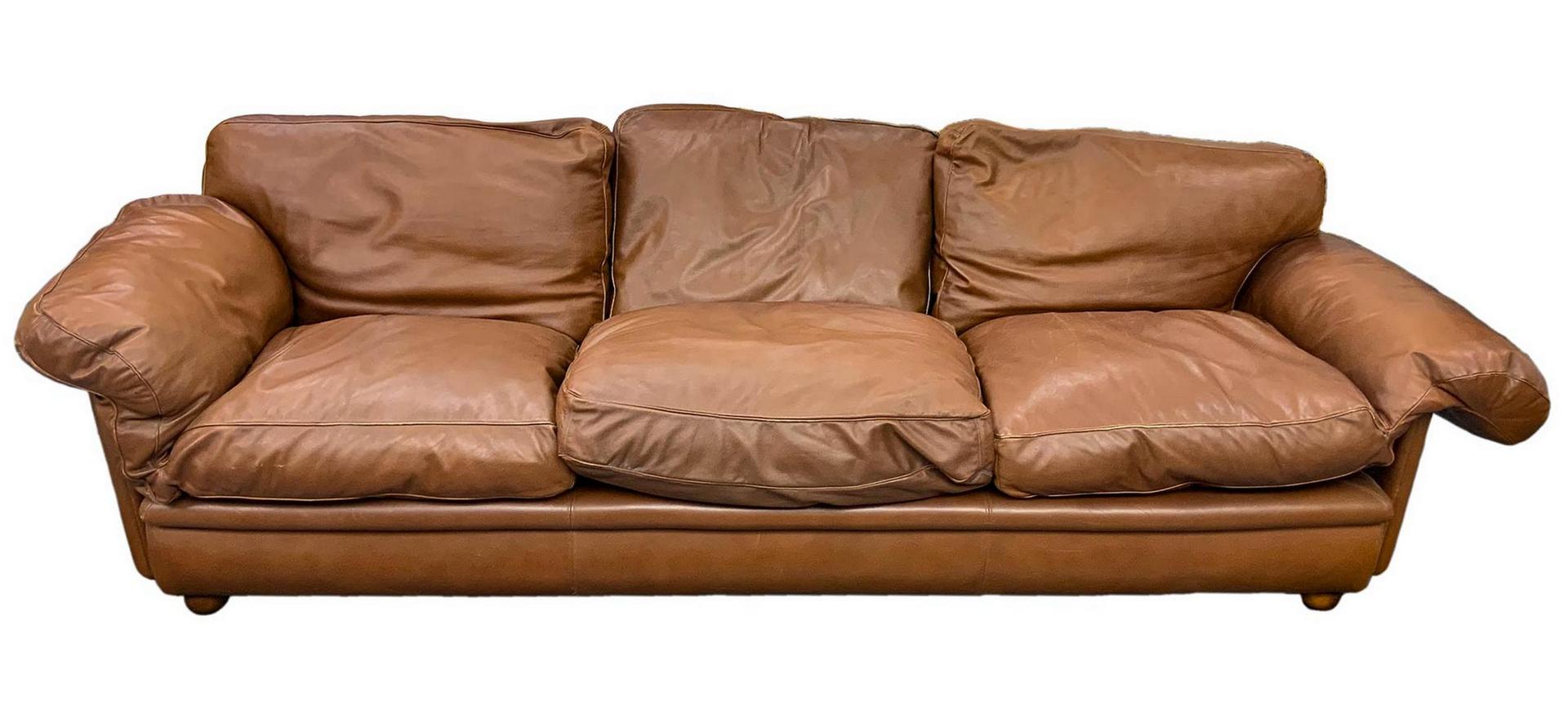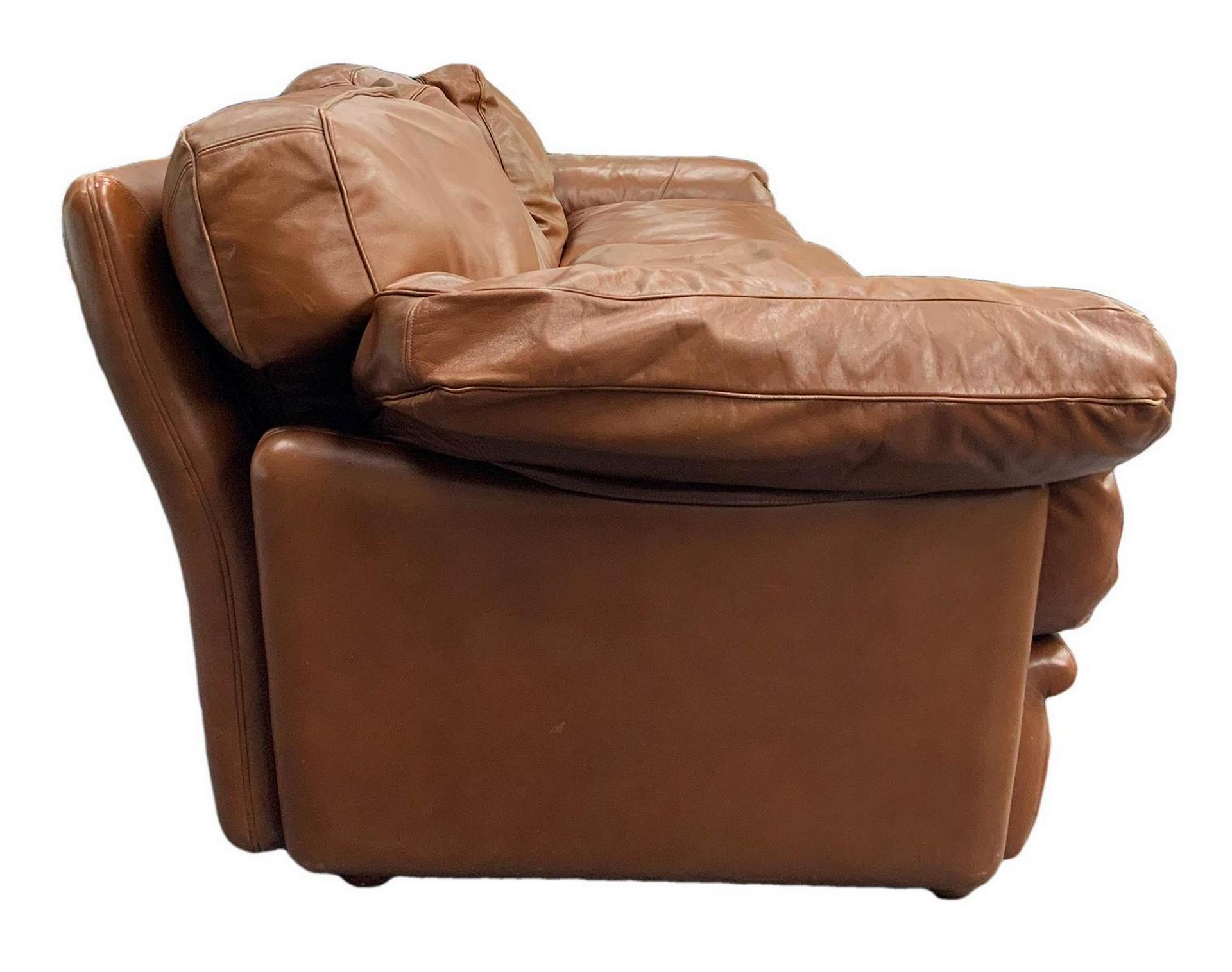 Divano 3 posti modello Poppy anni ’60-’70. Tito Agnoli per poltrona frau. Divano in pelle colore cognac imbottiture in piuma d’oca.
