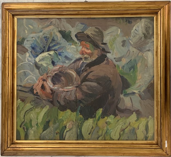 Ignoto del XX Secolo "Contadino" olio su compensato (cm 45x50) (difetti) In cornice