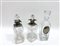 Lotto composto da una coppia di bottiglie in vetro con tappi, corpo costolato e ghiere in argento, e una bottiglia in vetro con tappo centrata da placca in argento (difetti)