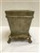 Vaso di forma quadrata in porcellana con invetriatura a pelle di squalo, base in bronzo (h. tot cm 27) (difetti)
